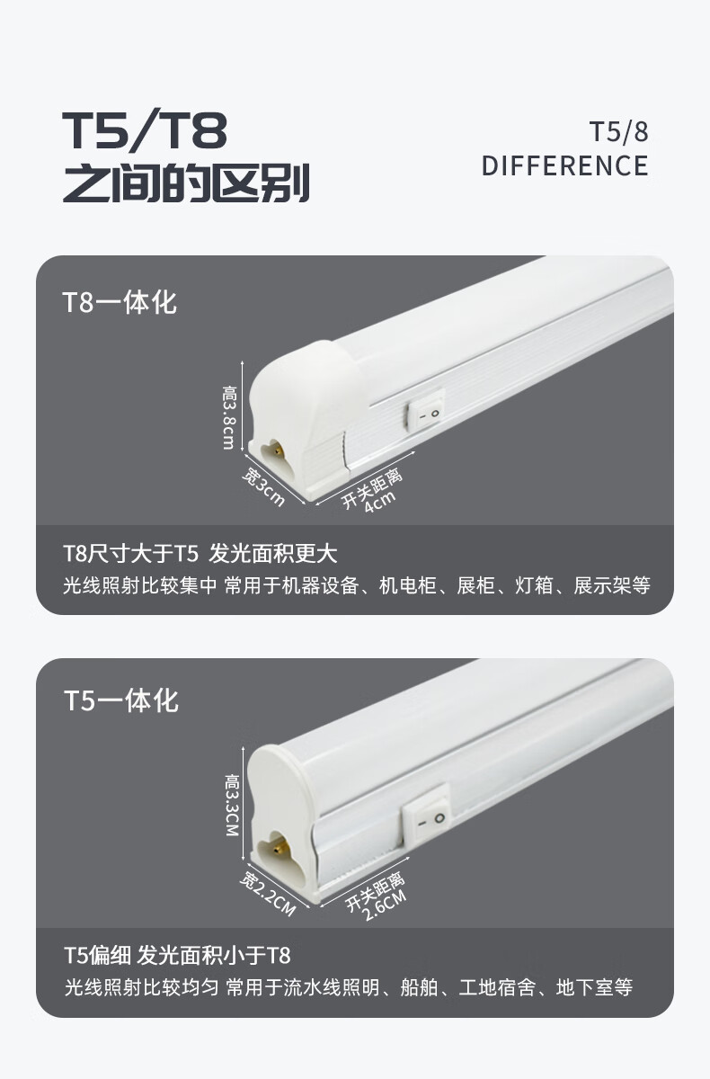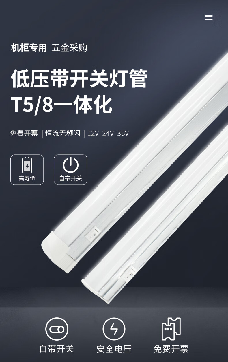 Low voltage T8/5 integrated AC and DC lamp with switch, electrical cabinet, equipment box, assembly line, 12v24v36v light stick, T5 with switch, DC24v, white x 0.6