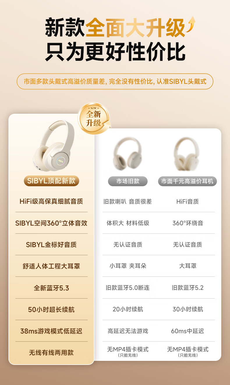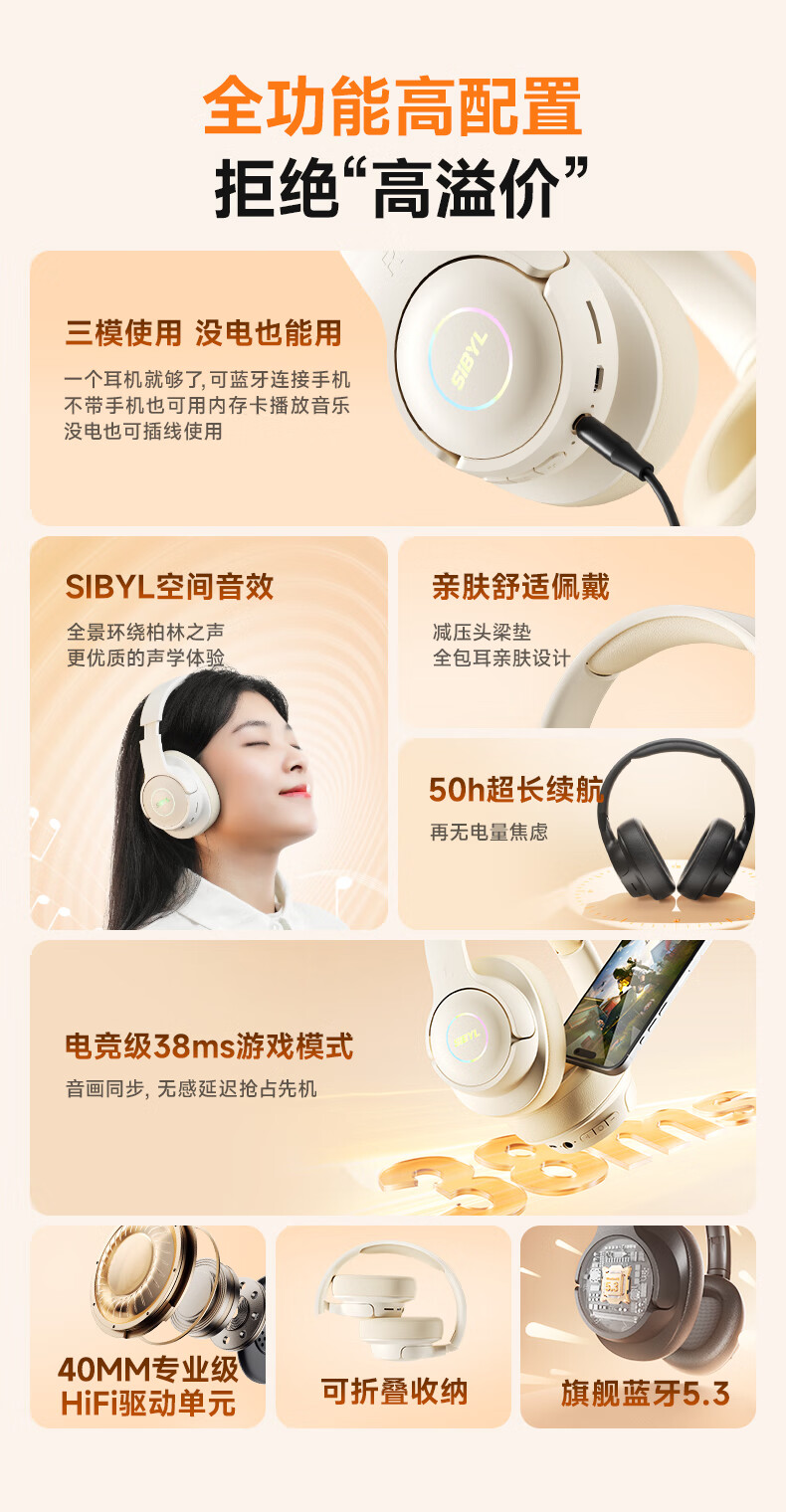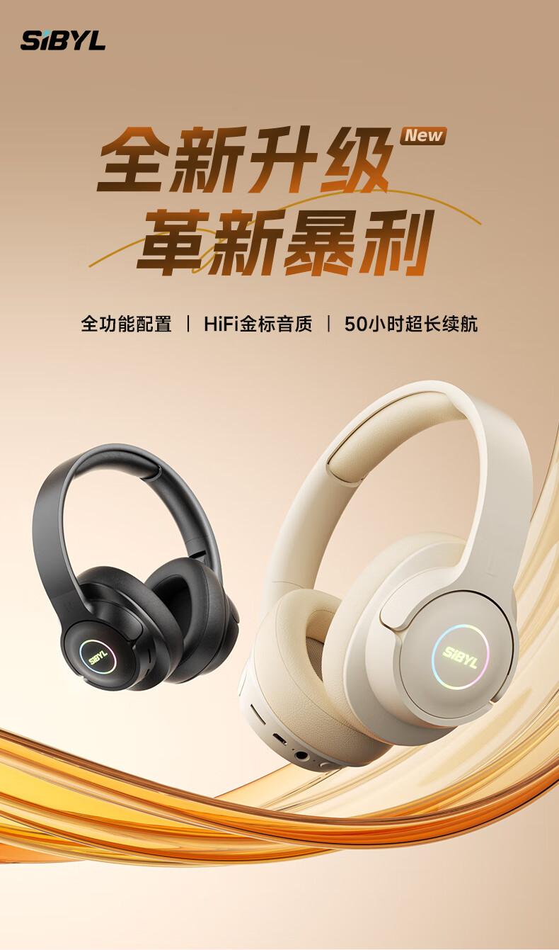 Xibier's newly upgraded head-mounted Bluetooth headset, wireless, long battery life, with mic music, high-quality calls, noise reduction, gaming, online lessons, suitable for Huawei, vivo, Xiaomi oppo, black, full-featured configuration + HiFi gold label sound quality + 50h battery life