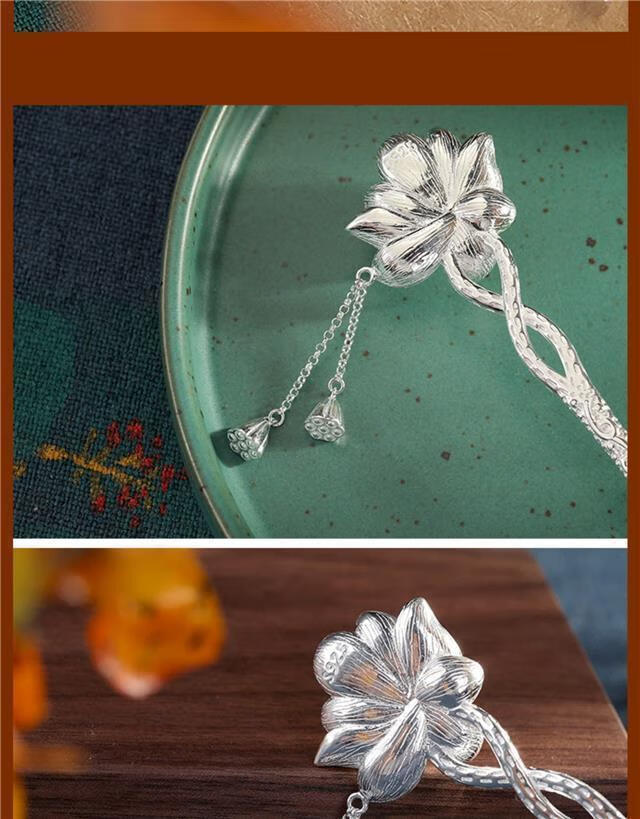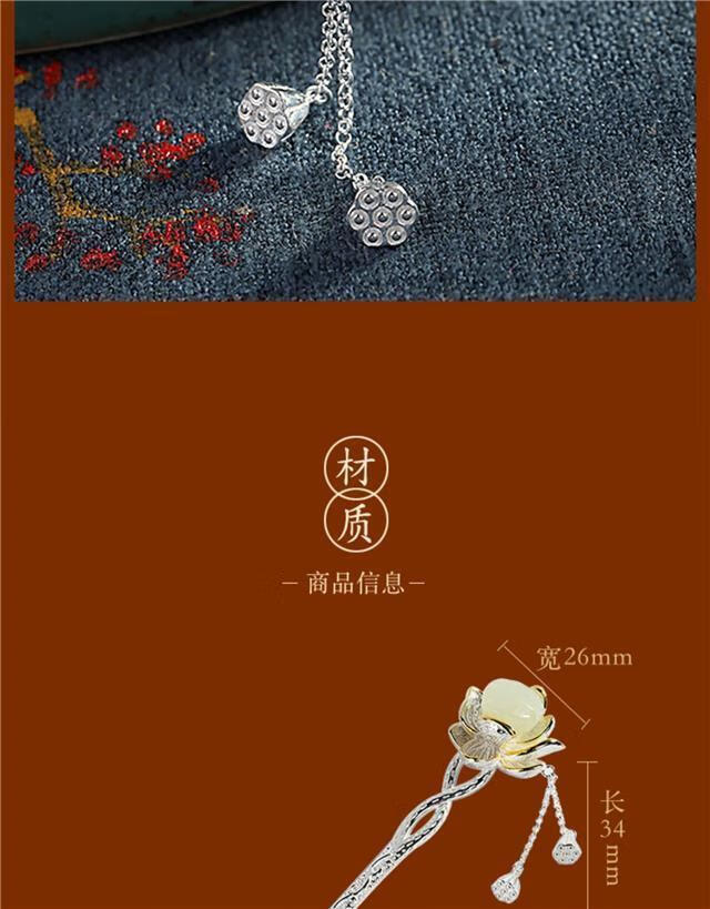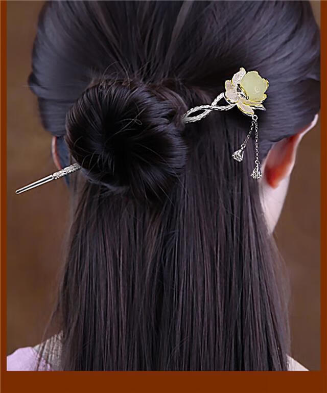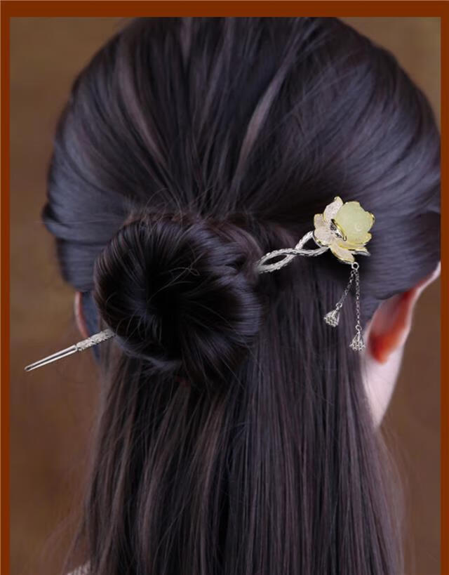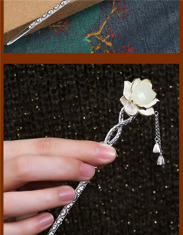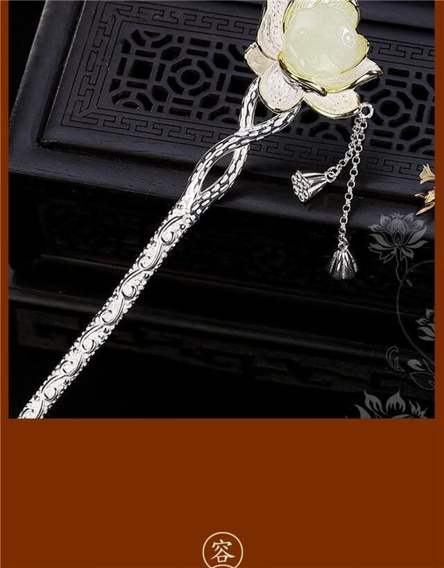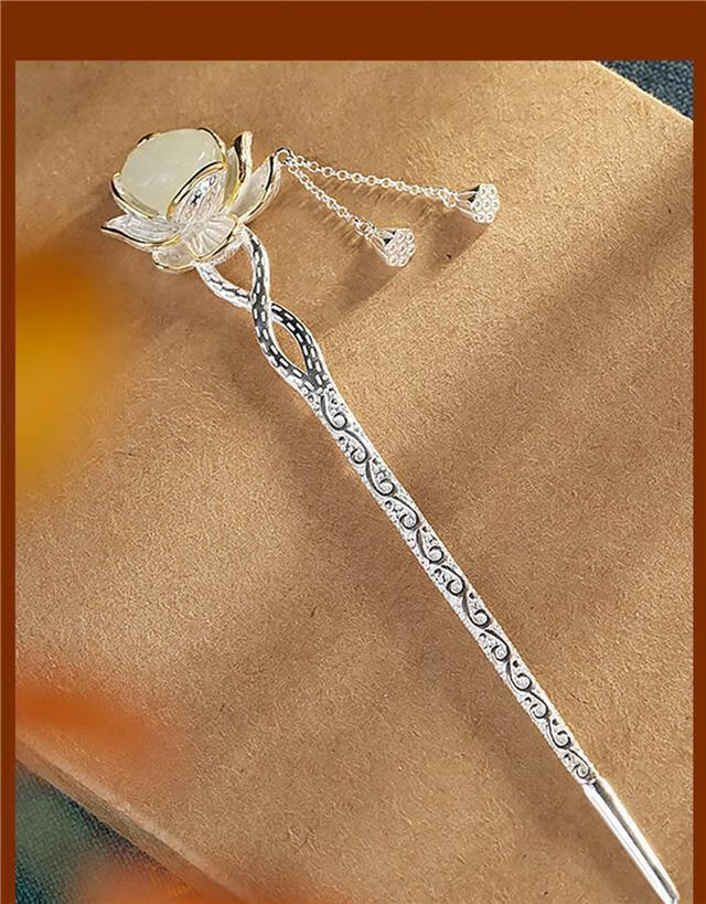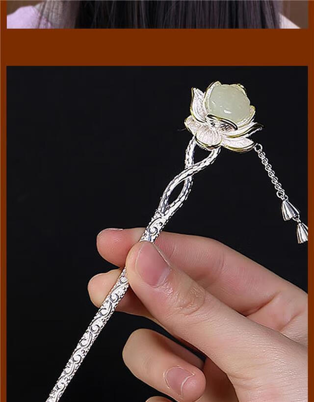 DING FEI platinum-plated ancient style imitation Hetian jade lotus hairpin and hairpin with tassels and Hanfu plate Valentine's Day gift lotus lotus hairpin A22-201