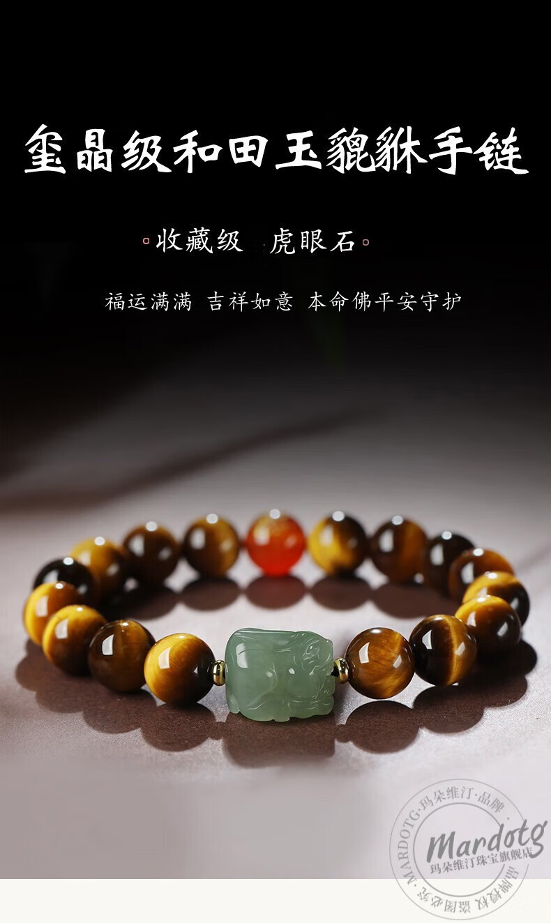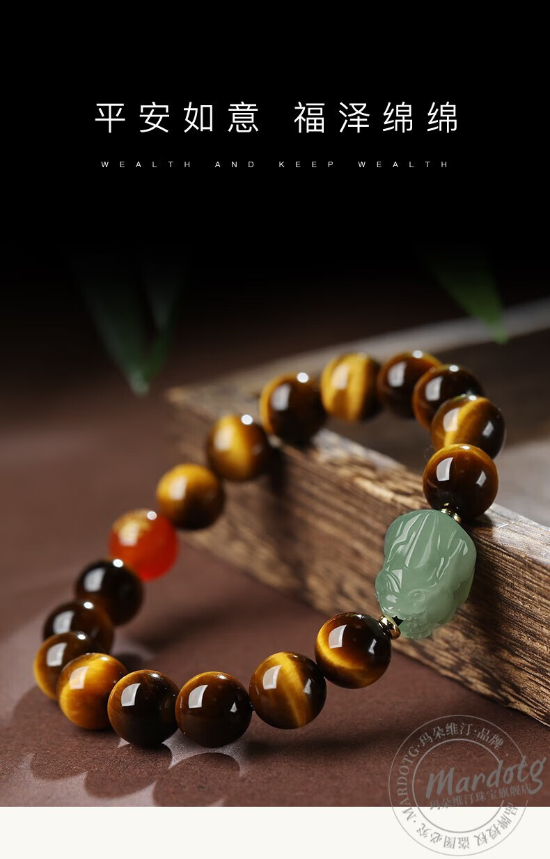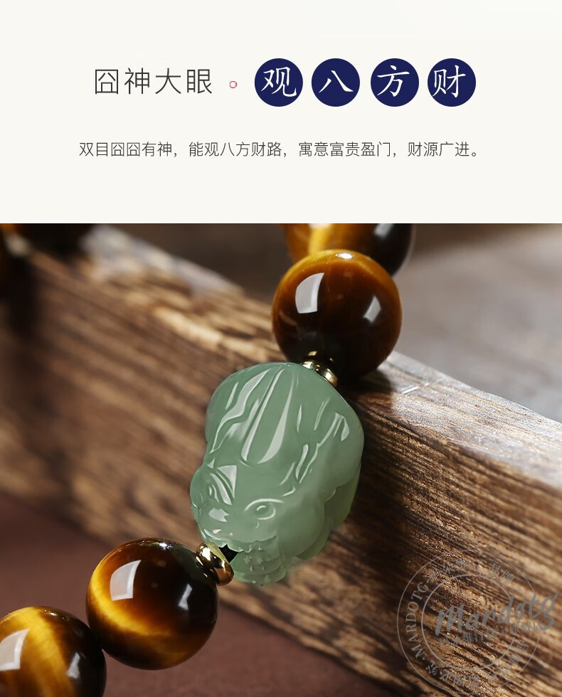 MARDOTG Tiger Eye Stone Bracelet Jade Pixiu Bracelet Twelve Zodiac Zodiac Buddha Crystal Bracelet Men and Women Tiger Eye Stone 14mm Please note the zodiac sign when placing an order