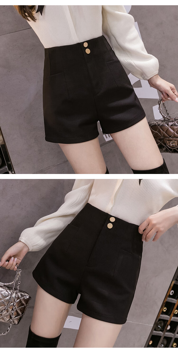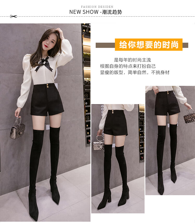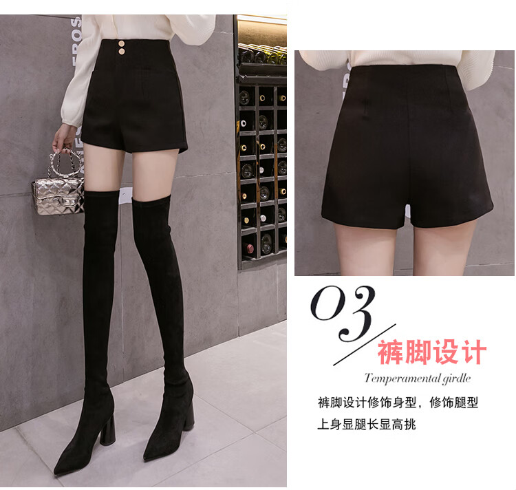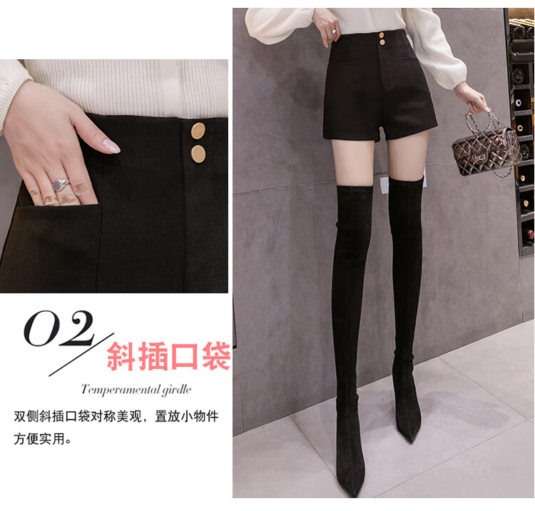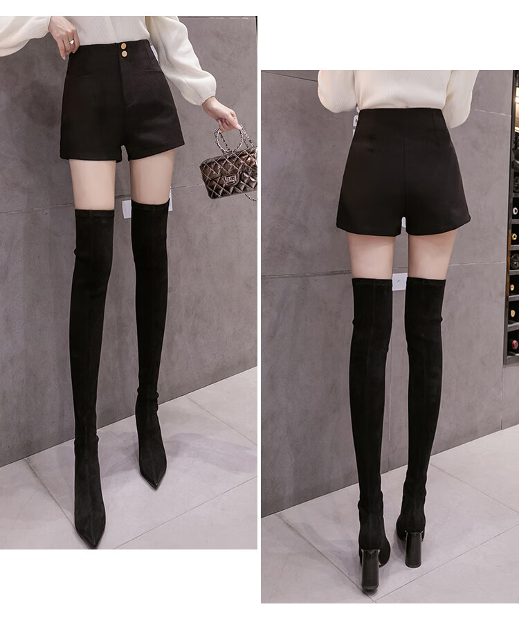 Oubaixi 2025 new winter velvet suit shorts for women, spring, autumn and winter high-waisted black A-line leggings, black XL