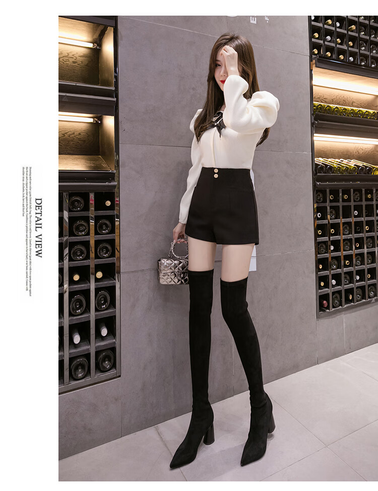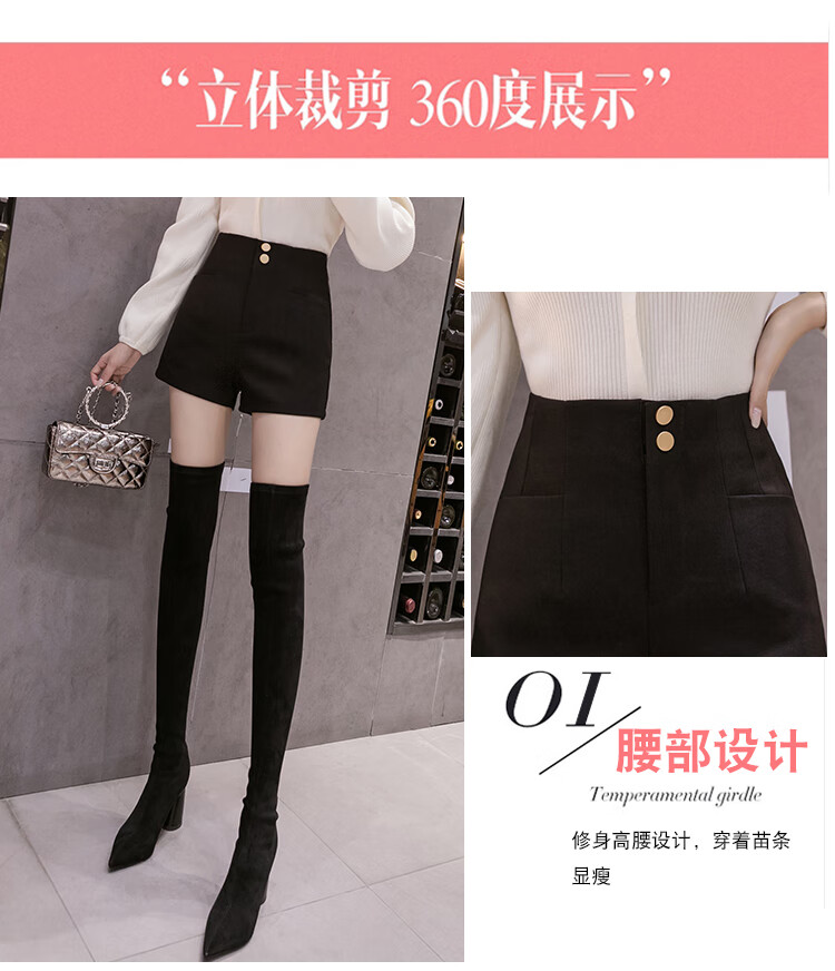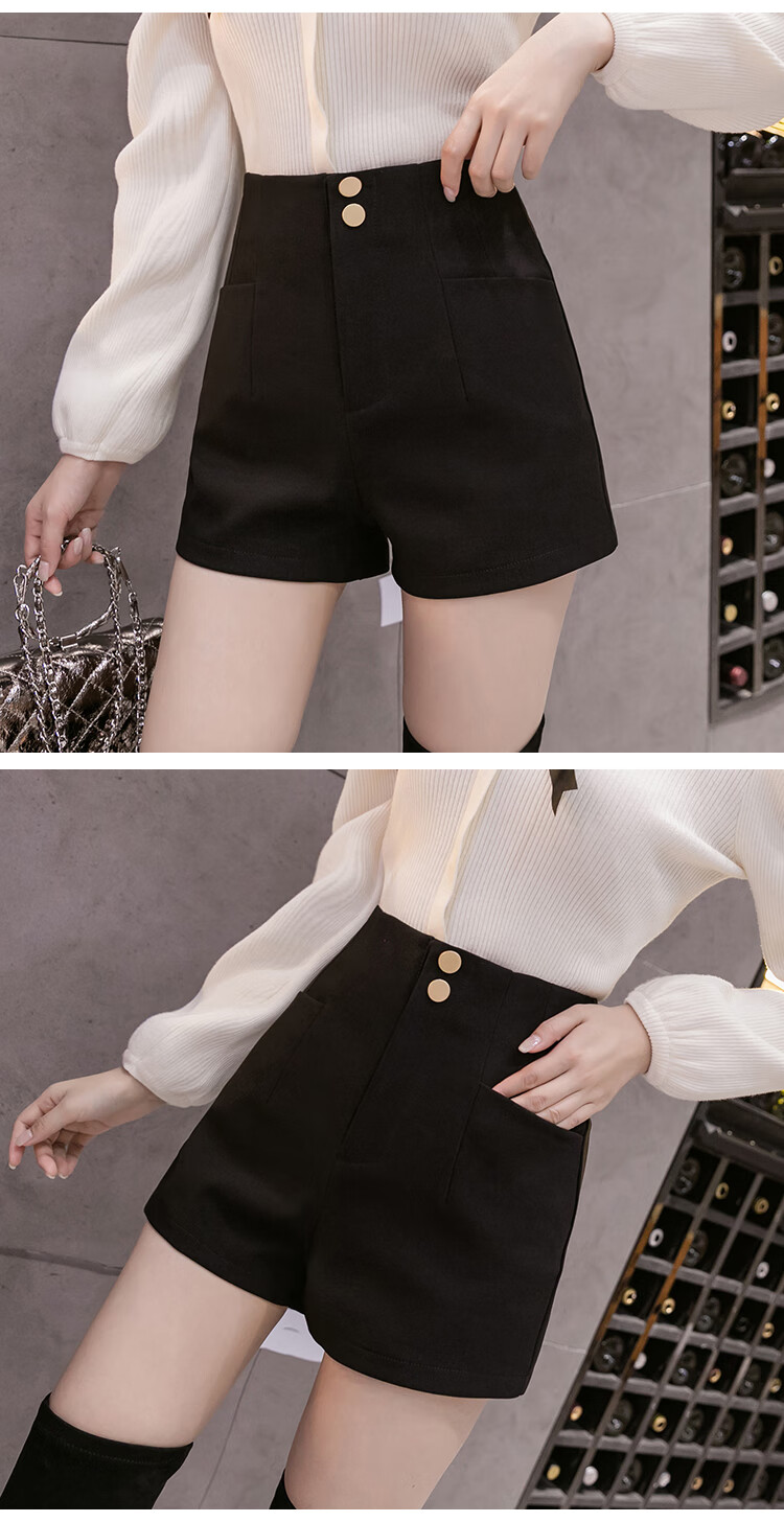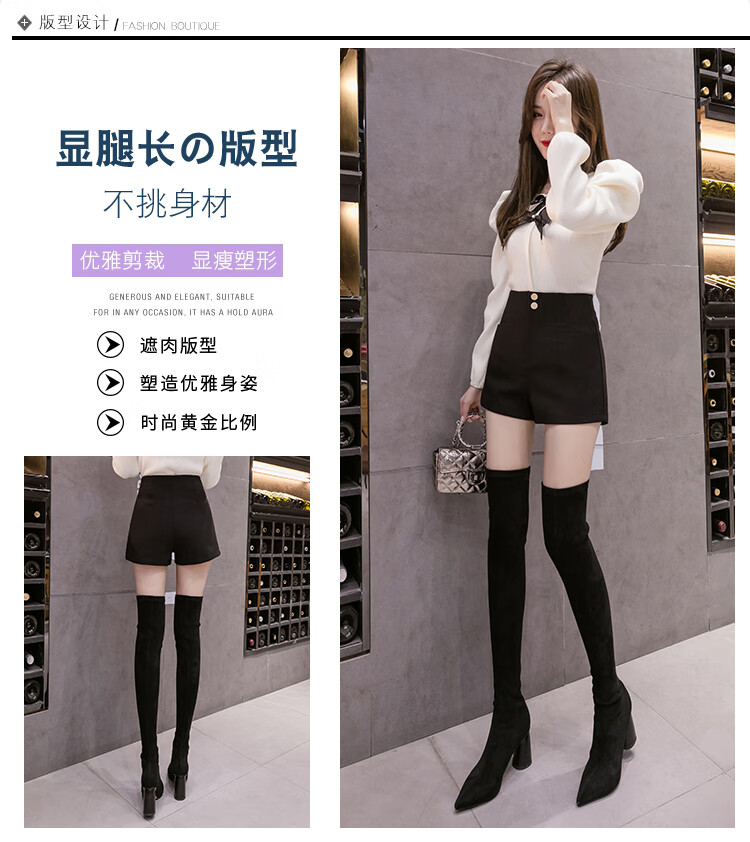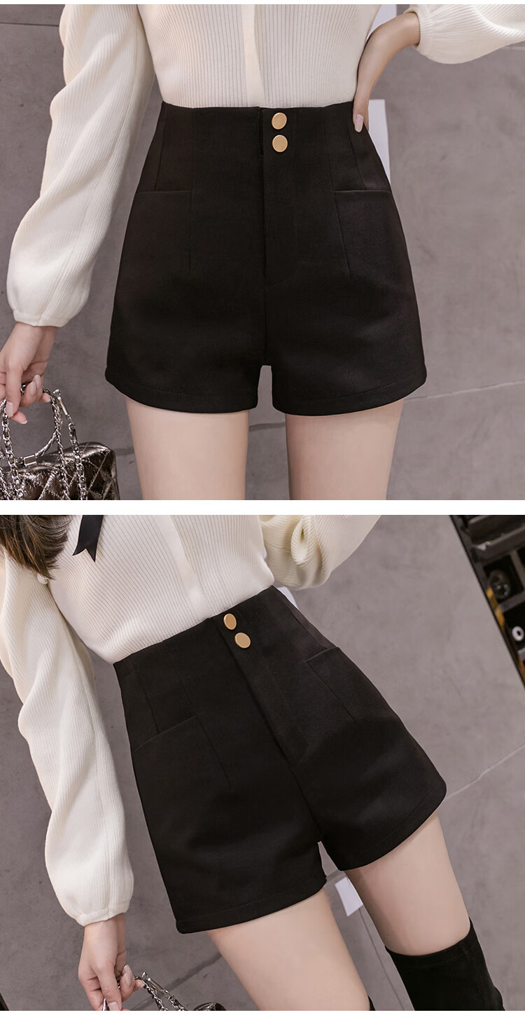 Oubaixi 2025 new winter velvet suit shorts for women, spring, autumn and winter high-waisted black A-line leggings, black XL