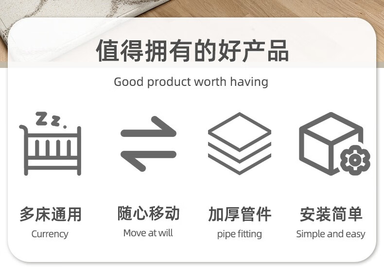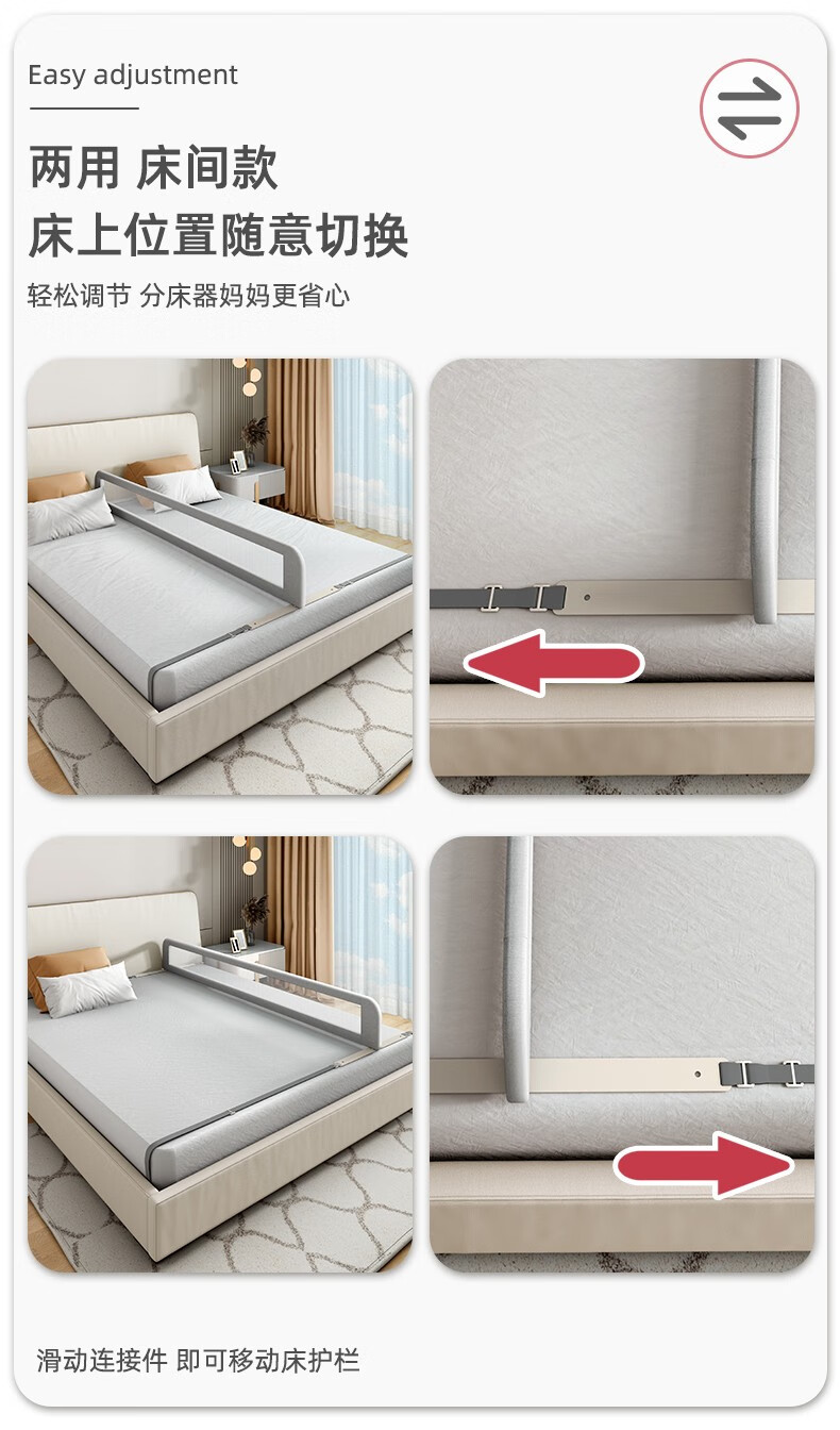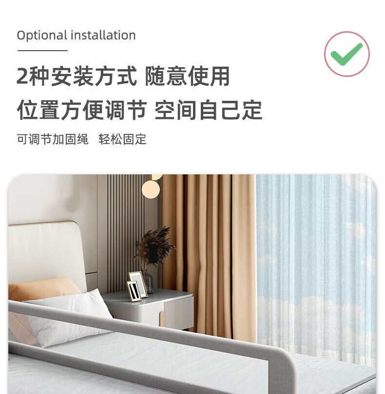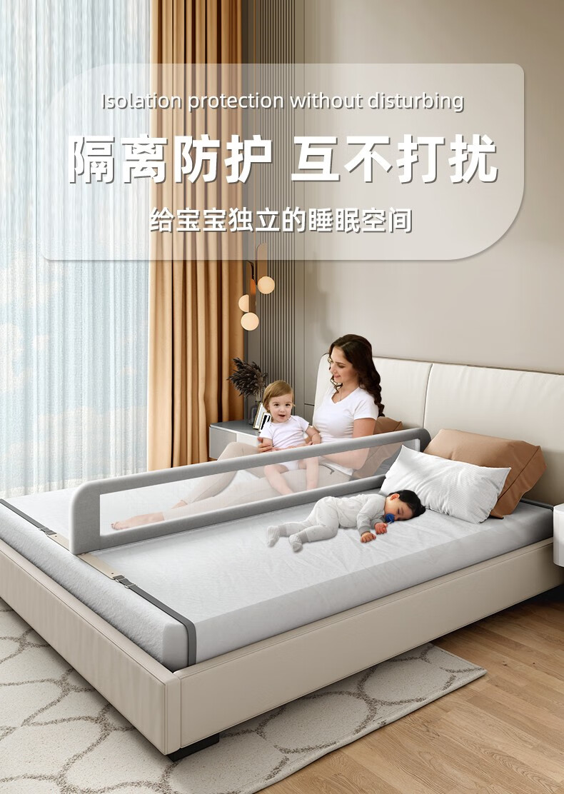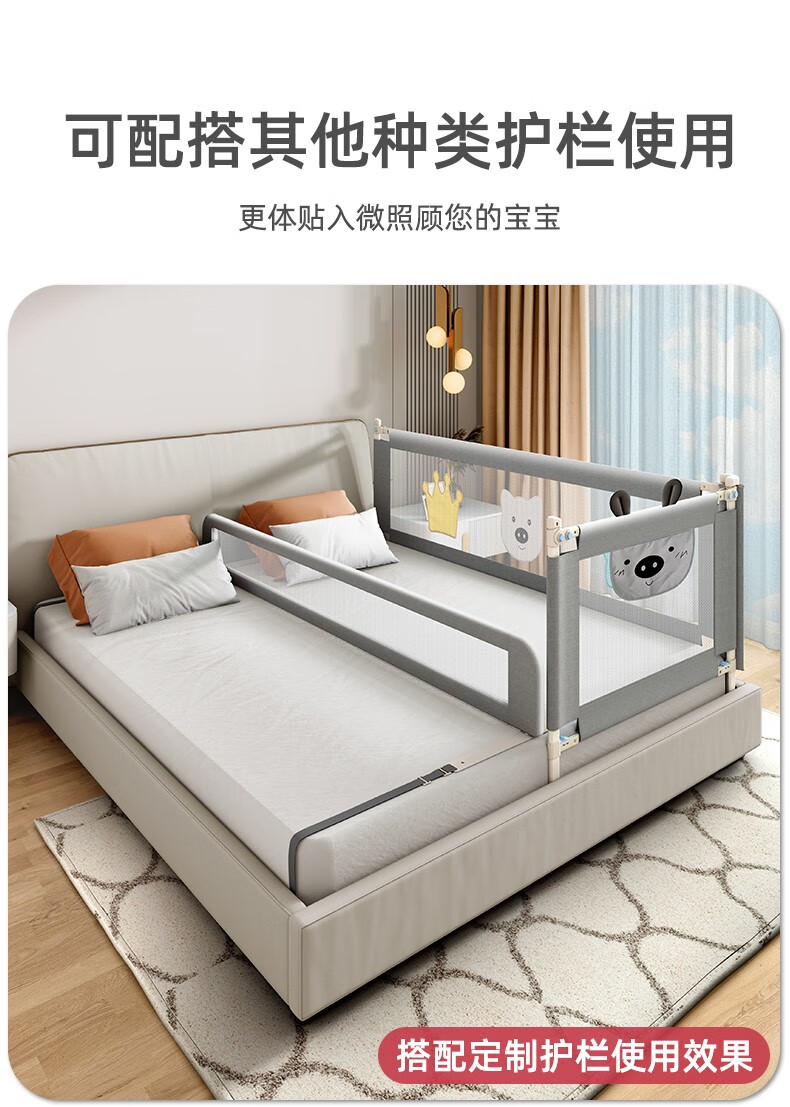 Yougeyi baby and child separate bed artifact bed anti-pressure partition baffle baby anti-falling bed mid-bed fence middle bed guardrail light gray 2 meters one-piece installation between beds, single-sided installation
