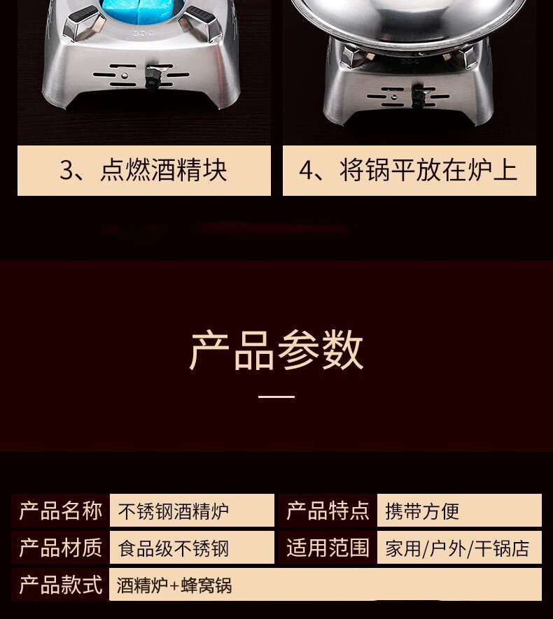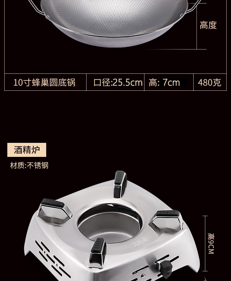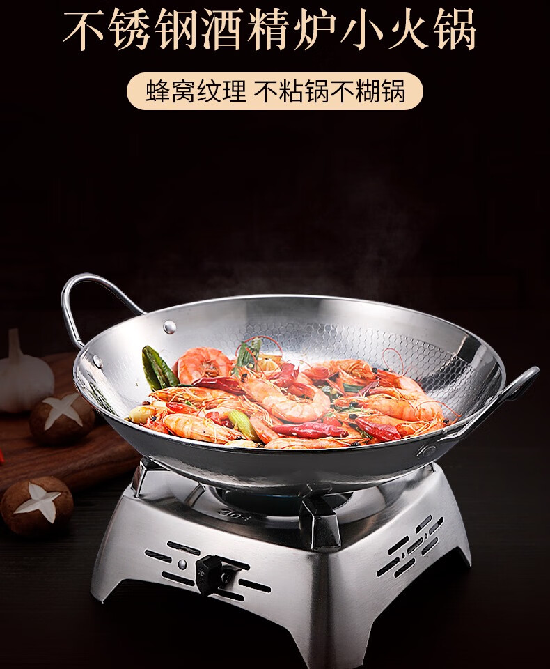 Tiger God alcohol stove hot pot dry pot outdoor alcohol 304 stainless steel pot household dry boiler small hot pot 304 alcohol stove + stainless steel honeycomb pot 10 inches evenly heated, honeycomb anti-sticking