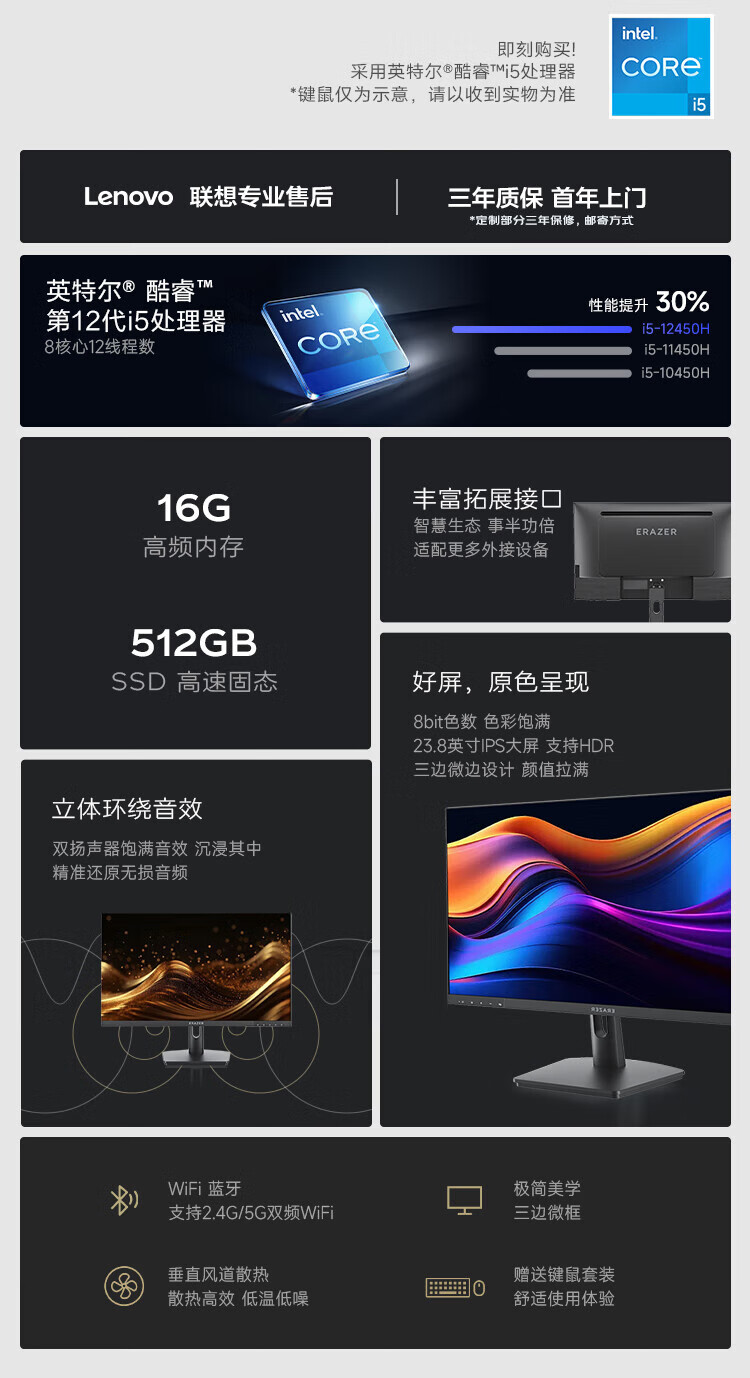 Lenovo Eco-Superior 23.8-inch home office all-in-one computer, complete set of commercial, entertainment, business learning, online class desktop computer, 13th generation high-performance Core i7-13620H black, popular 16G large memory + 512G high-speed solid state customization