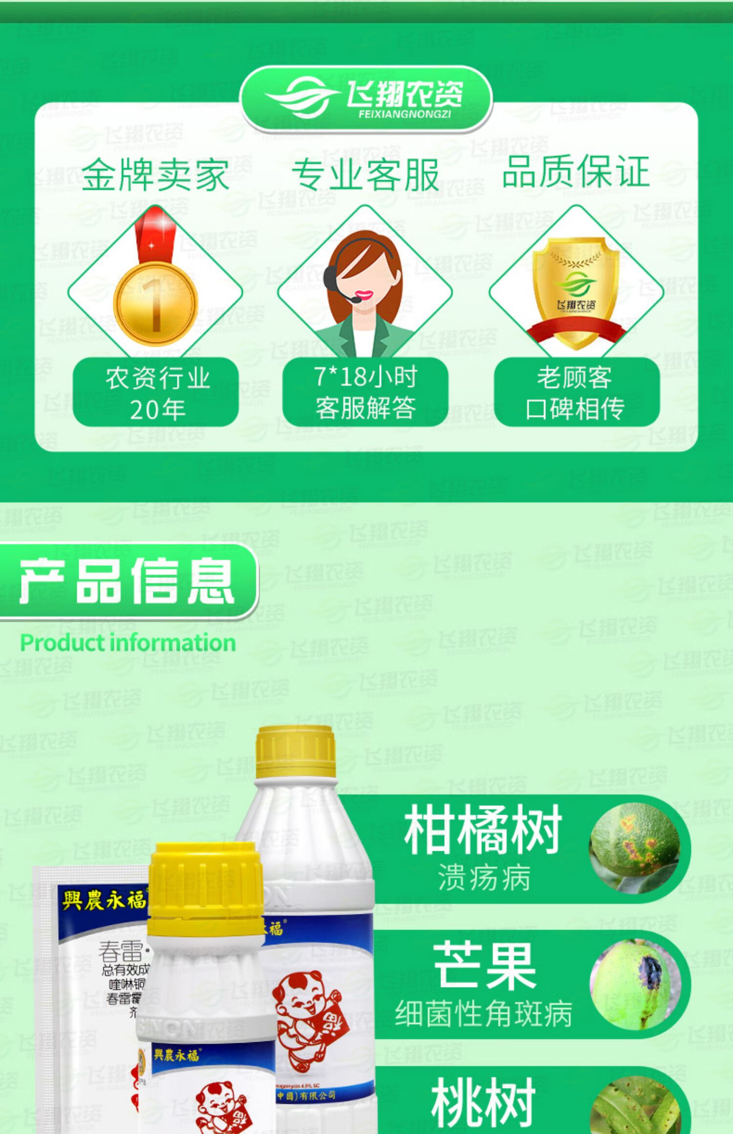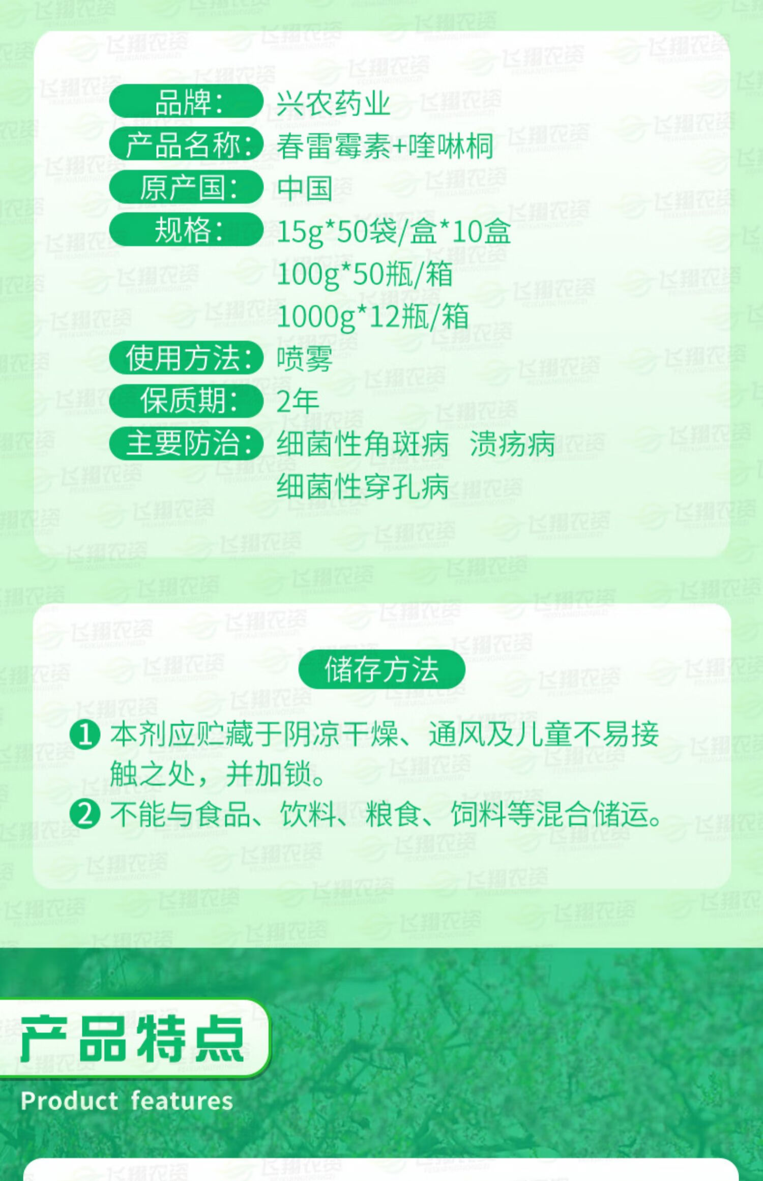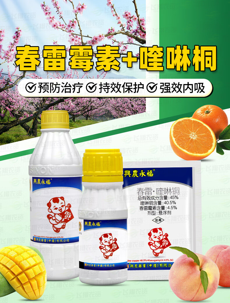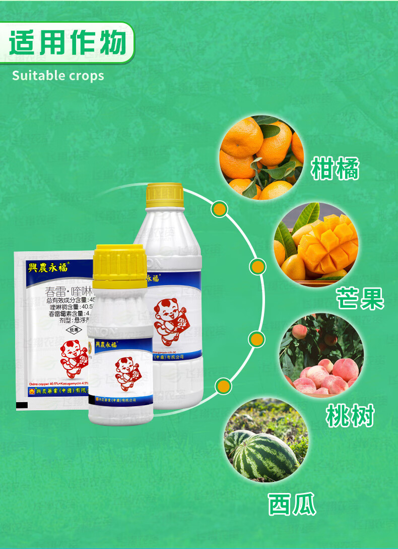 Xingnong Yongfu 45% Kasugamycin Quinoline Copper Citrus Canker Watermelon Bacterial Angular Spot Fungicide Taiwan 500g