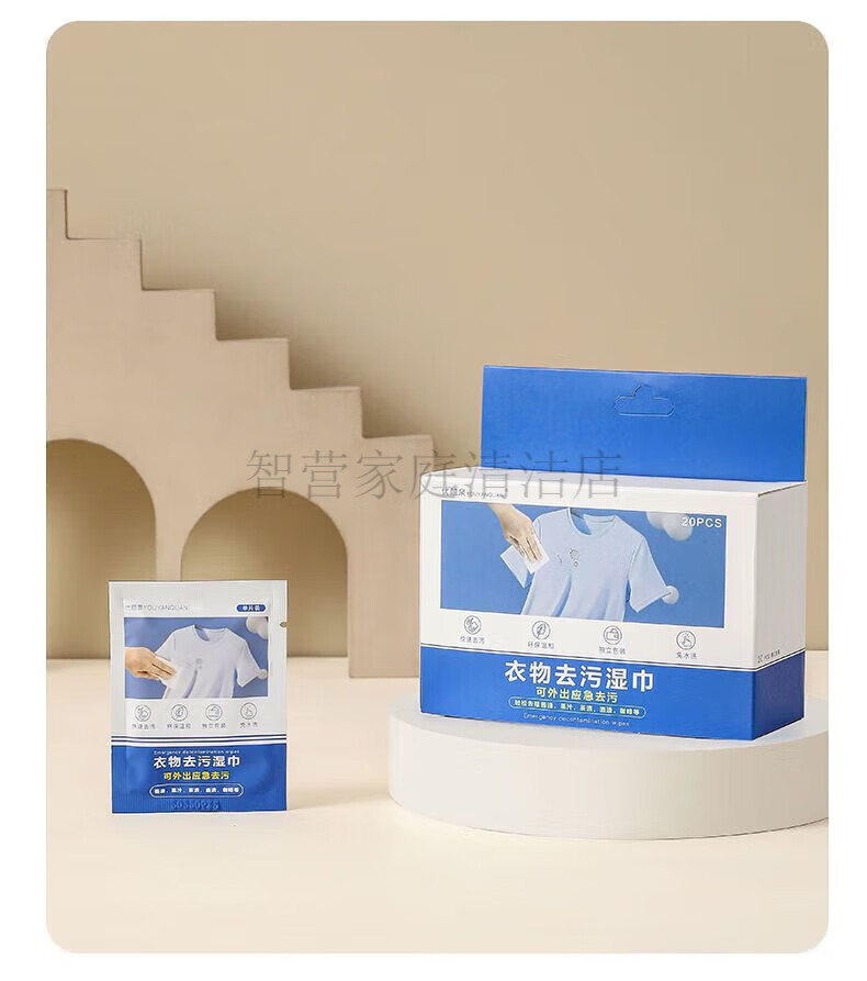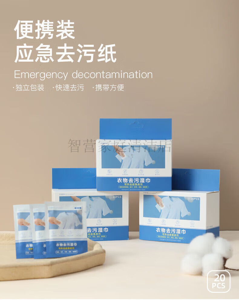 Clothes cleaning wipes, individually packaged, portable clothing decontamination wipes, emergency clothing stain removal, no-wash cleaning wipes, powerful stain removal, clothing cleaning wipes - 3 boxes (60 pieces)