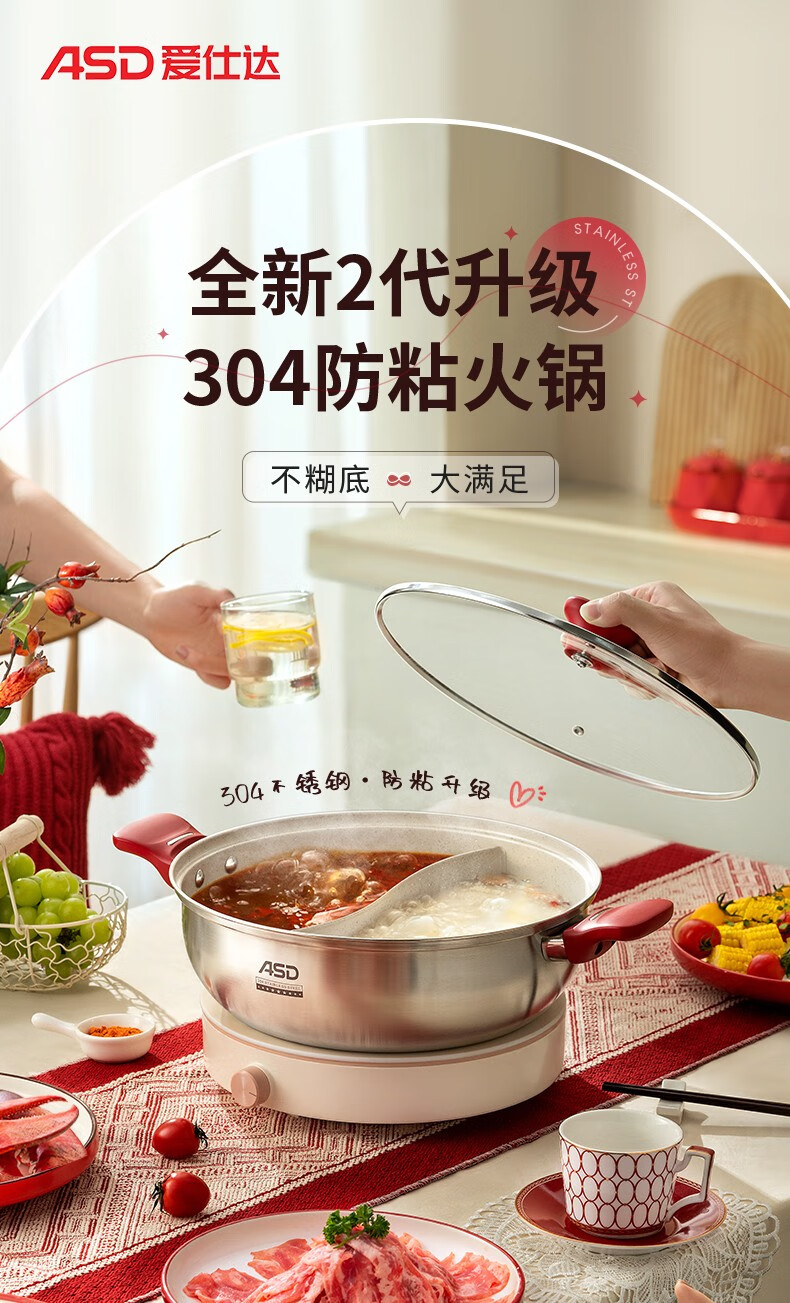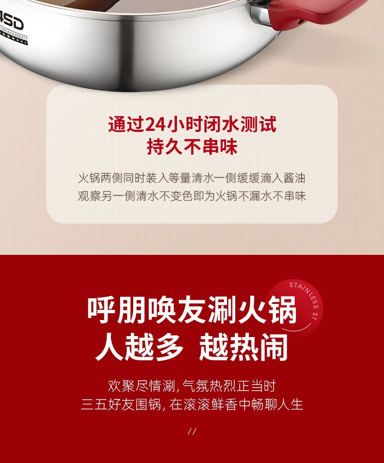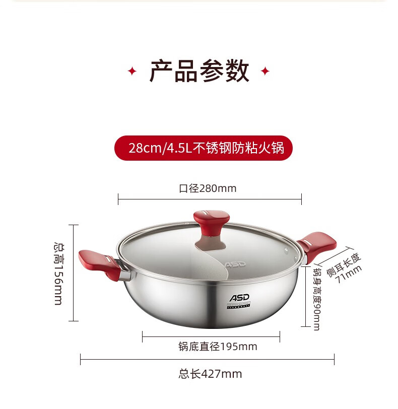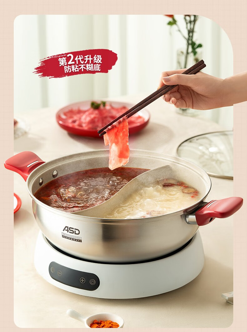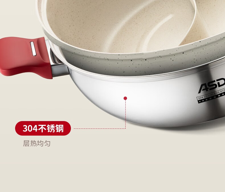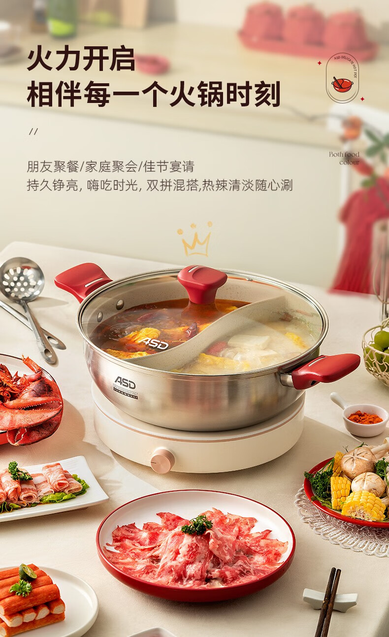 ASD (ASD) hot pot non-stick pot 304 stainless steel household large capacity Yuanyang pot shabu-shabu open flame gas induction cooker Yuanyang hot pot with soup colander 28cm