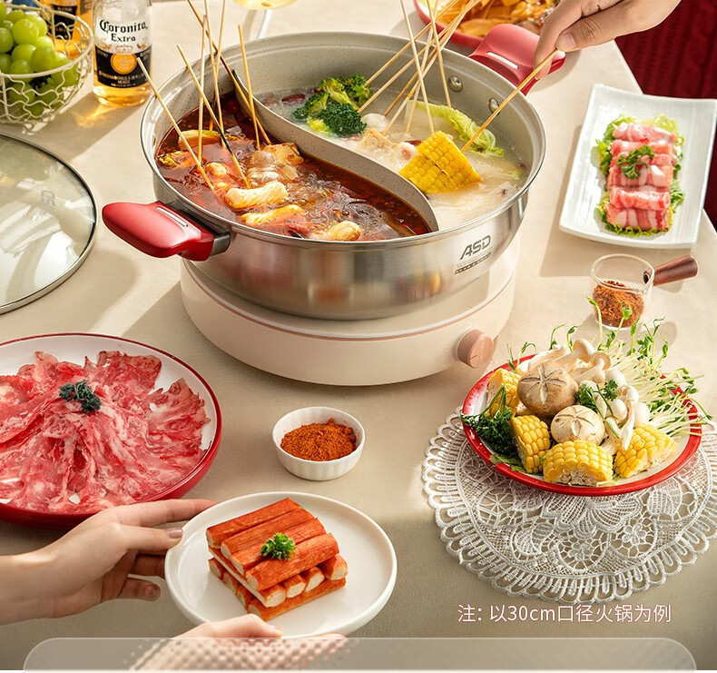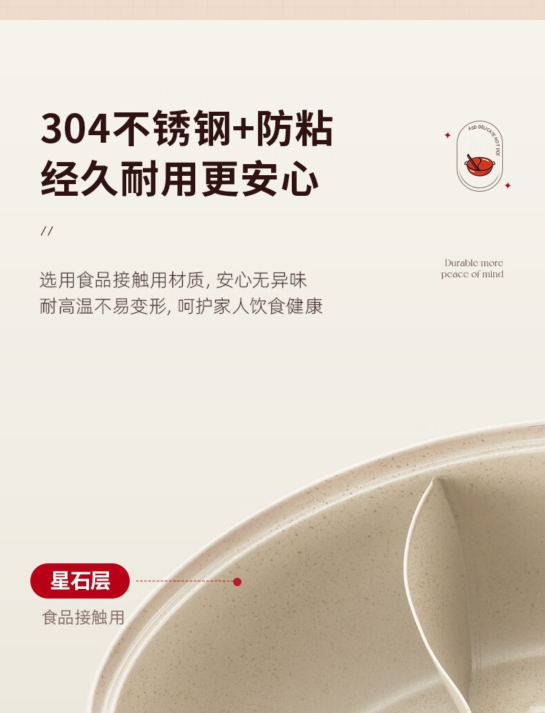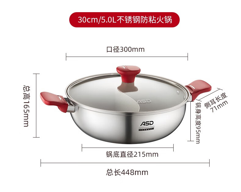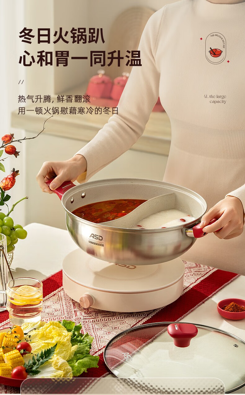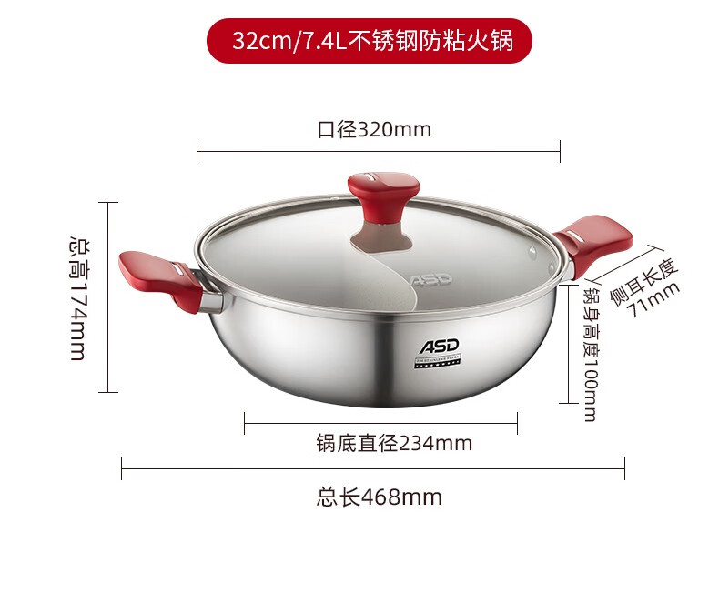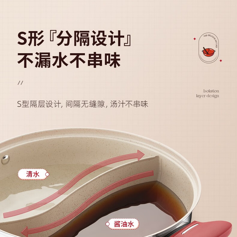 ASD (ASD) hot pot non-stick pot 304 stainless steel household large capacity Yuanyang pot shabu-shabu open flame gas induction cooker Yuanyang hot pot with soup colander 28cm