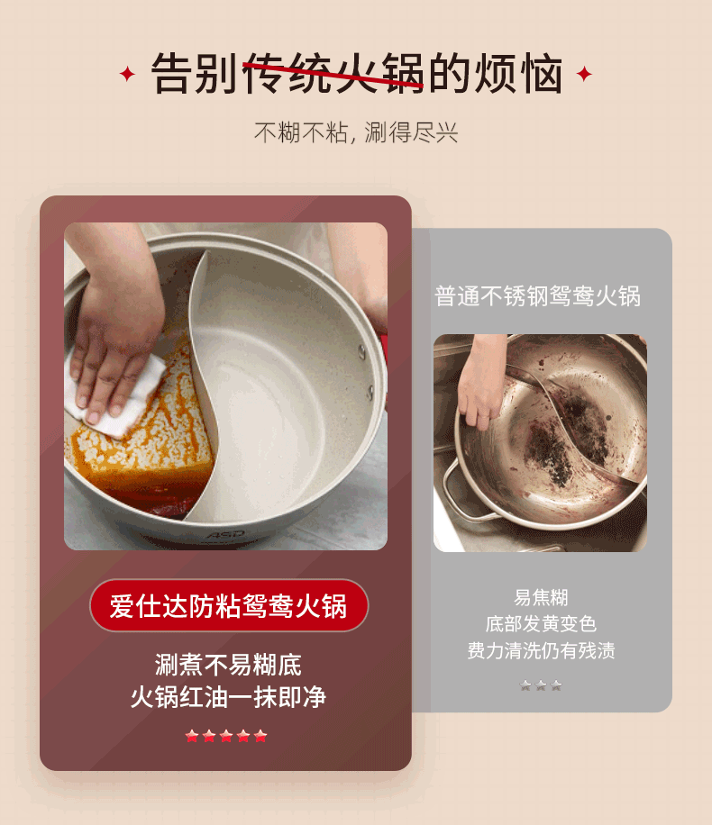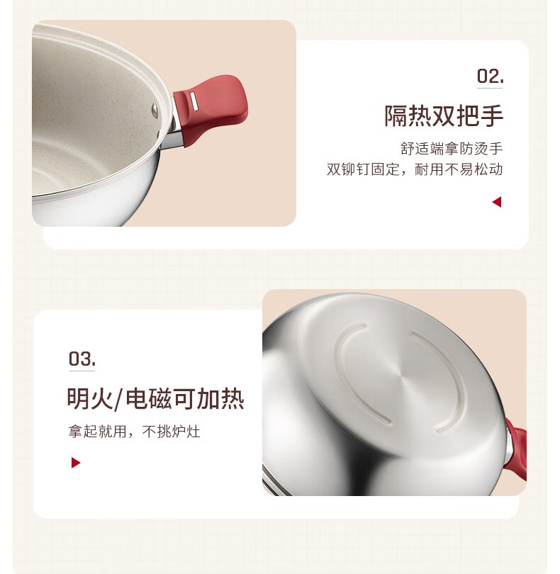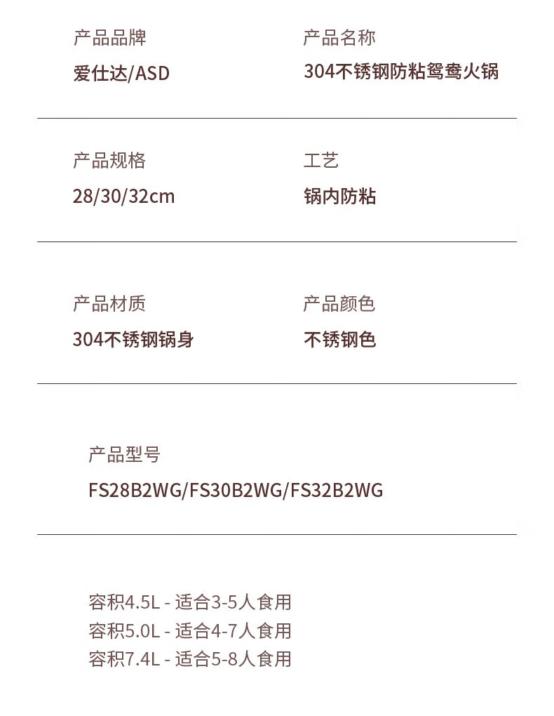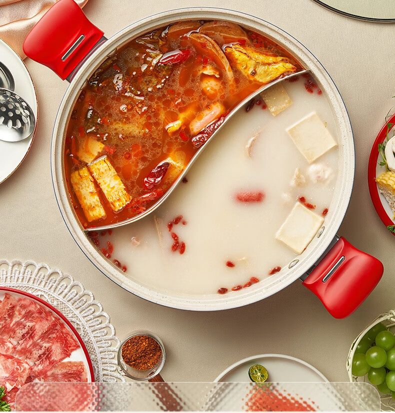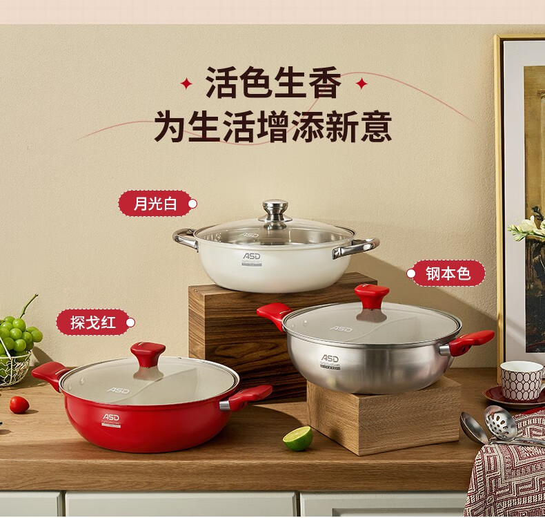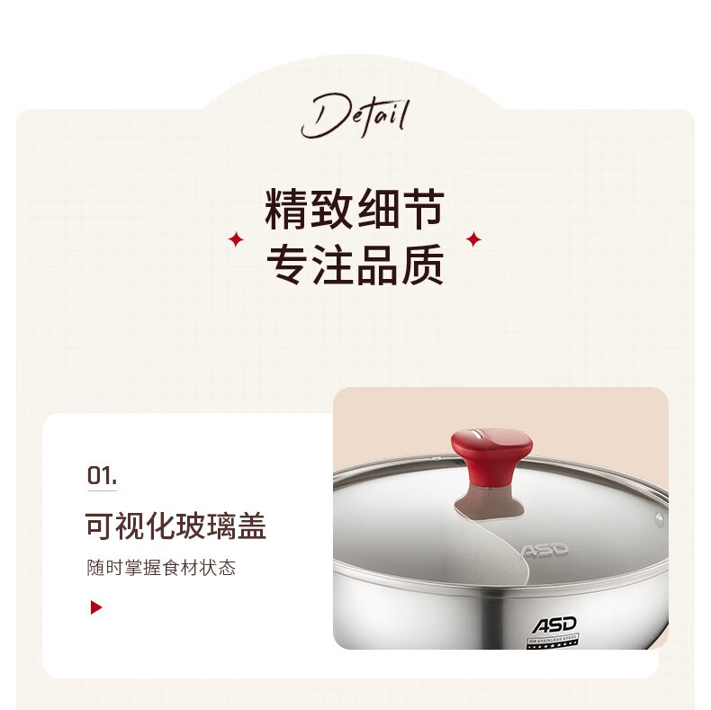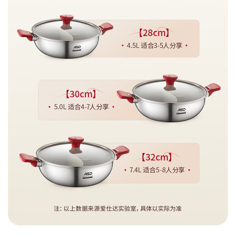 ASD (ASD) hot pot non-stick pot 304 stainless steel household large capacity Yuanyang pot shabu-shabu open flame gas induction cooker Yuanyang hot pot with soup colander 28cm