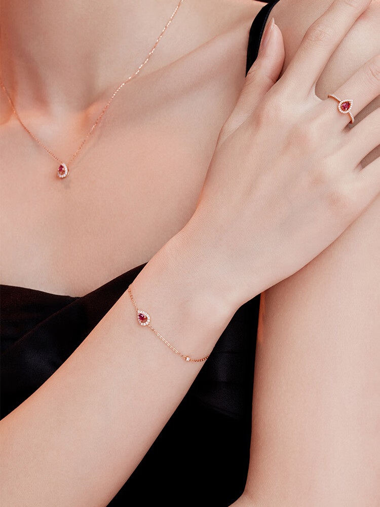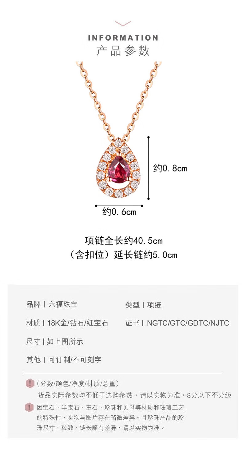 Lukfook Jewelry 18K gold drop ruby diamond necklace set chain gift G22DSKN0004R total weight 1.89 grams