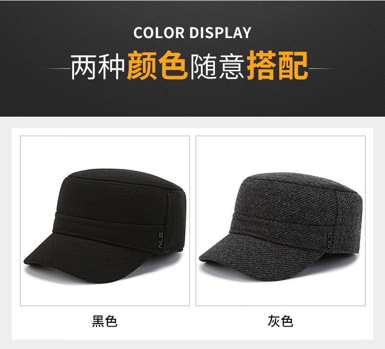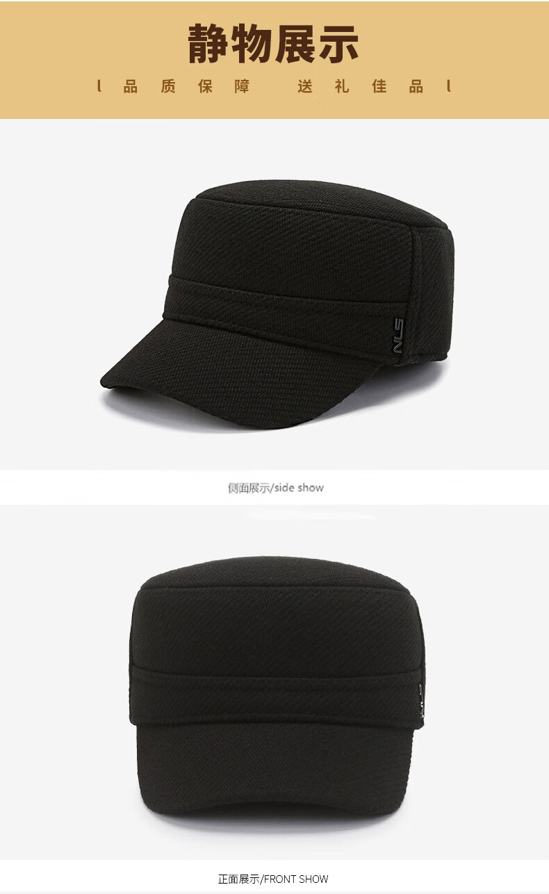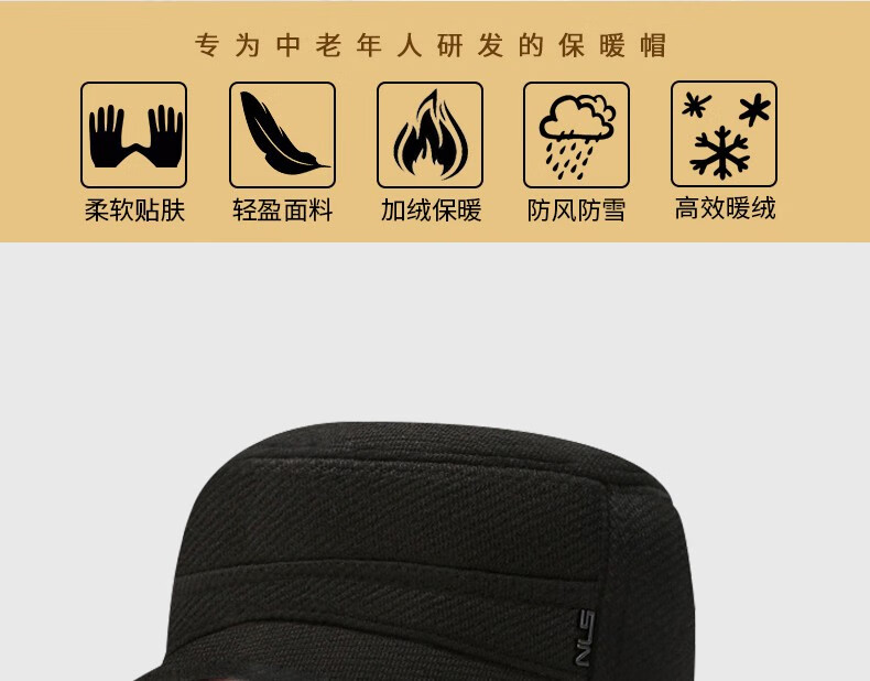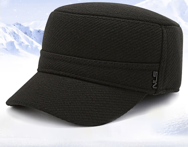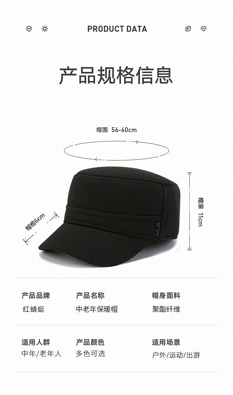 Red Dragonfly middle-aged and elderly men's winter velvet ear protection peaked cap for the elderly, windproof and warm grandfather hat, old man flat cap, velvet and thick ear protection, black, one size fits all, adjustable hat circumference (56-60CM)