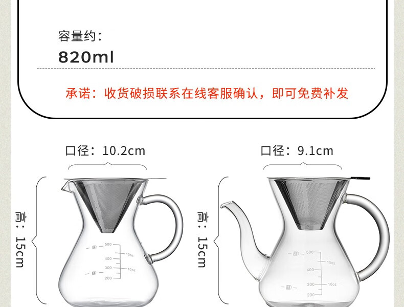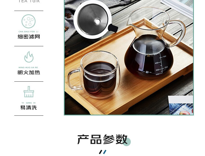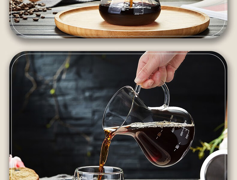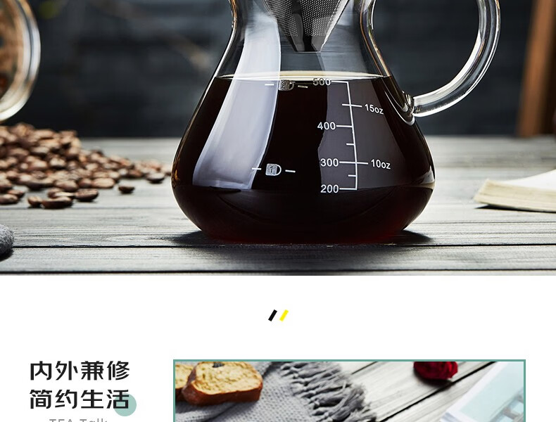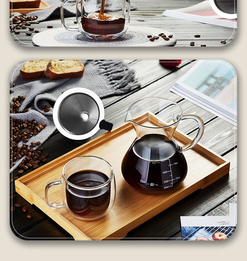 Mesni hand-brewed coffee pot set heat-resistant glass filter sharing pot stainless steel graduated drip filter upgraded coffee pot 750ml