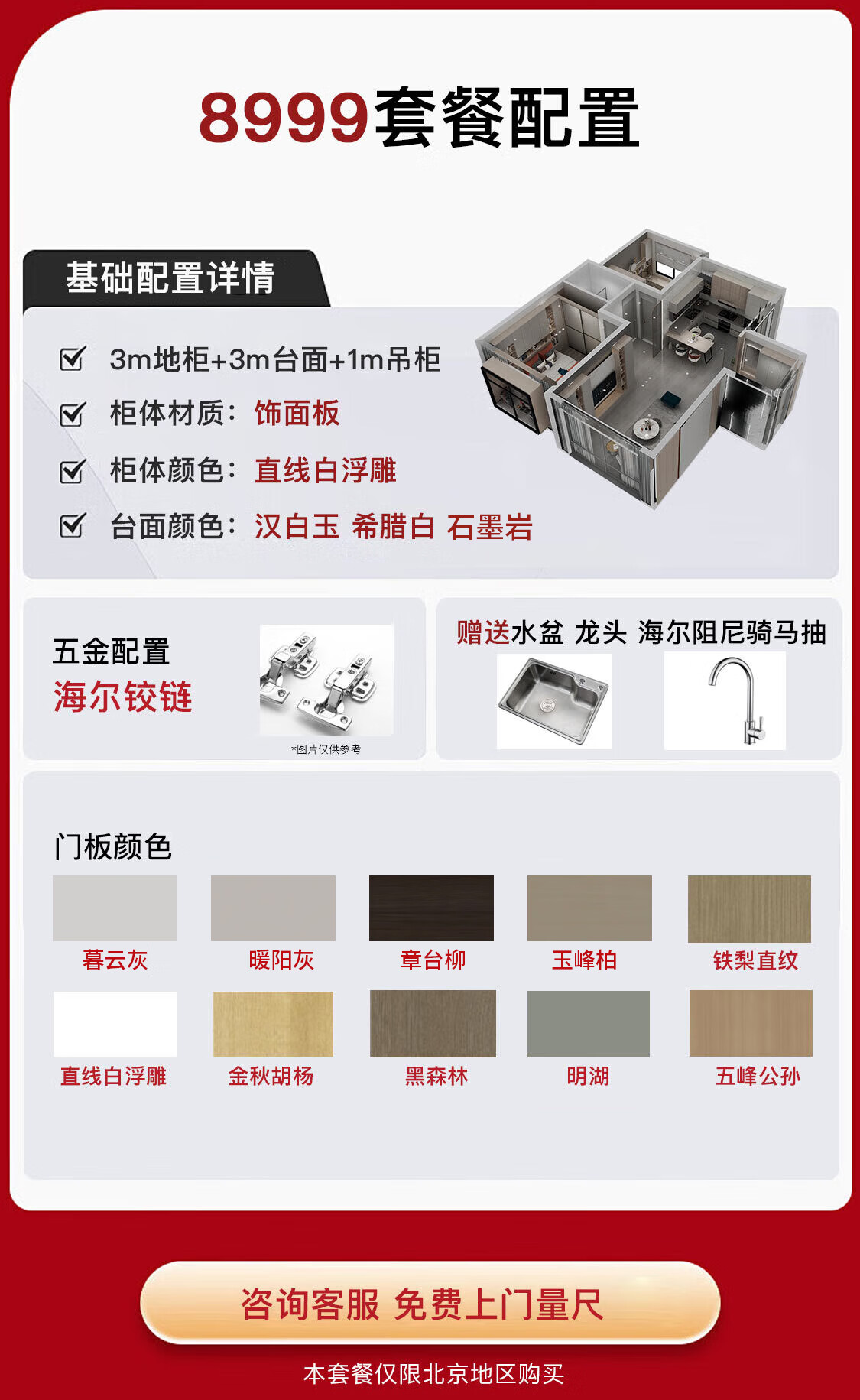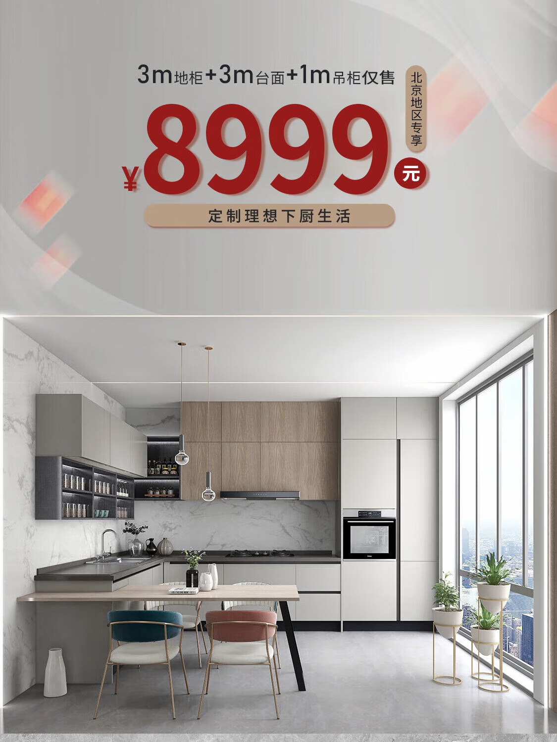 Haier kitchen cabinets custom integrated cabinets modern minimalist kitchen integrated kitchen whole house customized quartz stone countertops limited to Beijing 500 prepayment