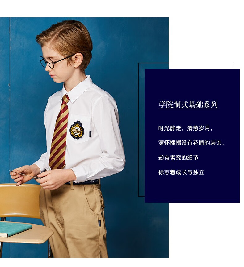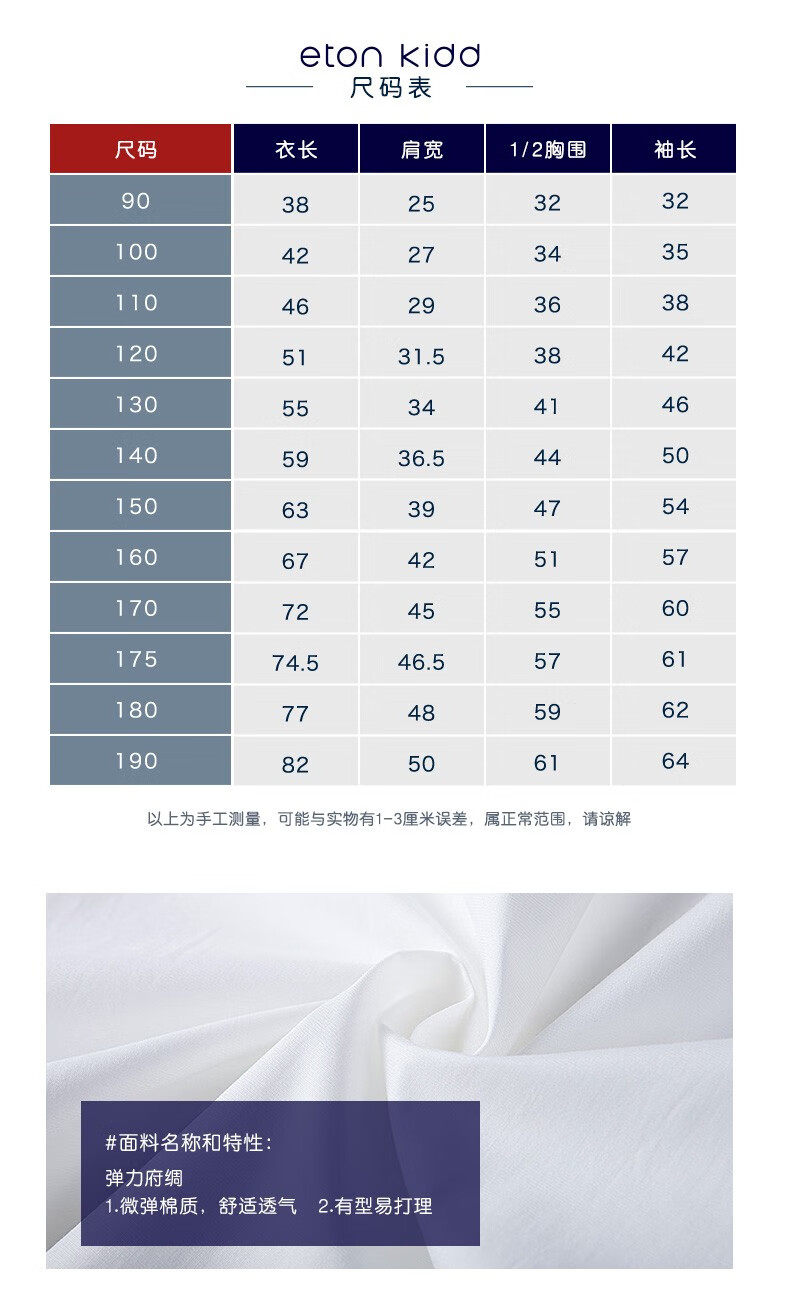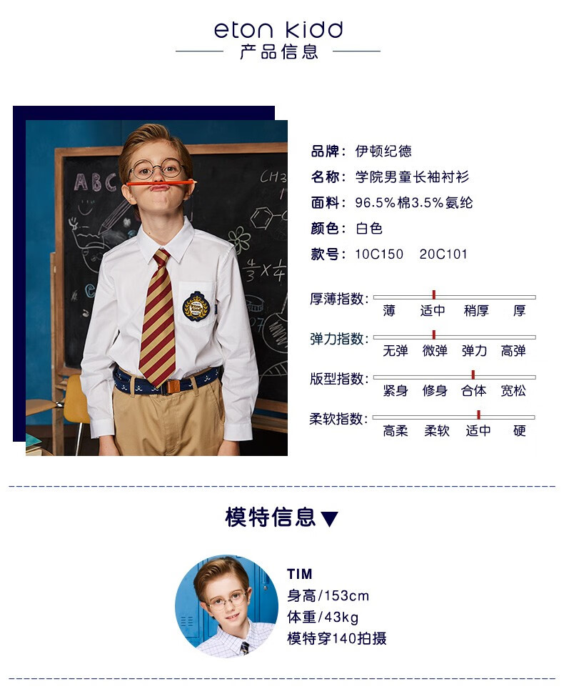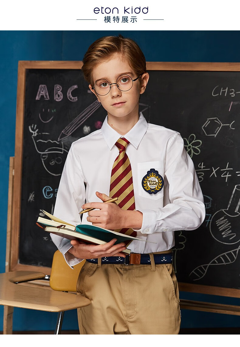 Eton Gide School Uniform Children's White Shirt College Solid Color Spring and Autumn College Long Sleeve Men's Shirt 10C150 White 160cm