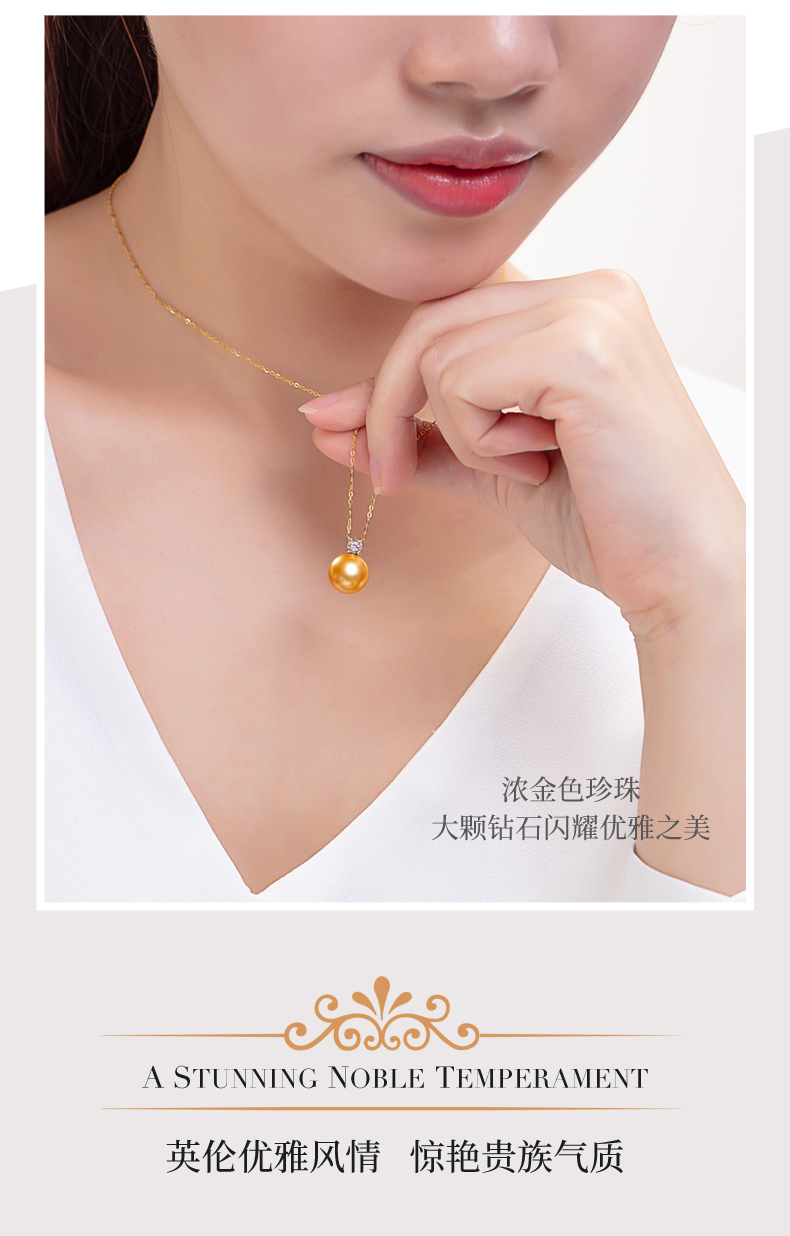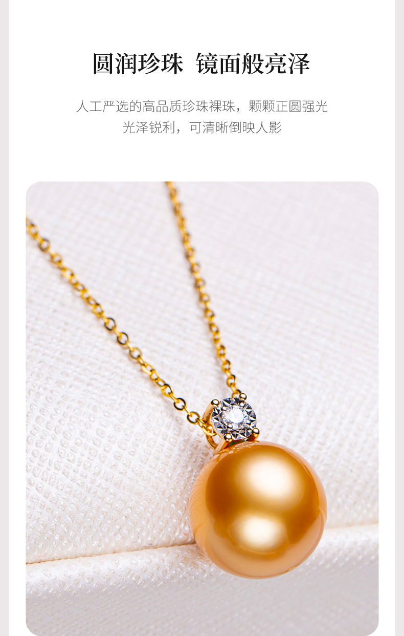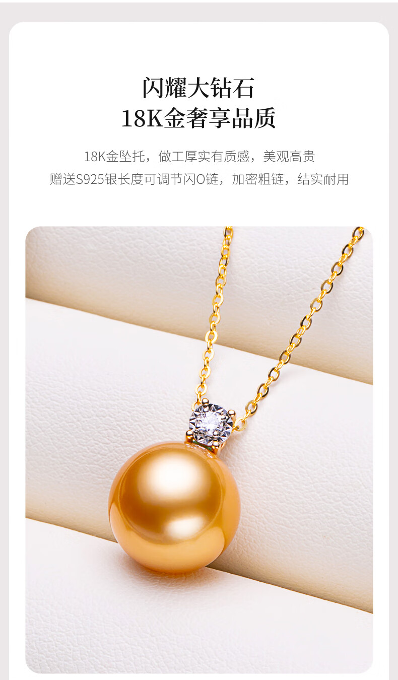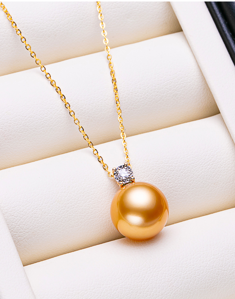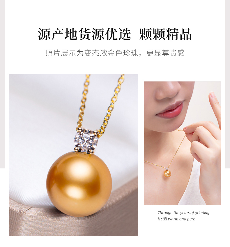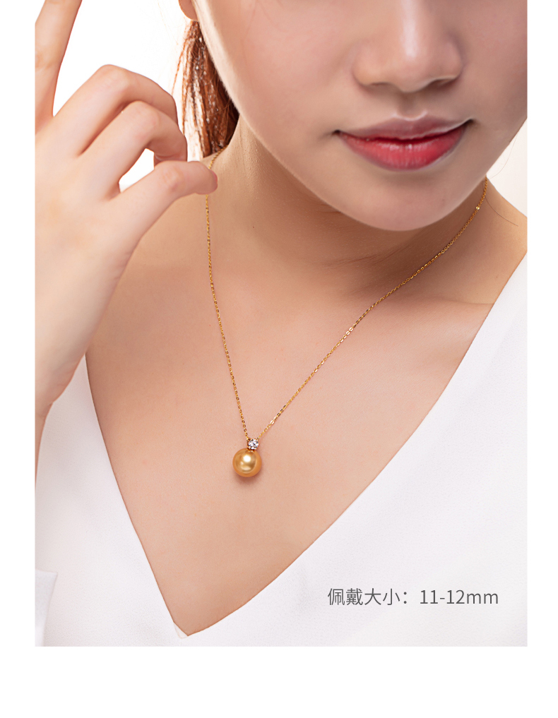 Nan Xi Diamond Intense Gold 18K Gold South Sea Gold Bead Pearl Pendant Single Queen Seawater Pearl Necklace Gift S Grade/Selected Almost Flawless 12-13mm+18k Gold Chain