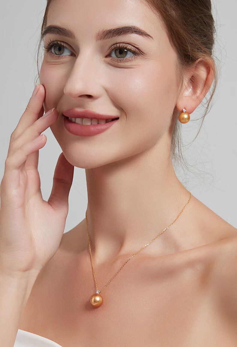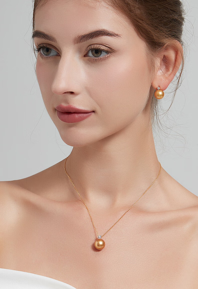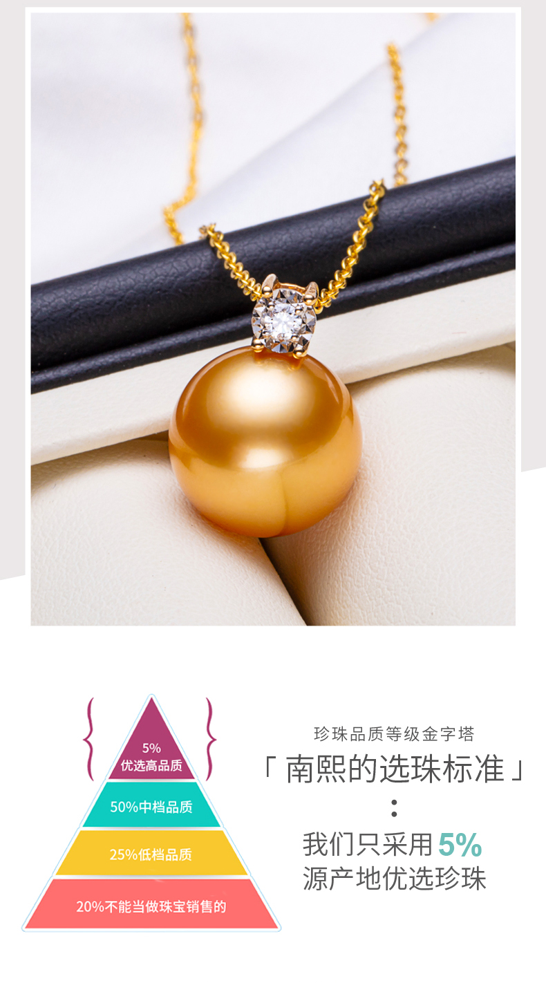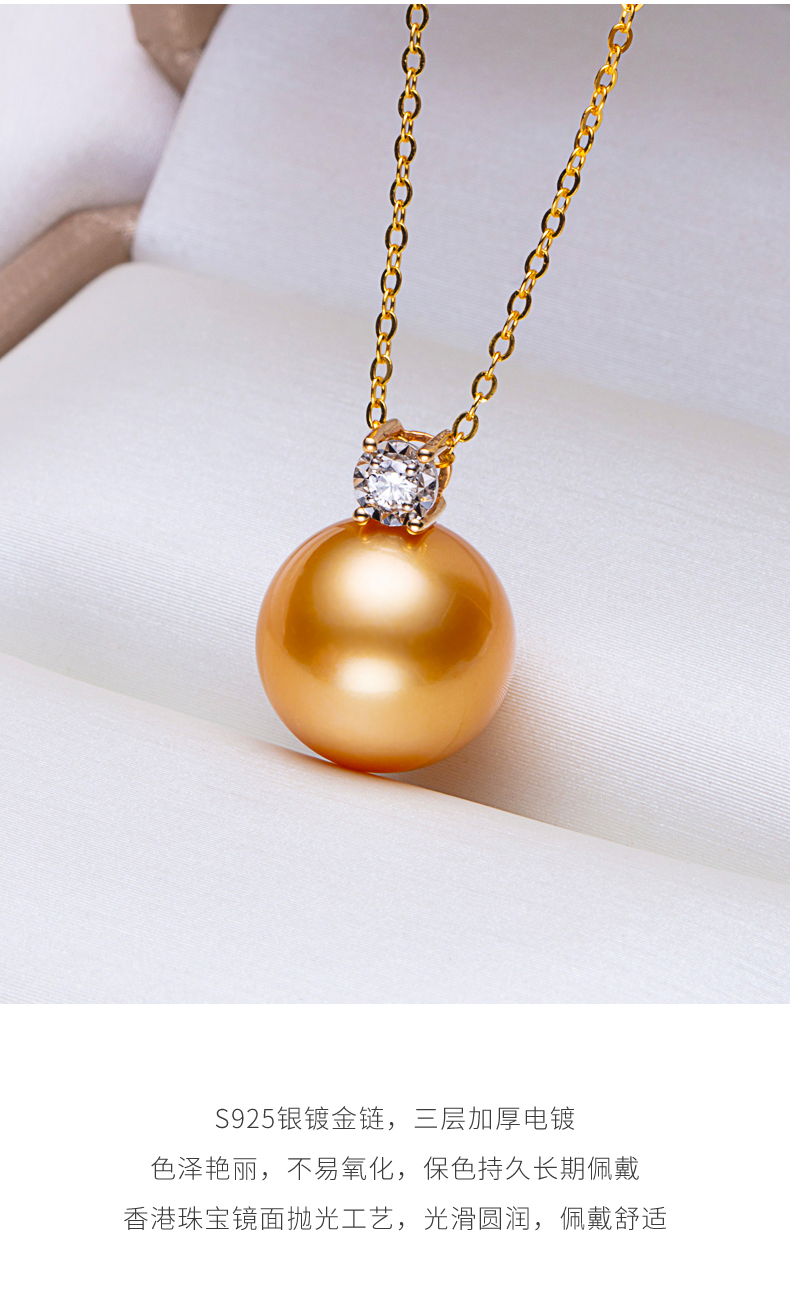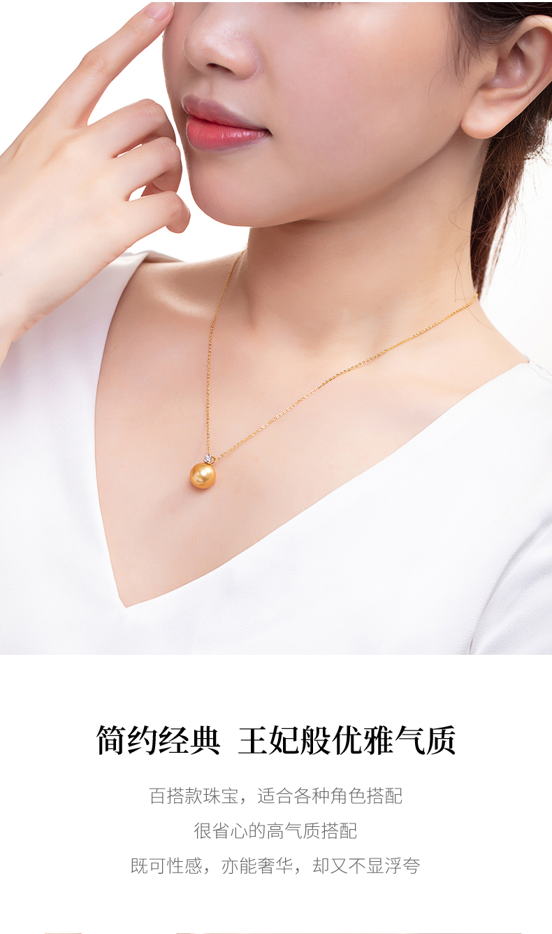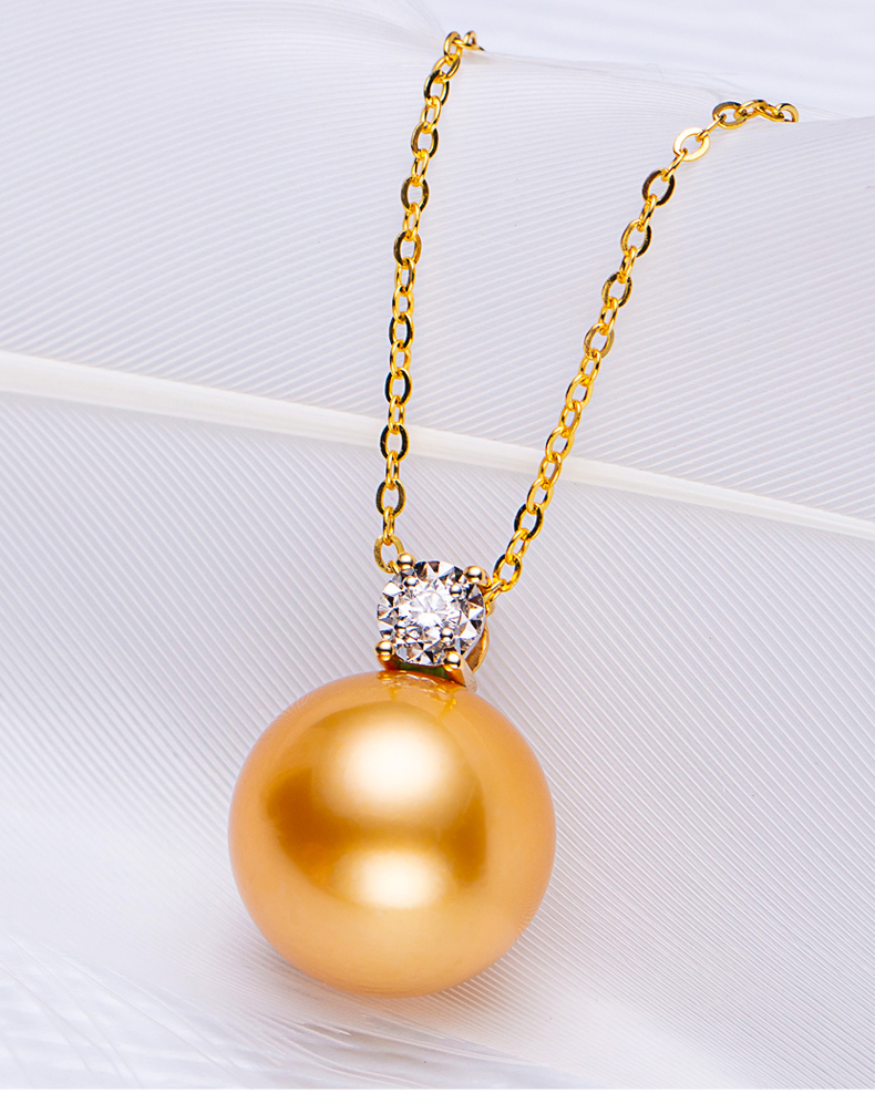 Nan Xi Diamond Intense Gold 18K Gold South Sea Gold Bead Pearl Pendant Single Queen Seawater Pearl Necklace Gift S Grade/Selected Almost Flawless 12-13mm+18k Gold Chain