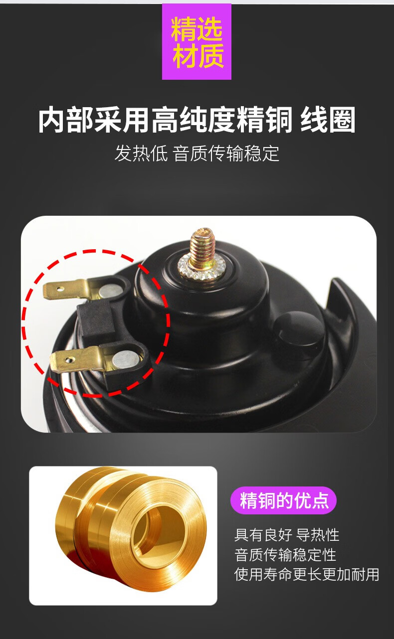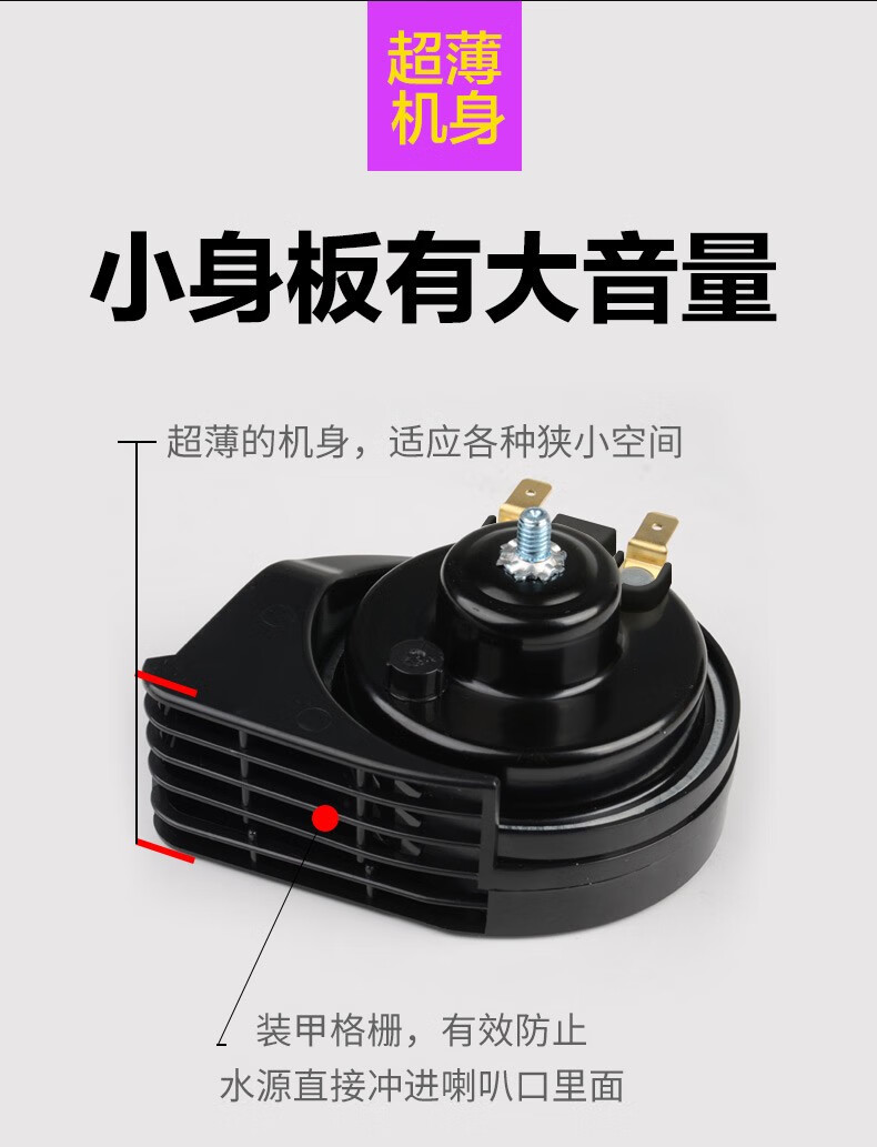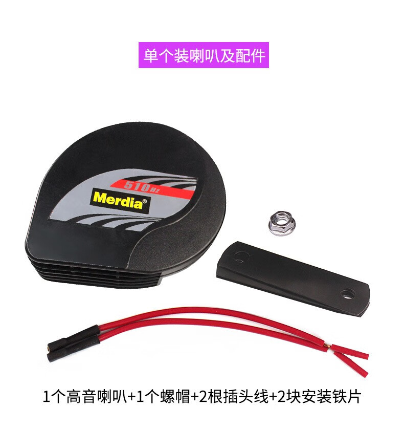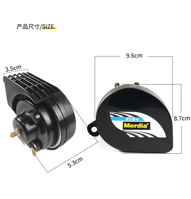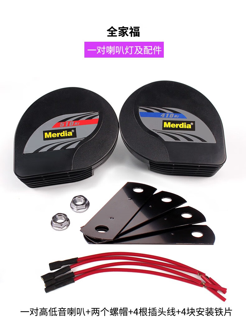 Medea car snail horn 12V super loud waterproof car motorcycle electric vehicle universal modified ultra-thin high and low two-tone whistle horn treble one horn