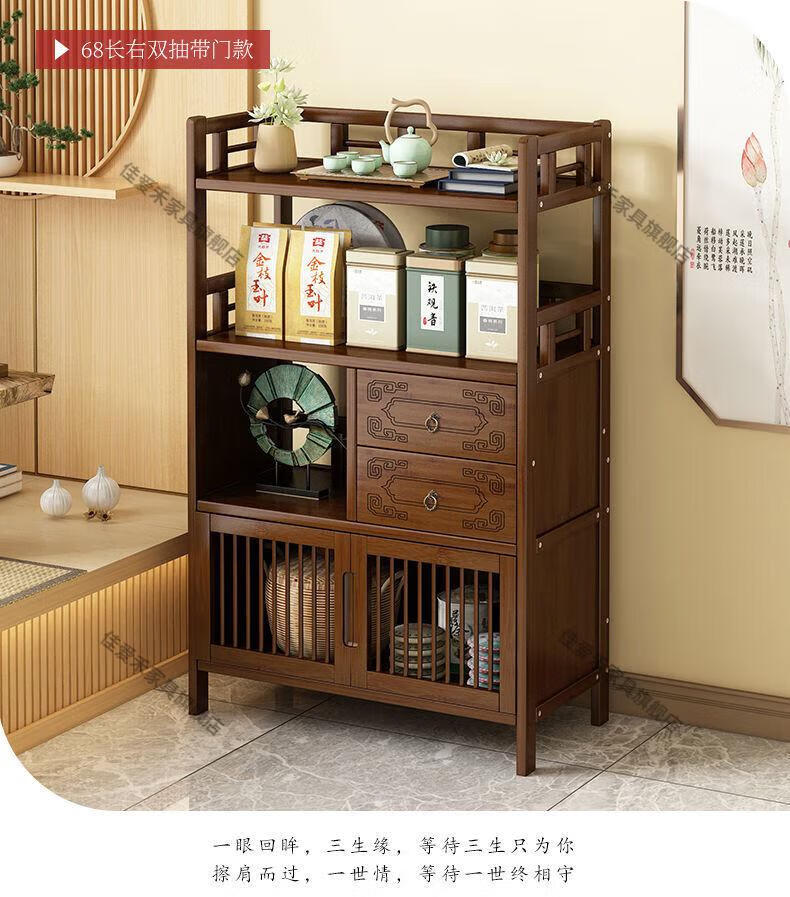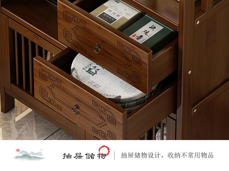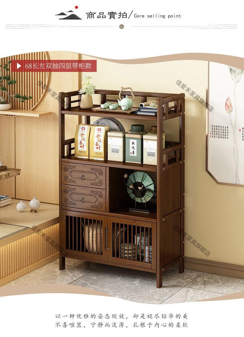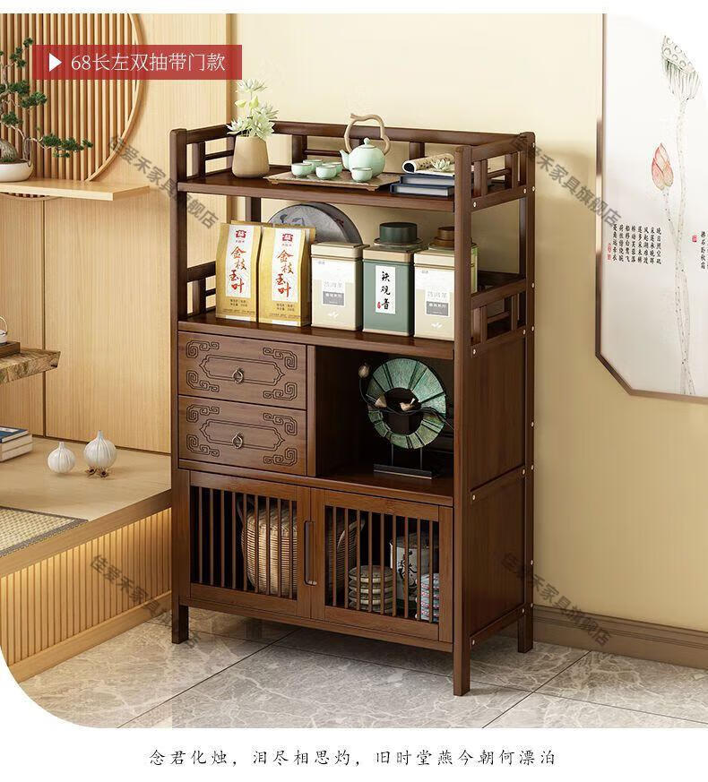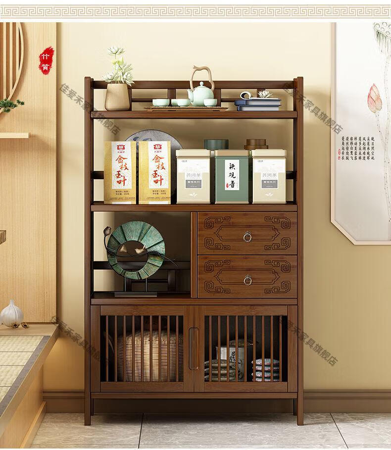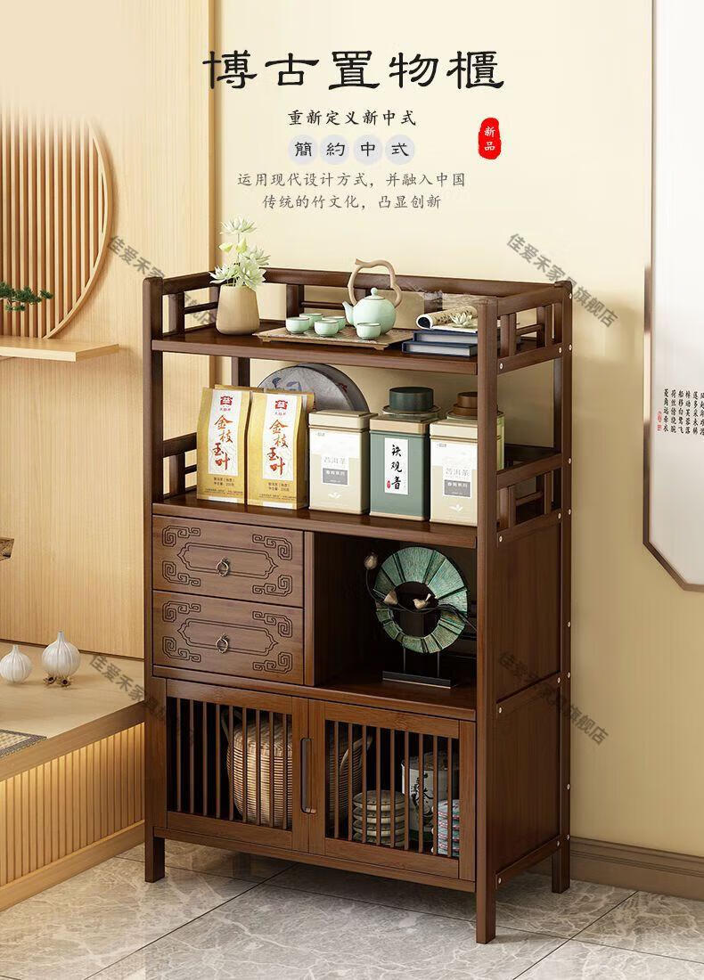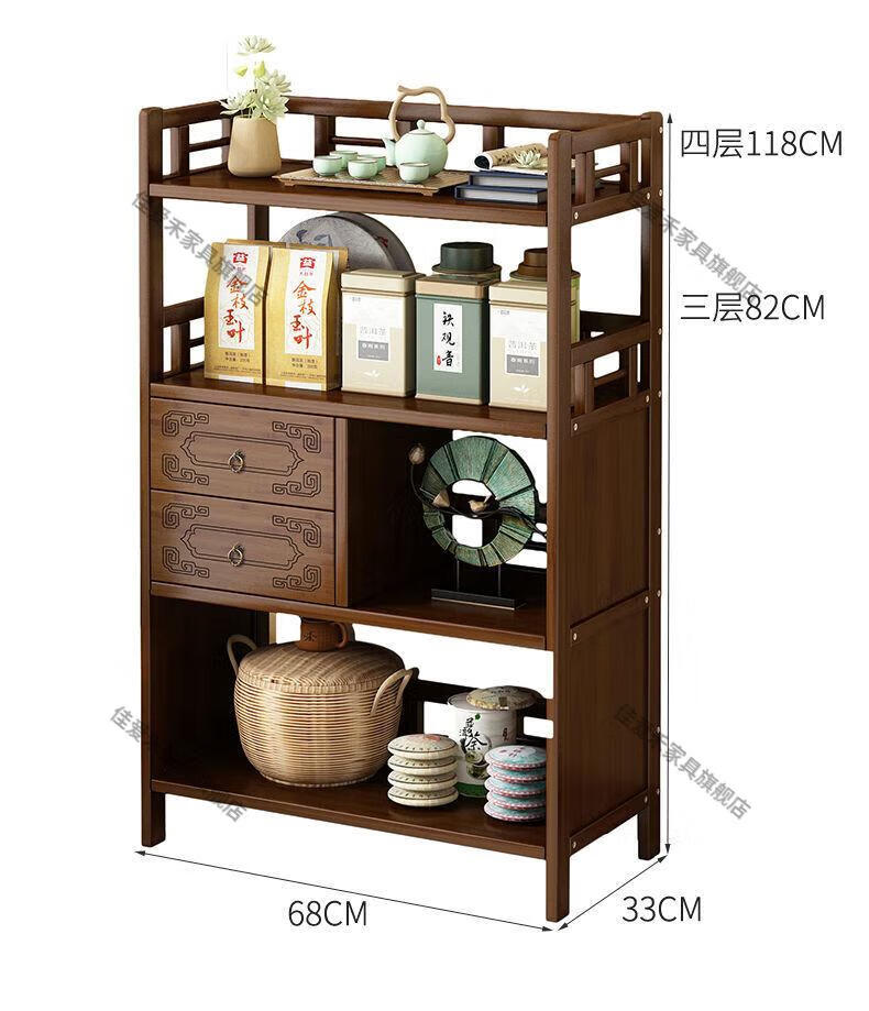 Jiaaihe solid wood small Bogu rack tea cabinet multi-functional tea set tea storage cabinet side cabinet small storage shelf four layers upgraded right drawer with door
