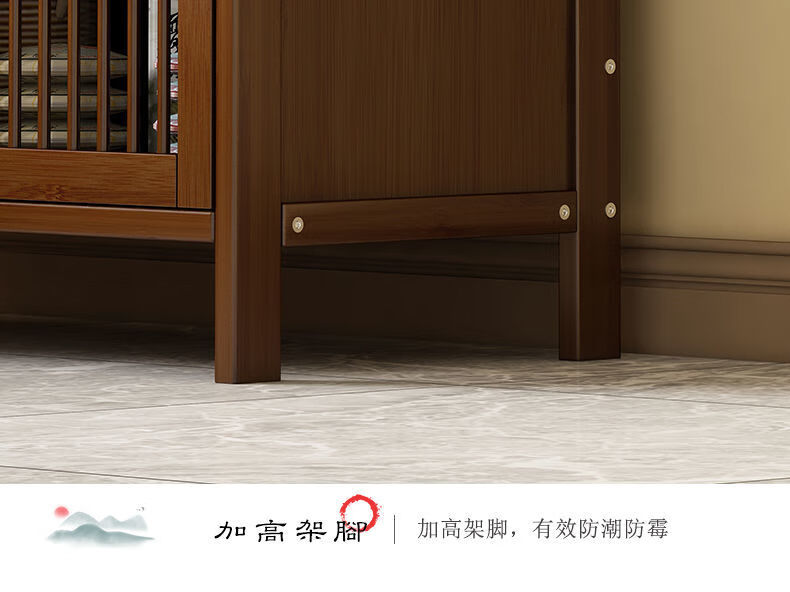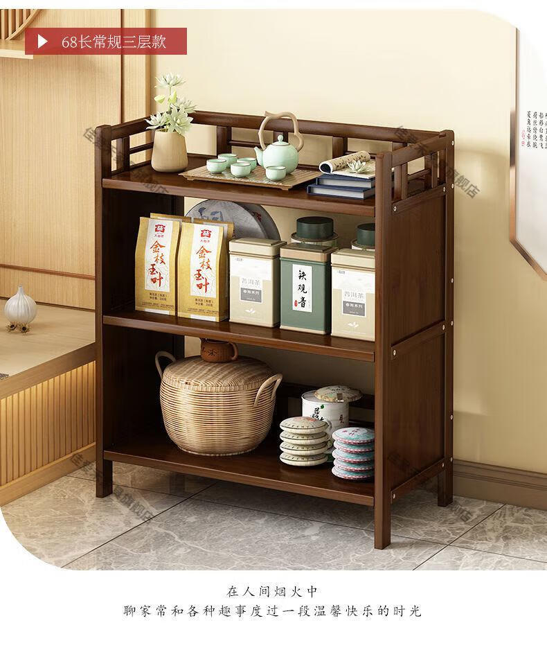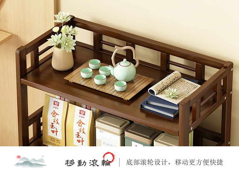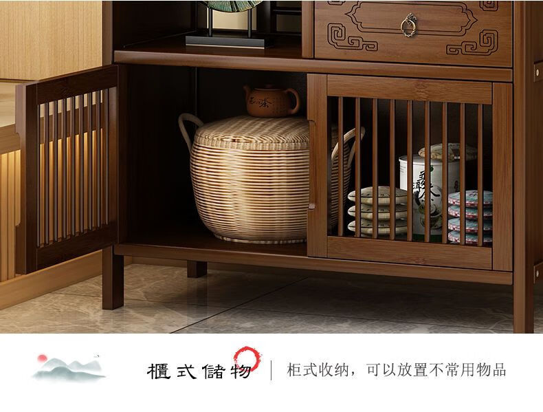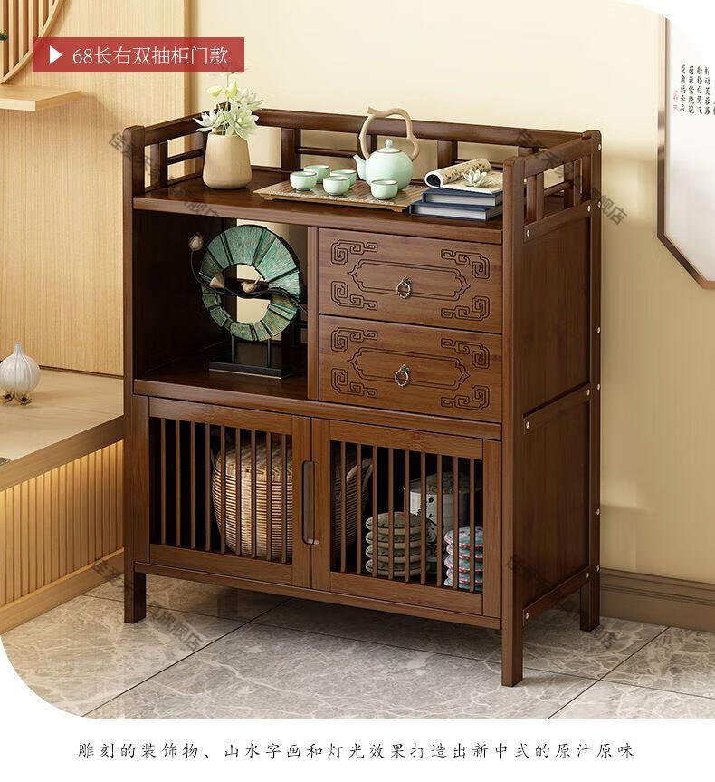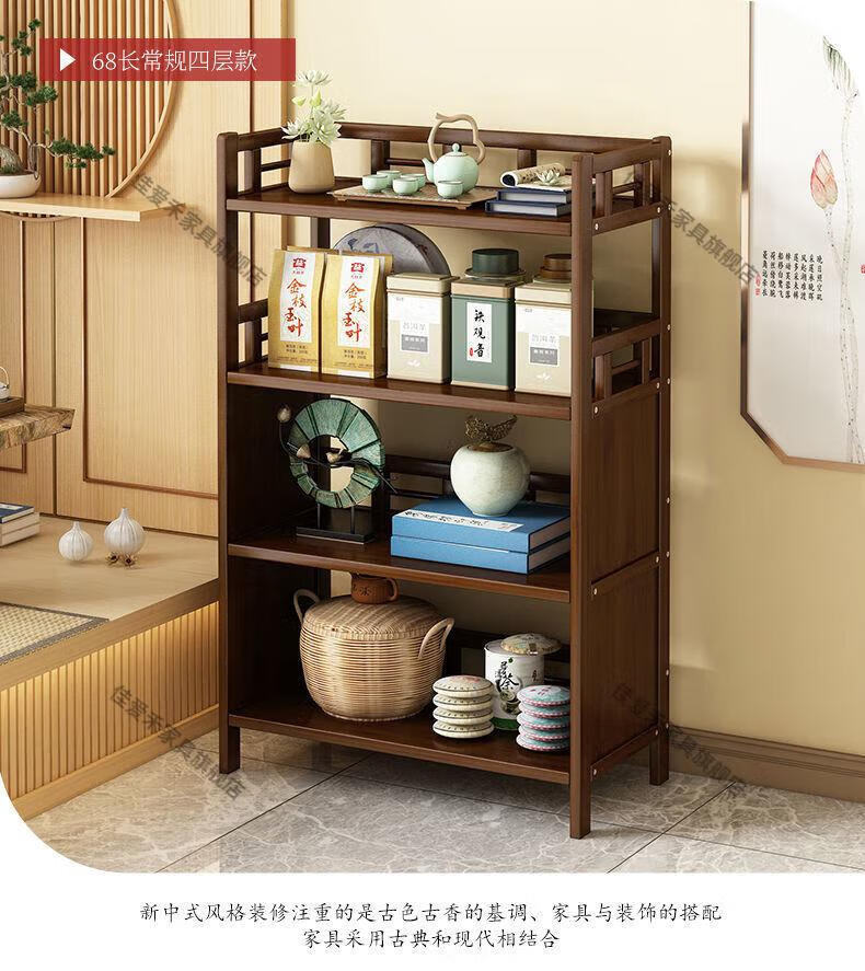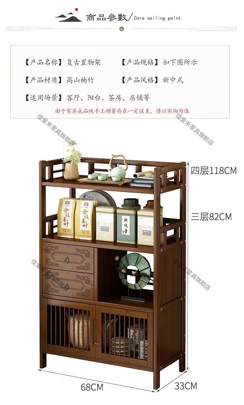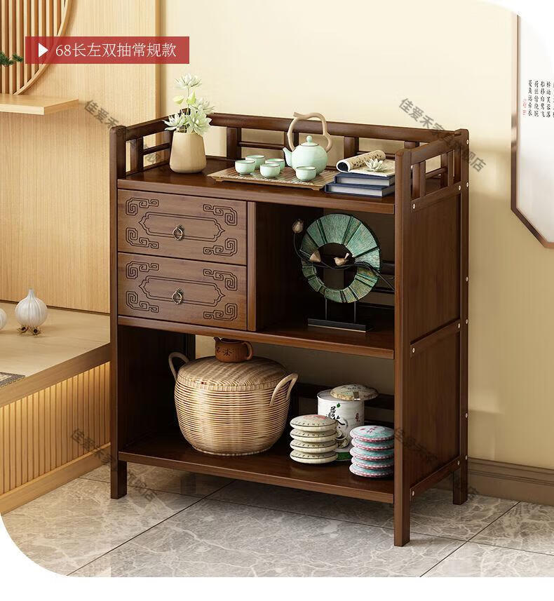 Jiaaihe solid wood small Bogu rack tea cabinet multi-functional tea set tea storage cabinet side cabinet small storage shelf four layers upgraded right drawer with door