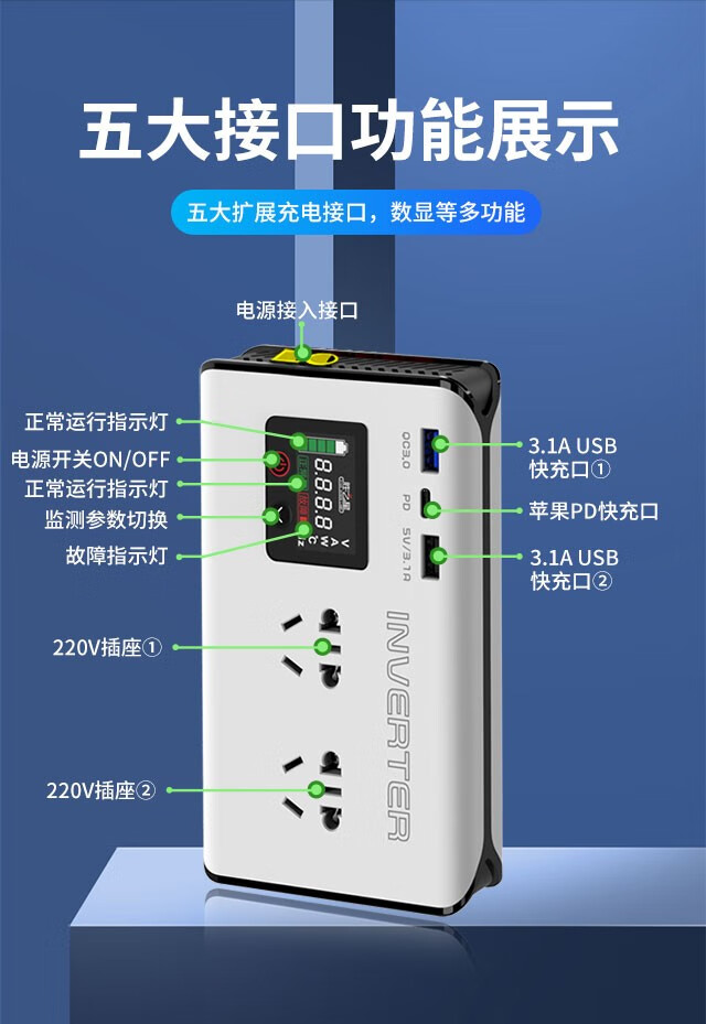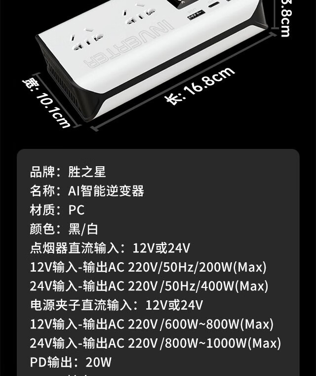 Victory Star 1000w car inverter 12v24v to 220v converter high-power car power multi-function socket 12V dedicated 800W standard + connecting cable