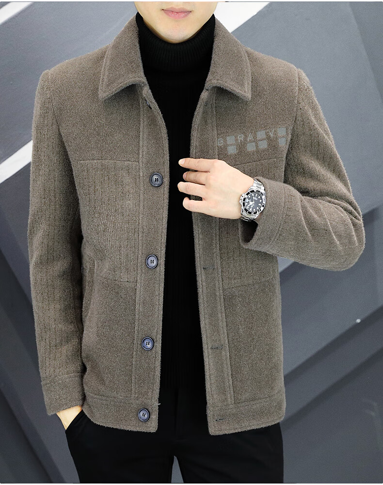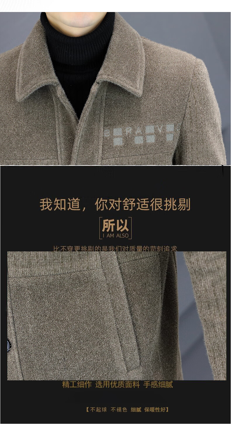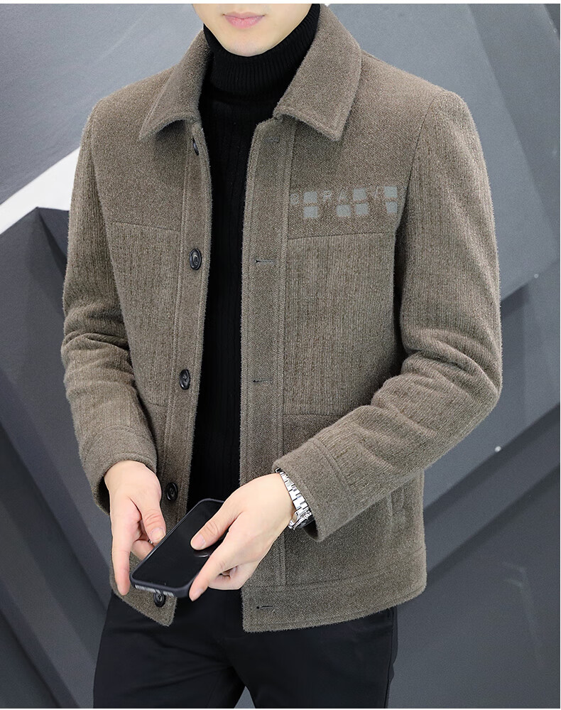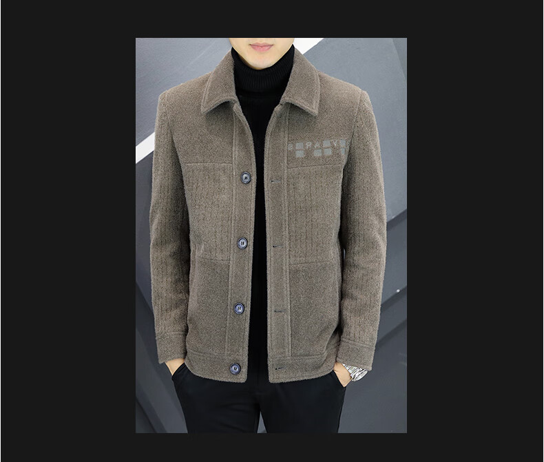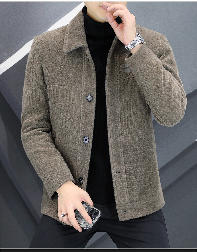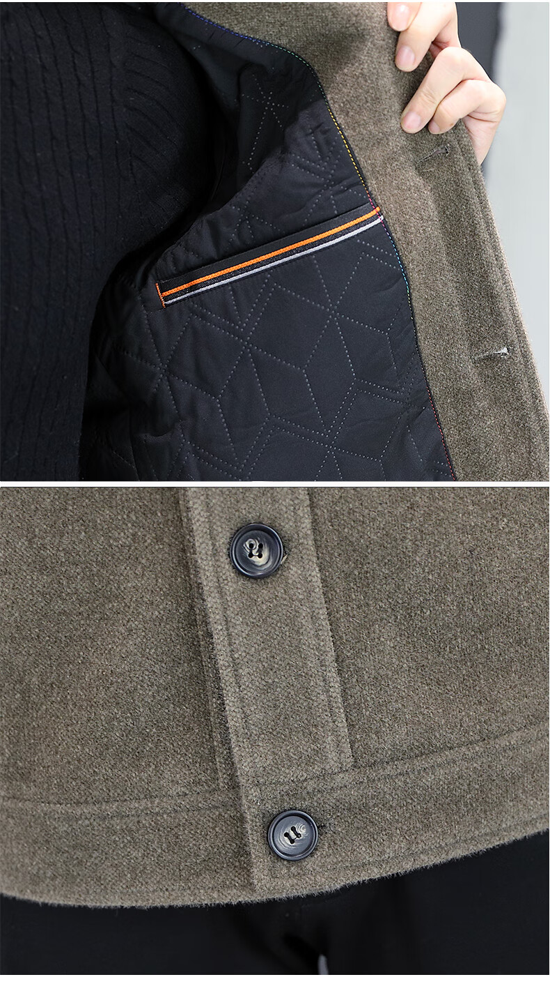 Pierre Cardin Men's Short Warm Woolen Jacket 2025 Autumn and Winter Woolen Jacket Casual Men's Thickened Jacket Gray 2XL /135-145Jin Jin equals 0.5 kg