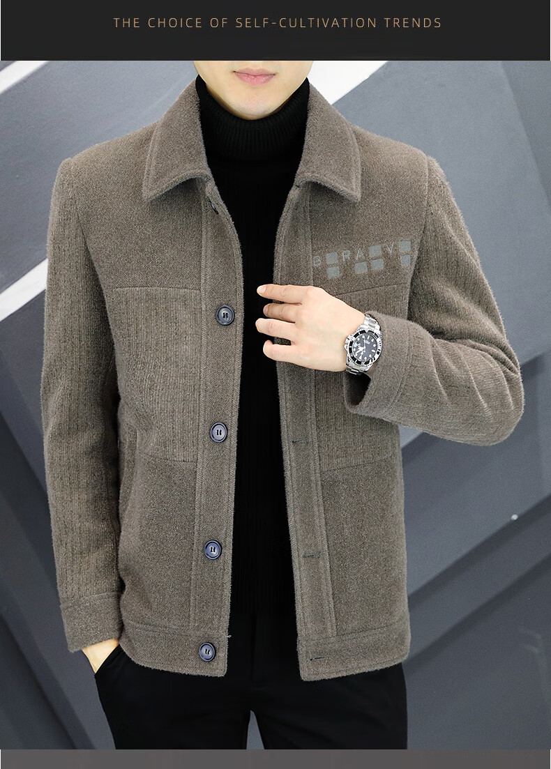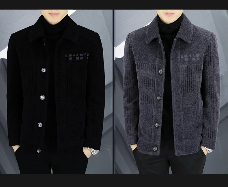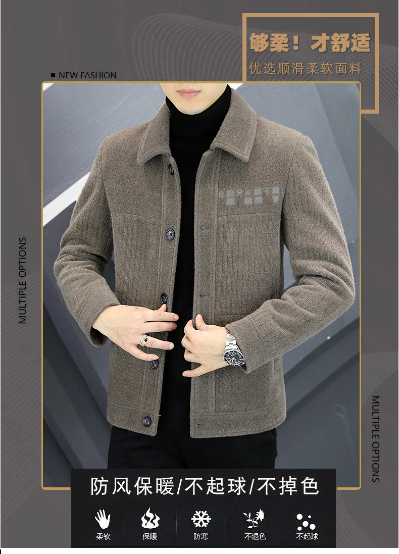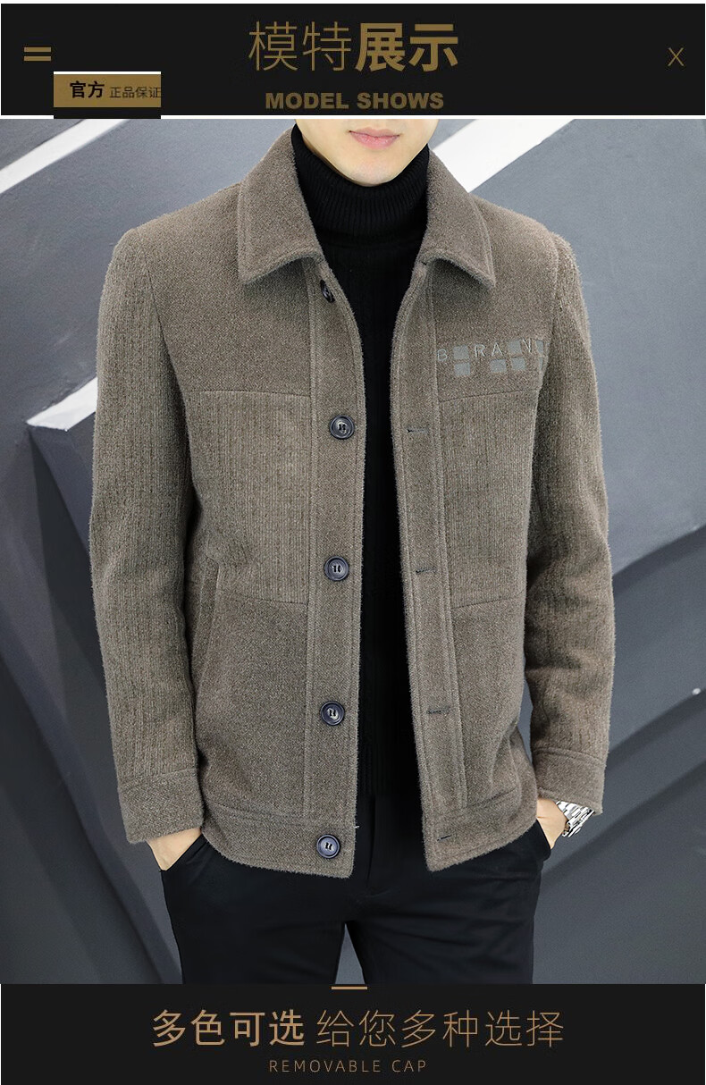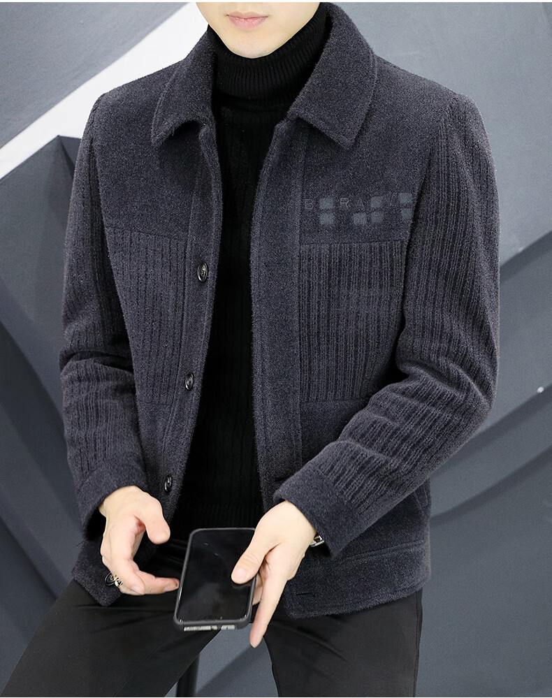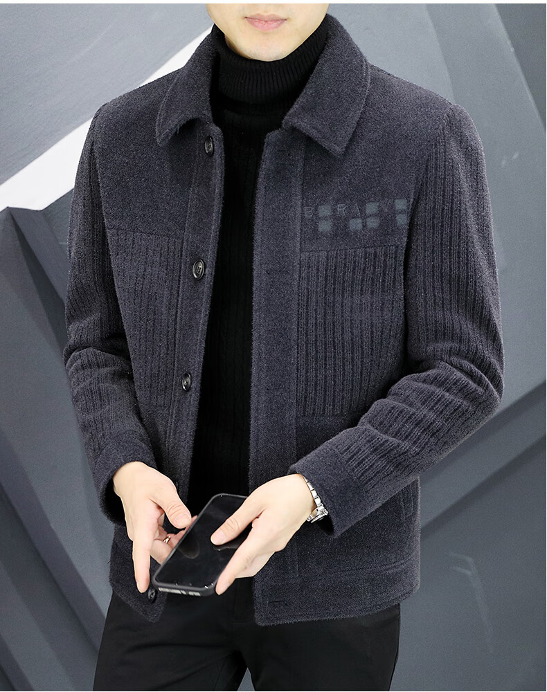 Pierre Cardin Men's Short Warm Woolen Jacket 2025 Autumn and Winter Woolen Jacket Casual Men's Thickened Jacket Gray 2XL /135-145Jin Jin equals 0.5 kg