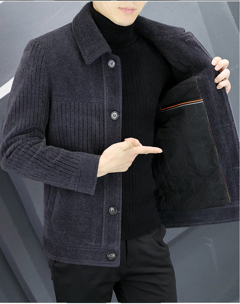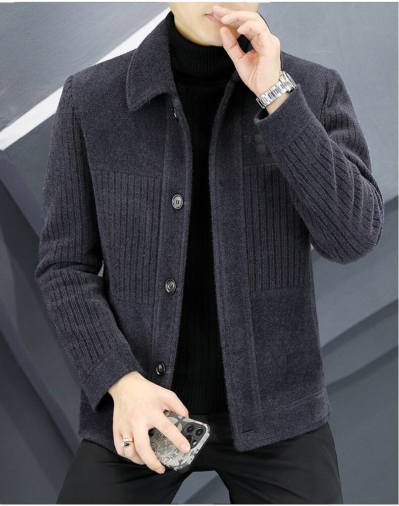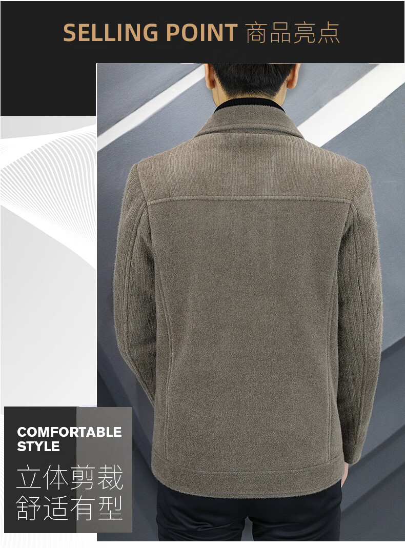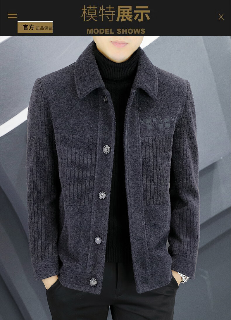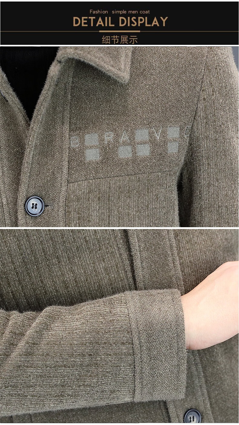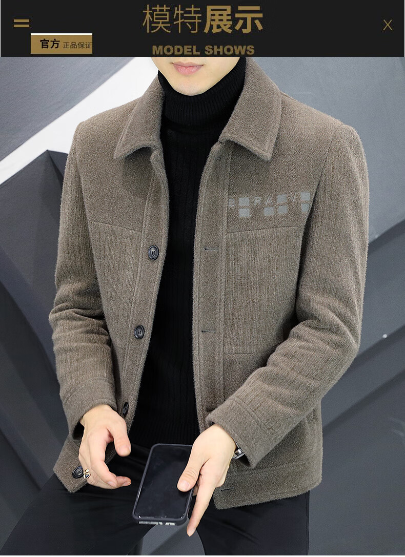 Pierre Cardin Men's Short Warm Woolen Jacket 2025 Autumn and Winter Woolen Jacket Casual Men's Thickened Jacket Gray 2XL /135-145Jin Jin equals 0.5 kg