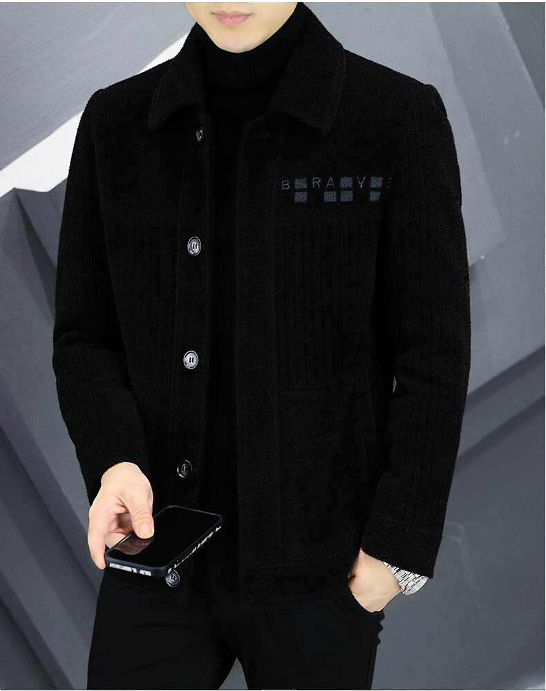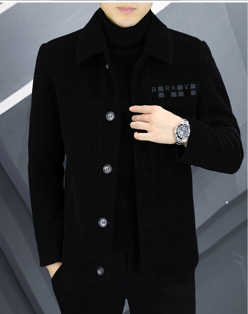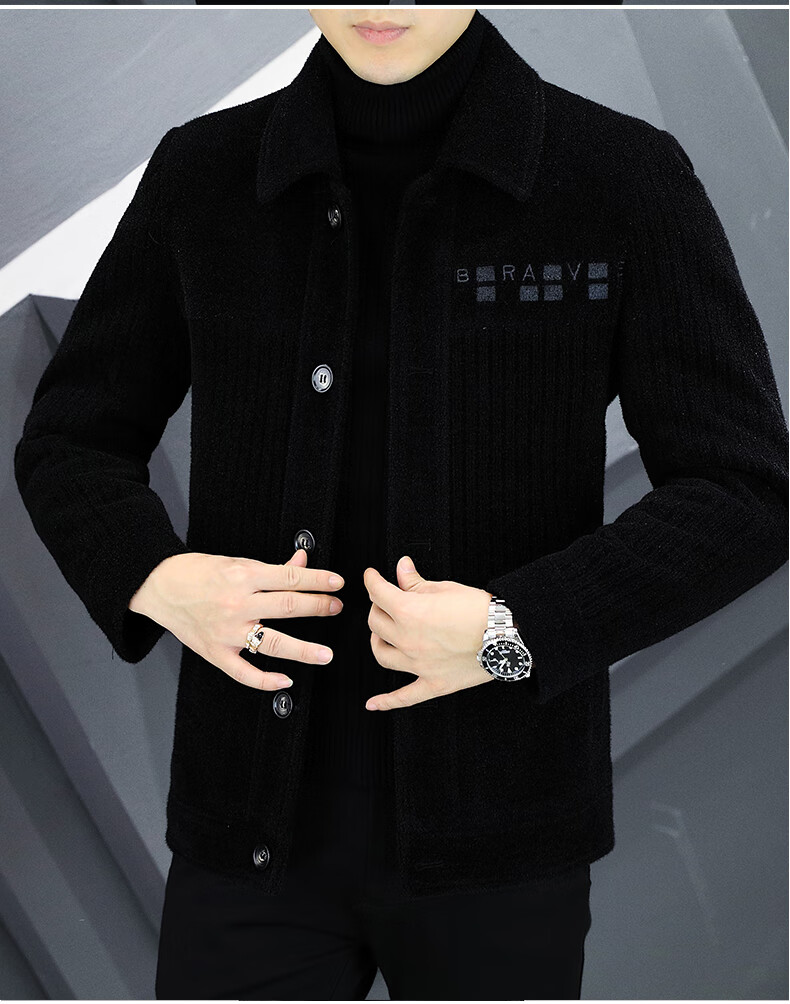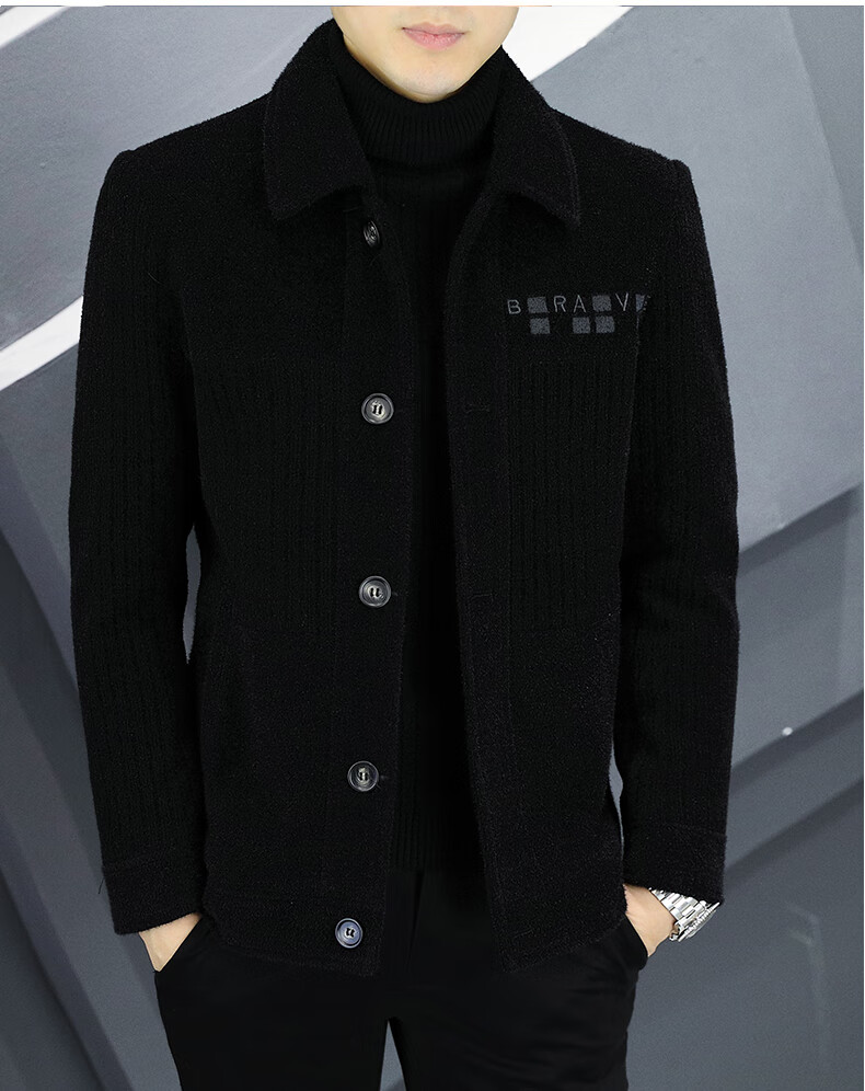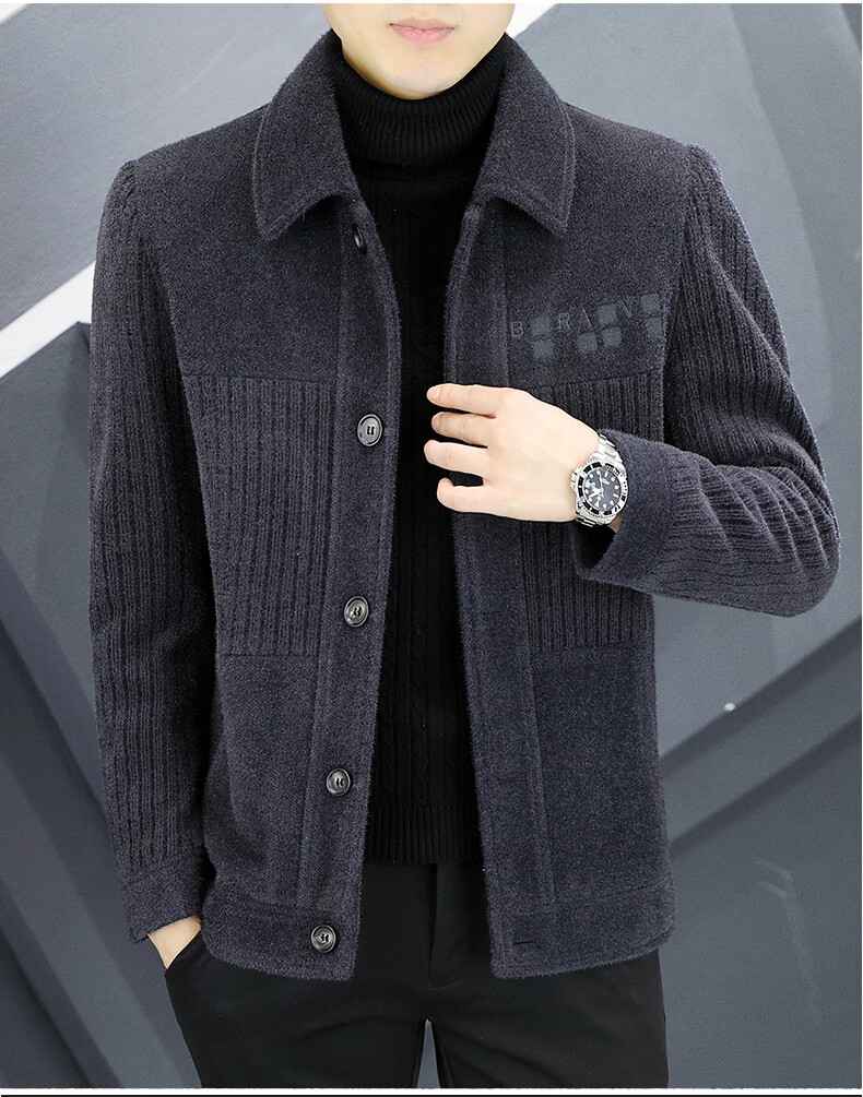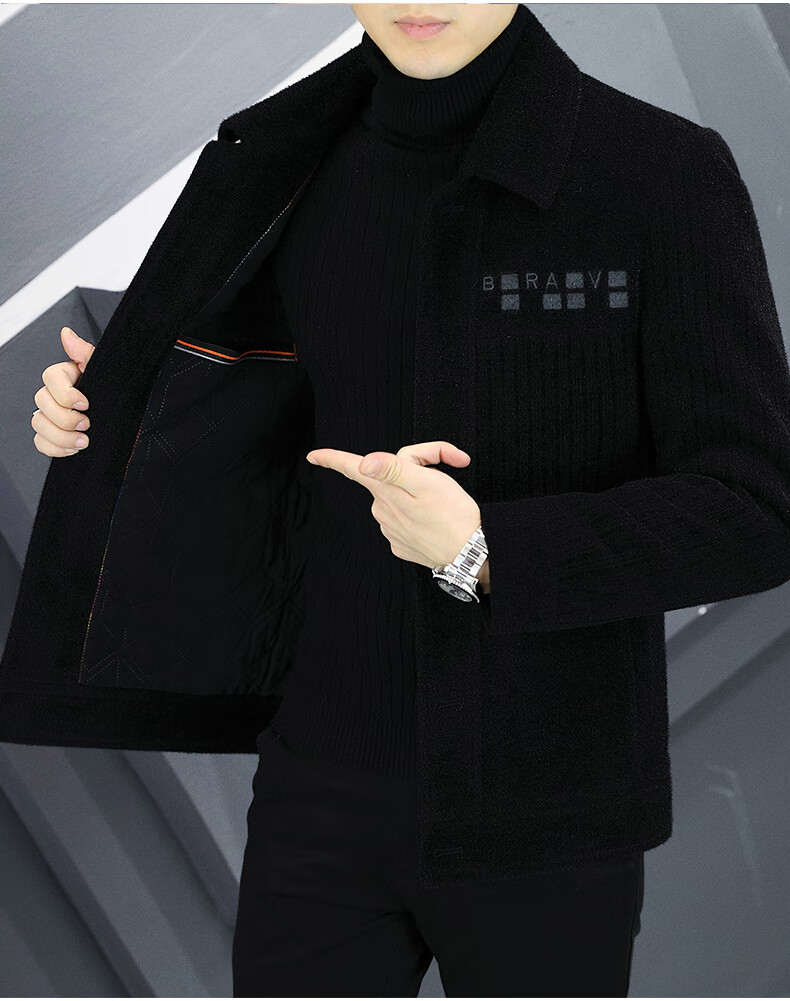 Pierre Cardin Men's Short Warm Woolen Jacket 2025 Autumn and Winter Woolen Jacket Casual Men's Thickened Jacket Gray 2XL /135-145Jin Jin equals 0.5 kg