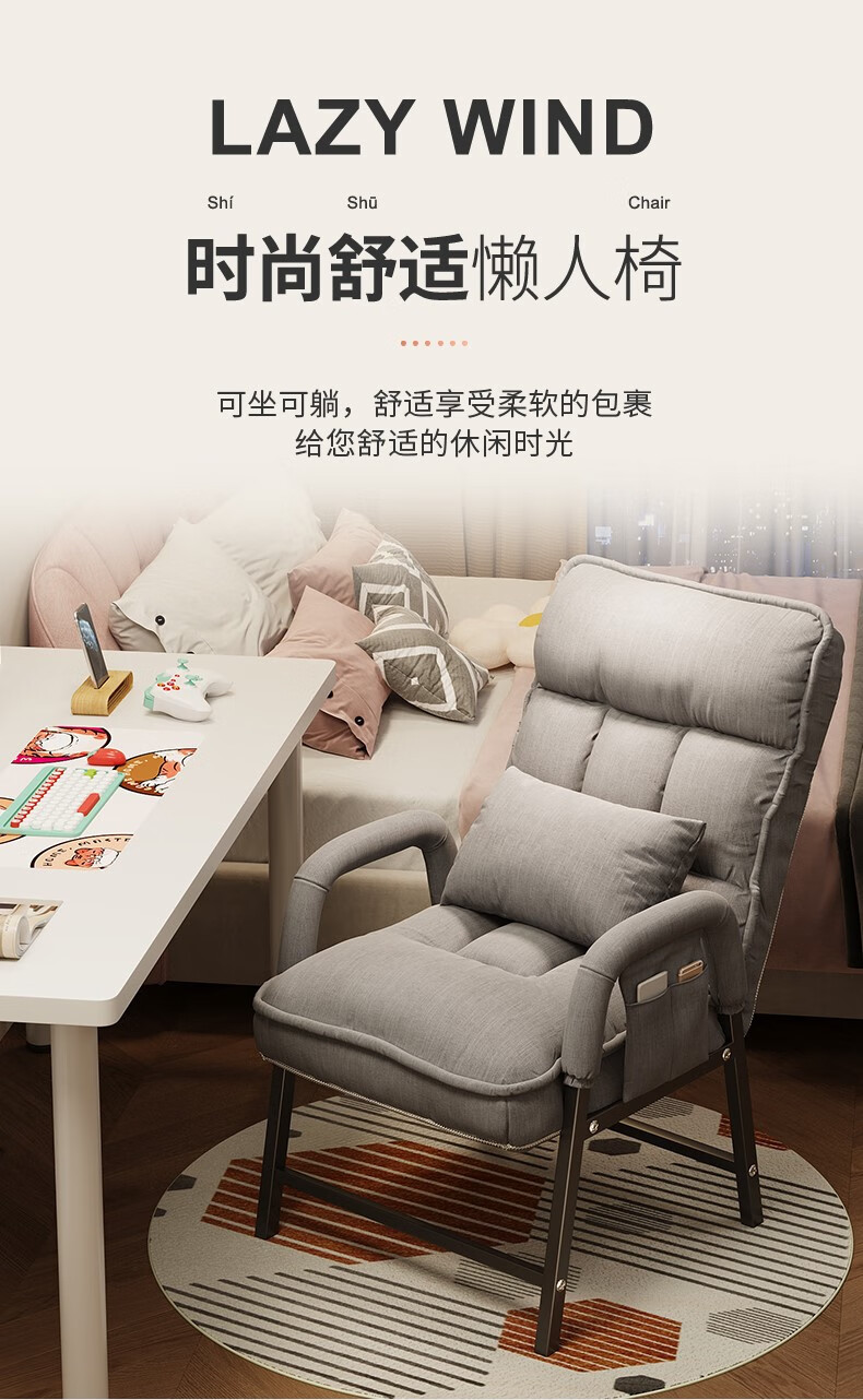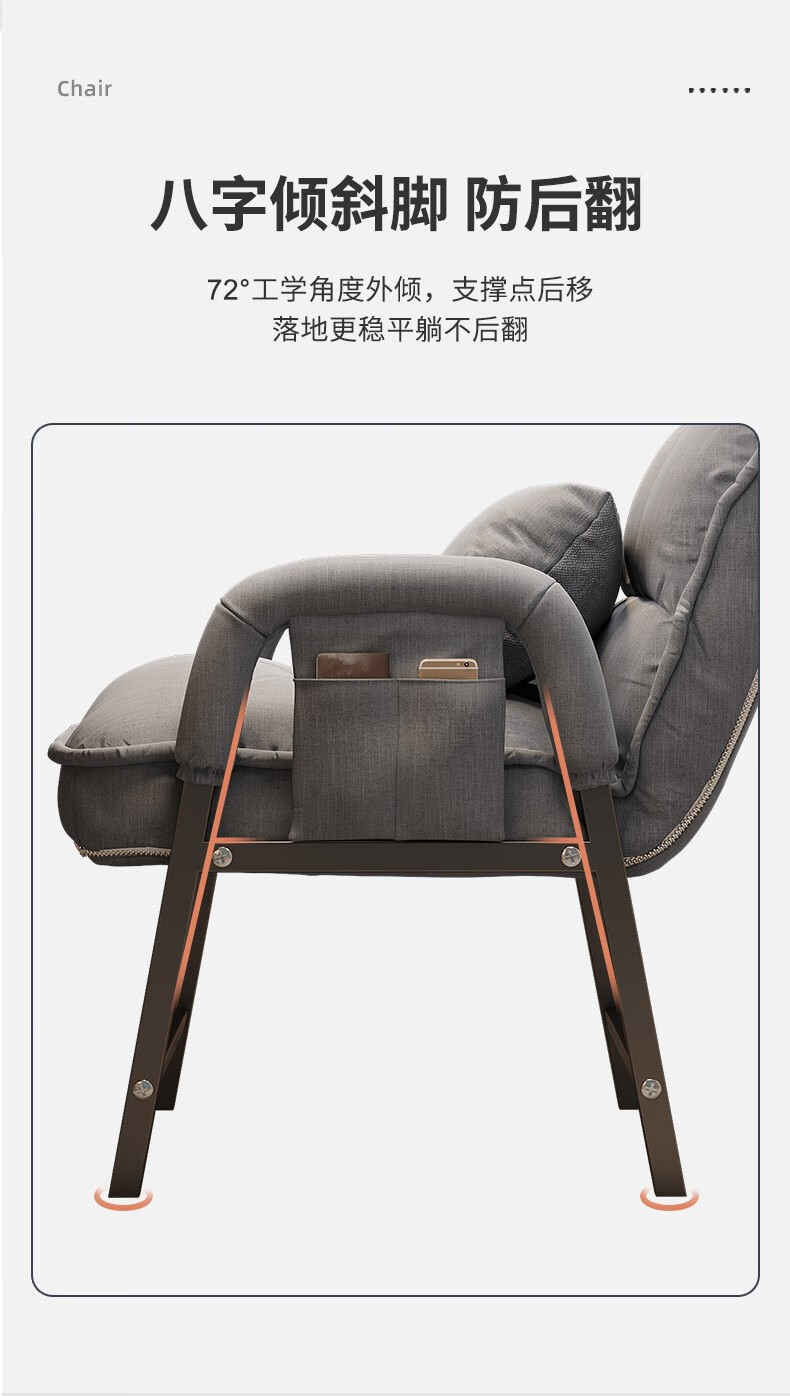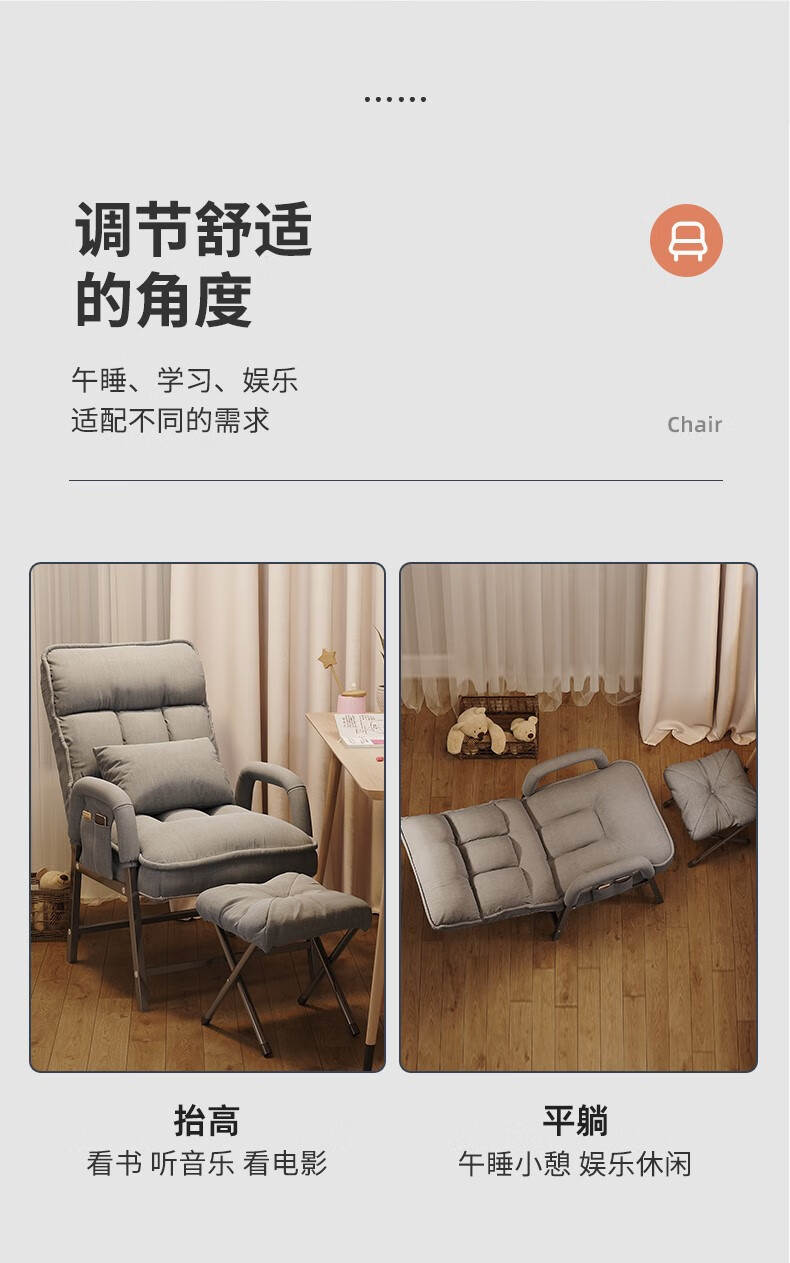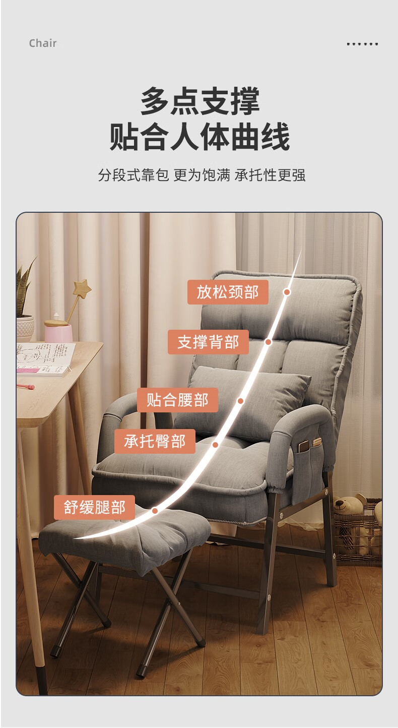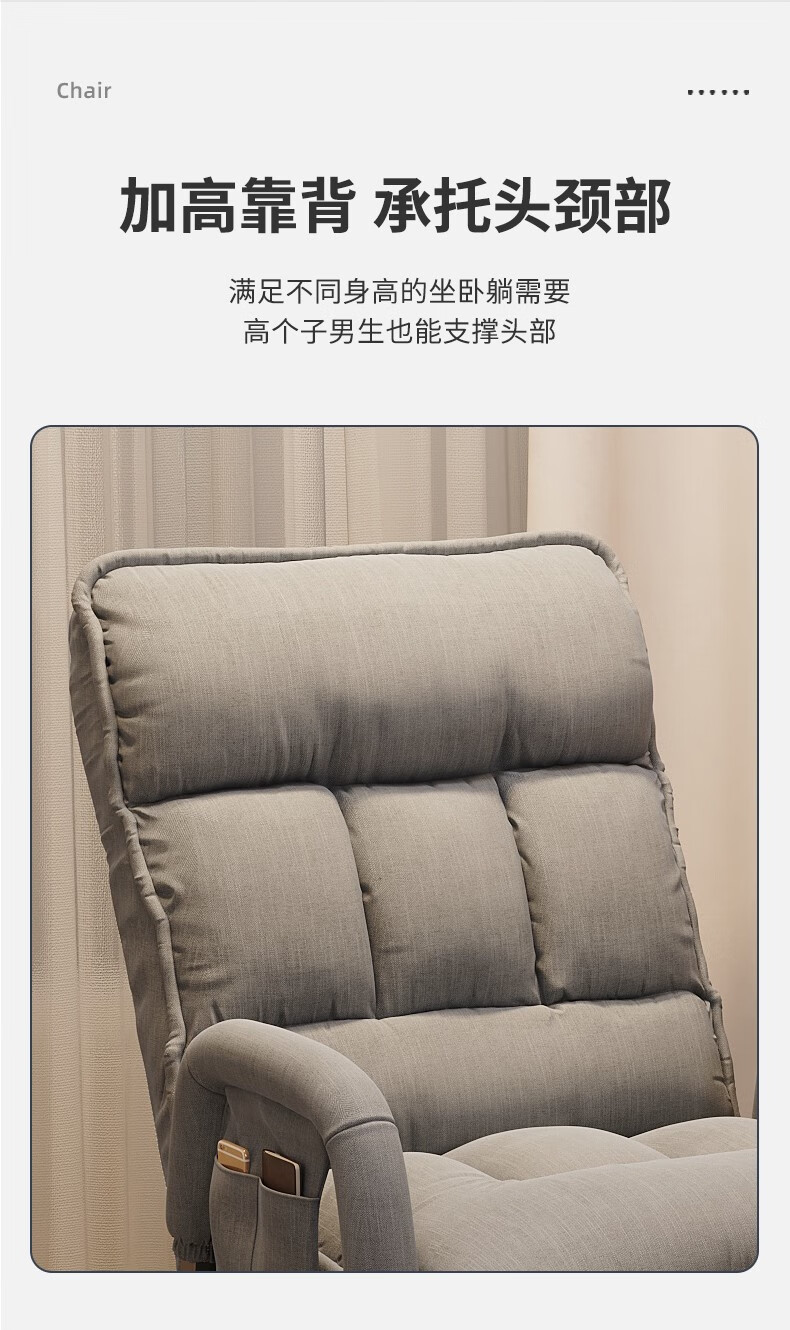 Computer chair, home comfortable backrest, lazy sofa, folding recliner, study room, office chair, dormitory, leisure e-sports chair, upgraded thickening and lengthened backrest, khaki color - waist support and neck protection