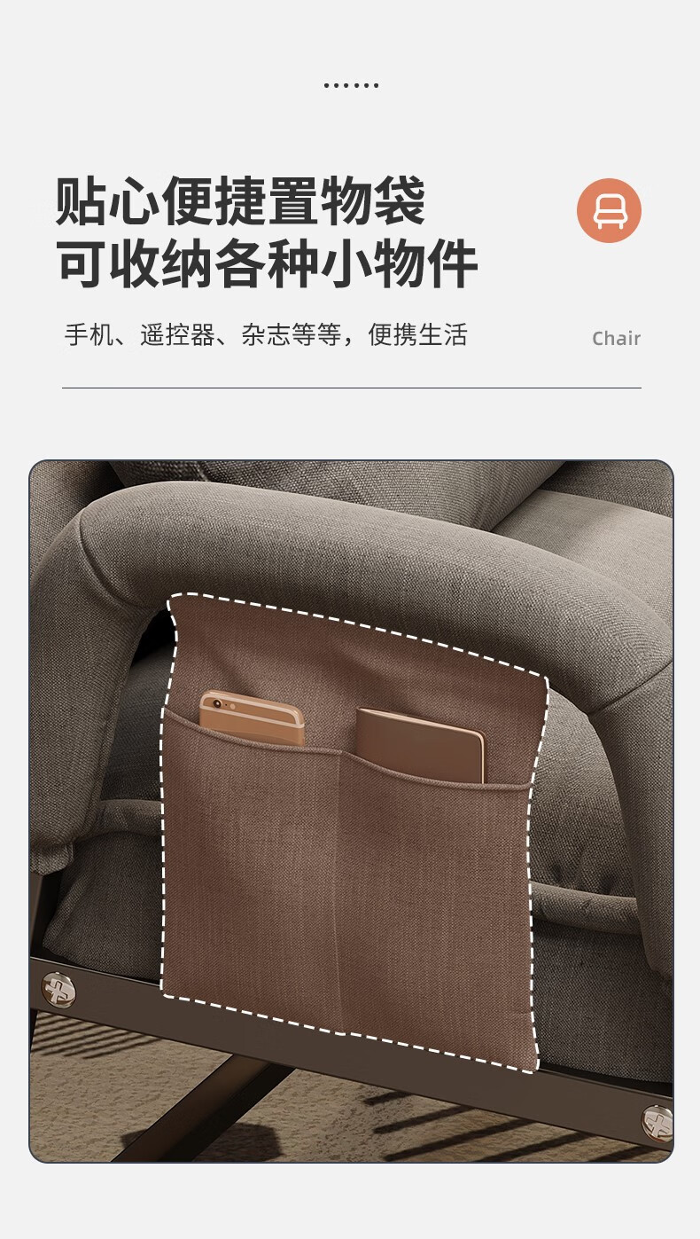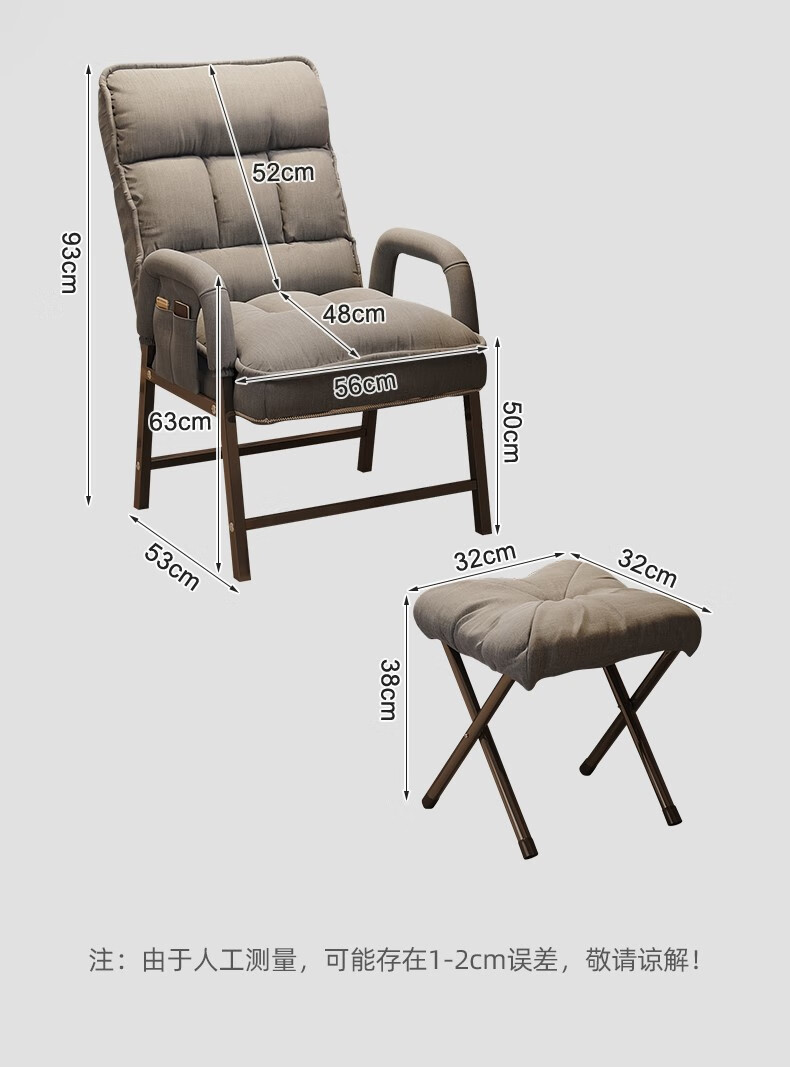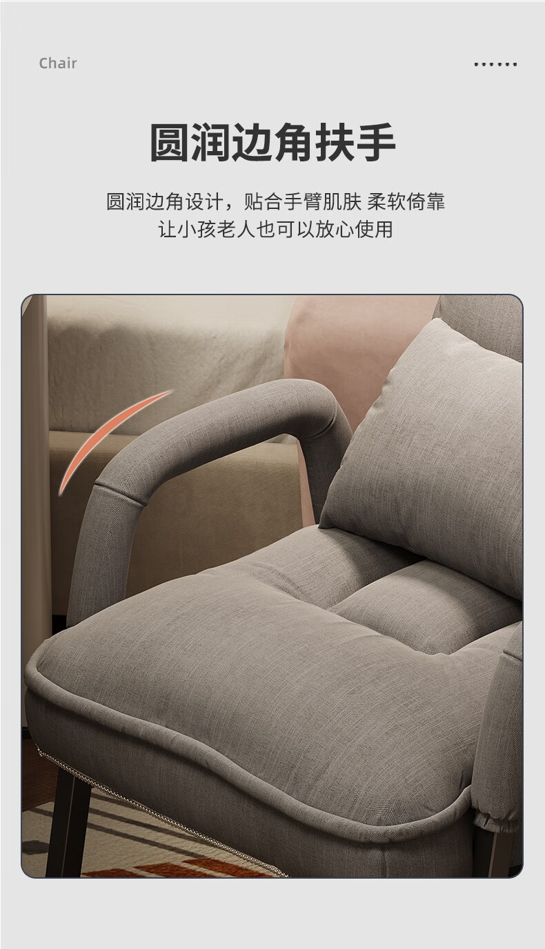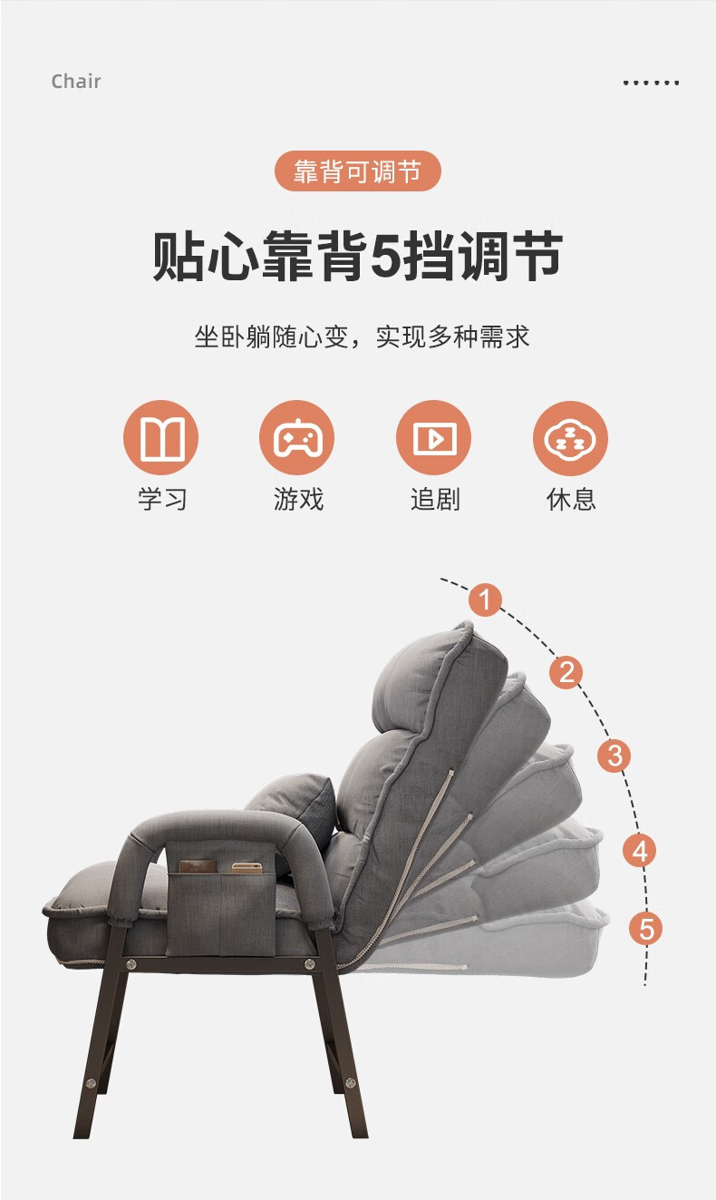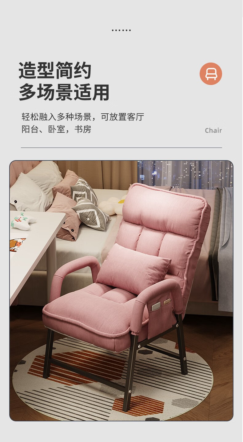 Computer chair, home comfortable backrest, lazy sofa, folding recliner, study room, office chair, dormitory, leisure e-sports chair, upgraded thickening and lengthened backrest, khaki color - waist support and neck protection