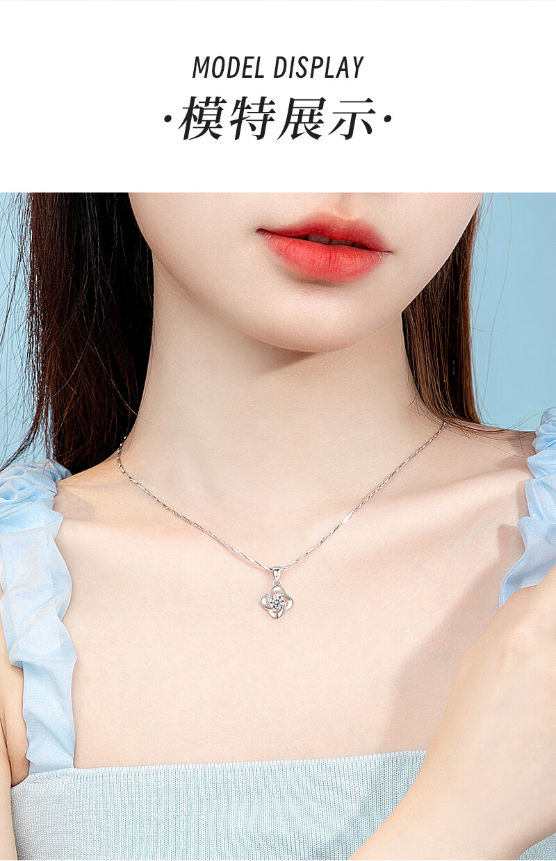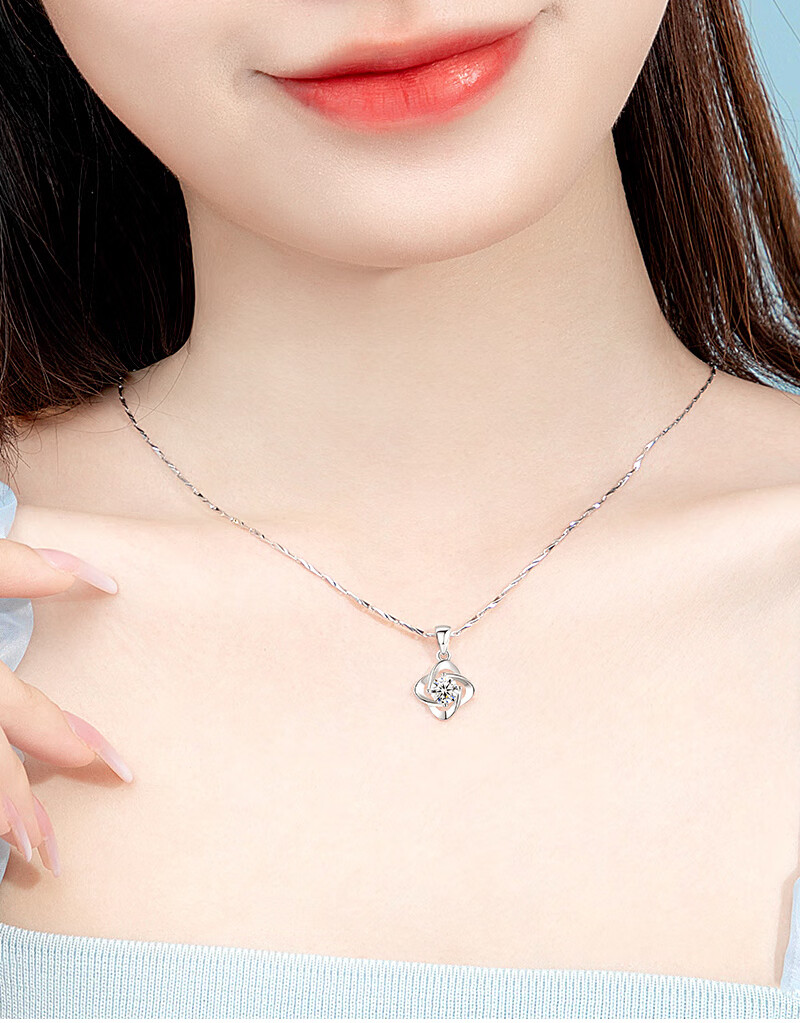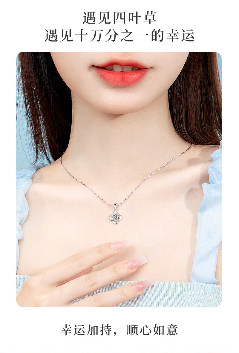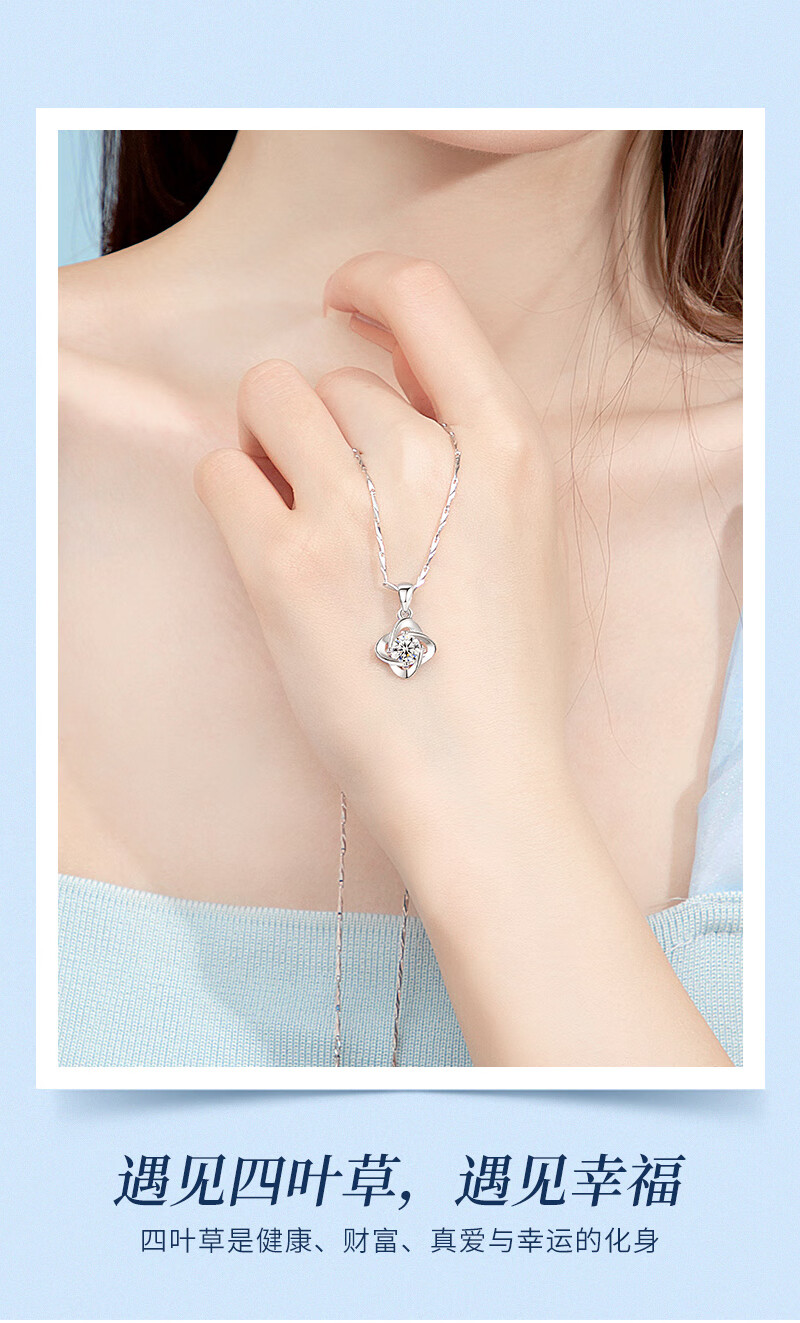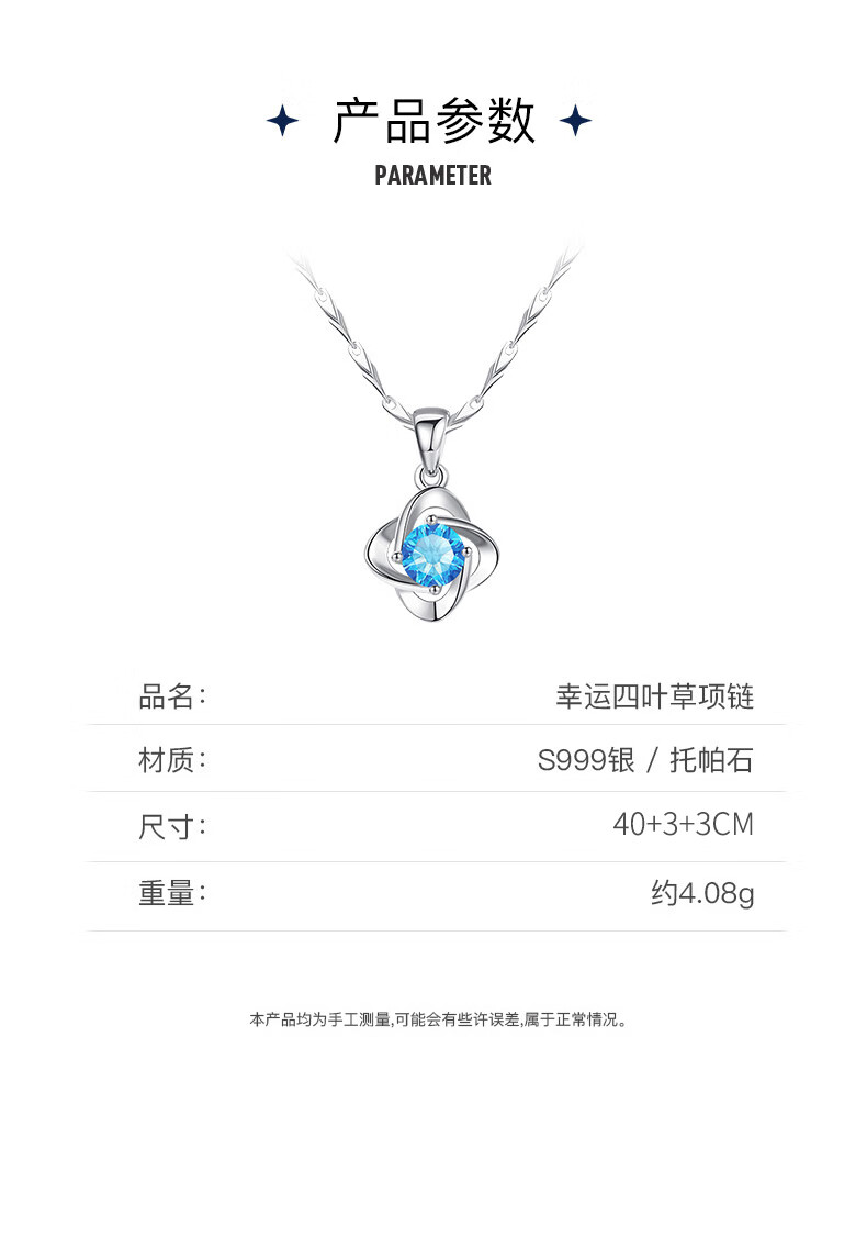 AHK light luxury 999 pure silver necklace women's four-leaf clover pendant clavicle chain anniversary birthday gift for girlfriend and wife blue topaz + premium limited gift box