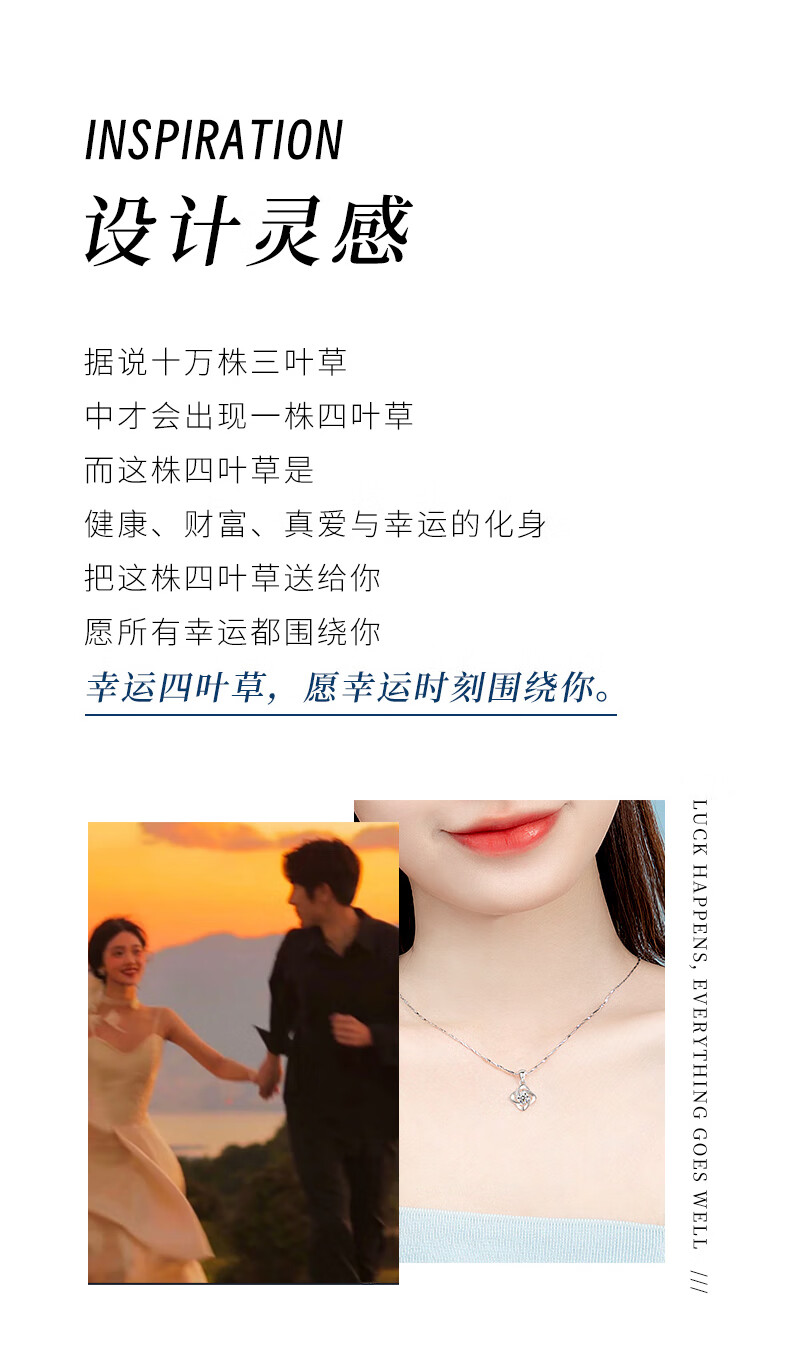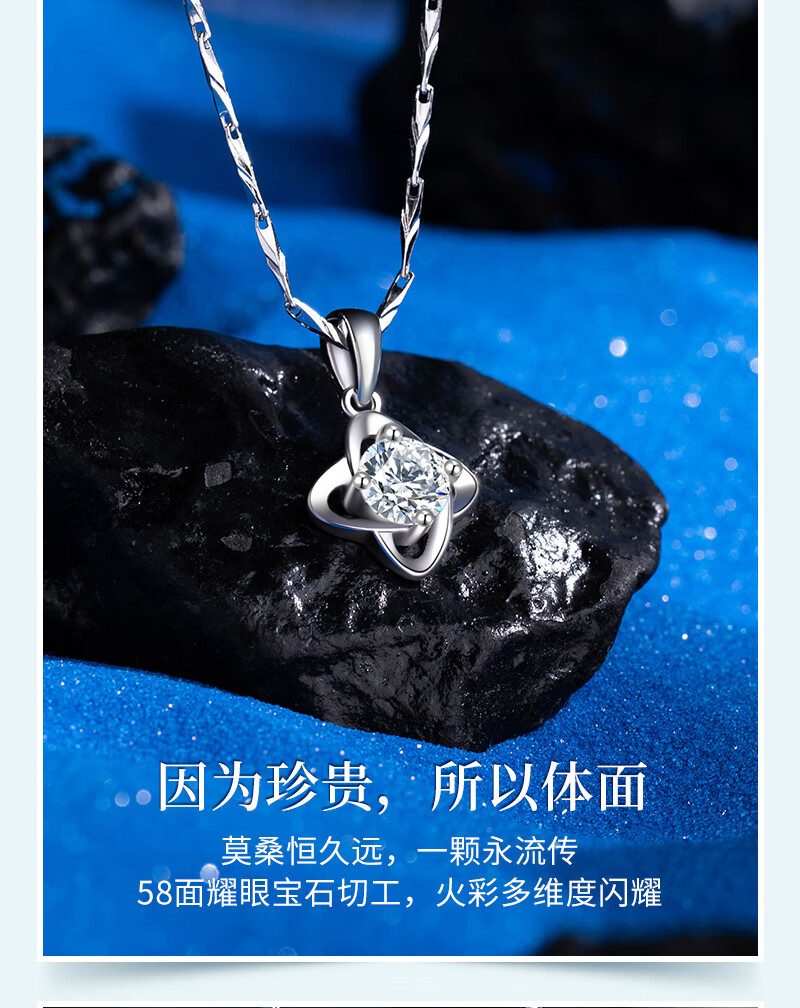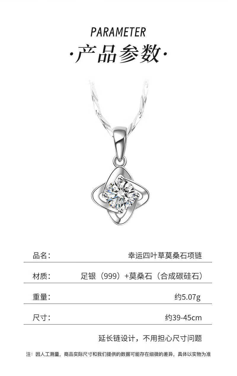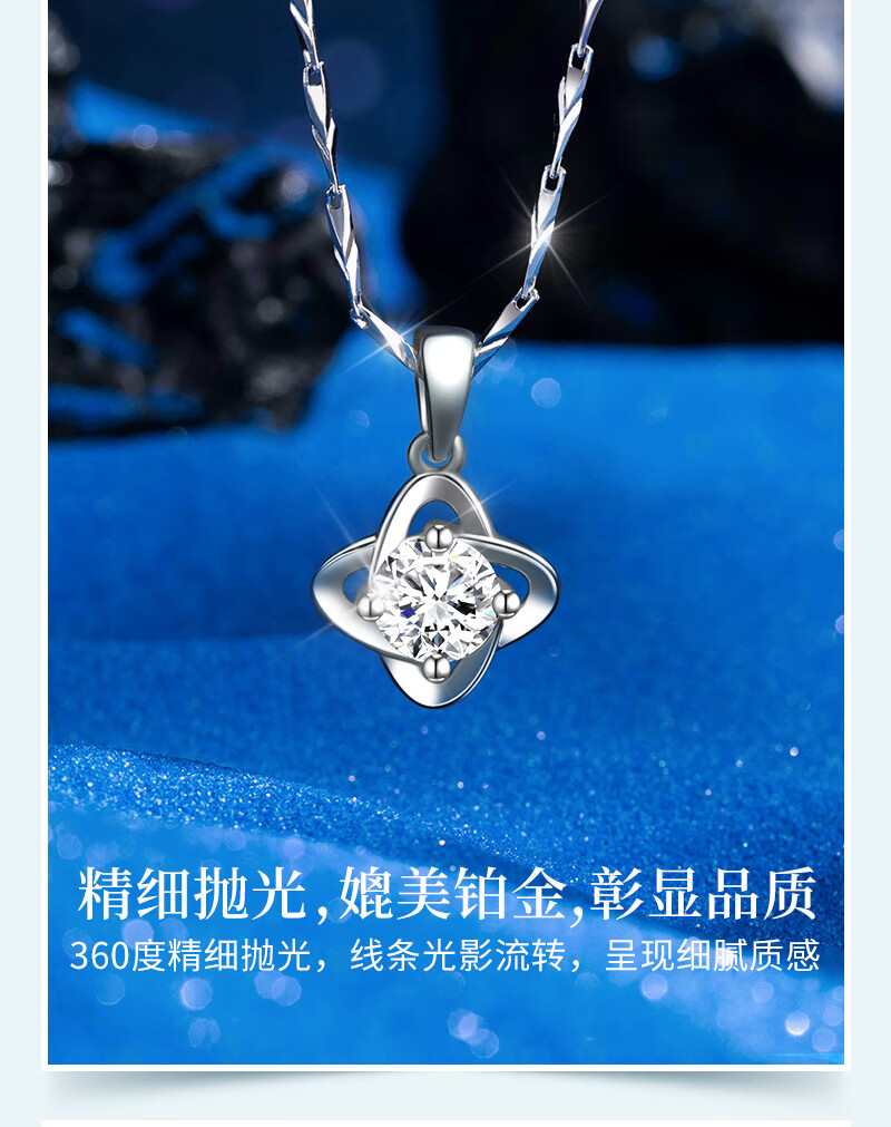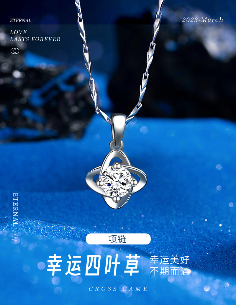 AHK light luxury 999 pure silver necklace women's four-leaf clover pendant clavicle chain anniversary birthday gift for girlfriend and wife blue topaz + premium limited gift box