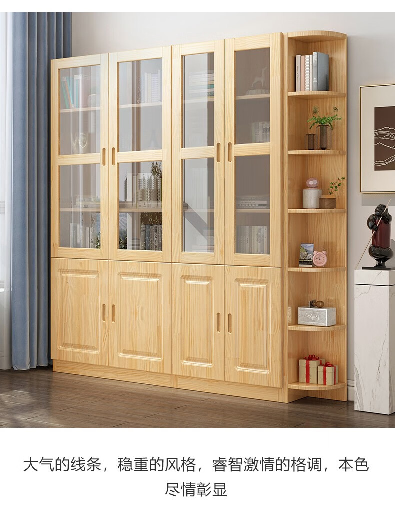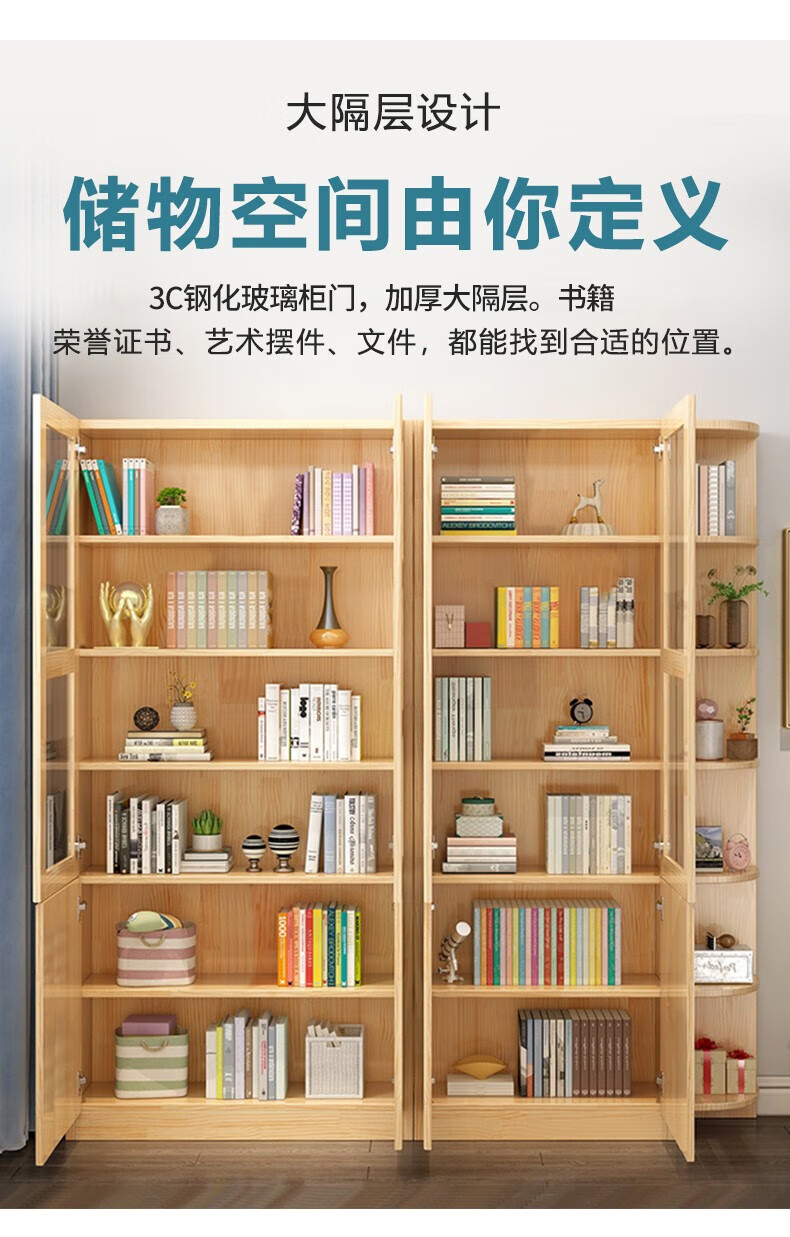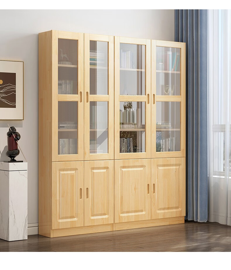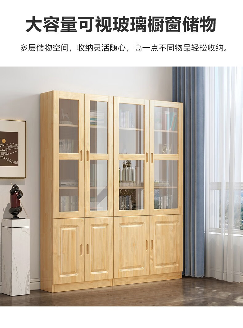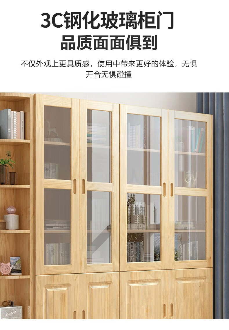 Yuxiang all solid wood bookcase bookshelf floor-standing storage rack living room with glass door storage cabinet combination multi-layer large capacity bookcase with cabinet door A type 80*200*32cm