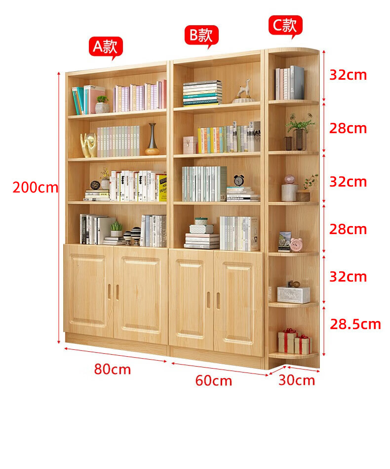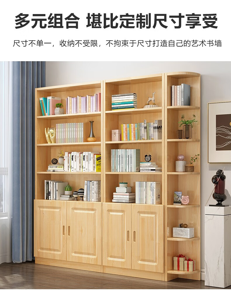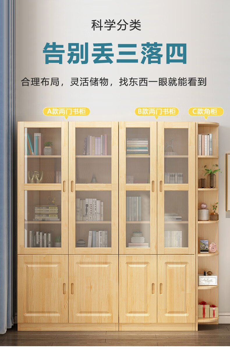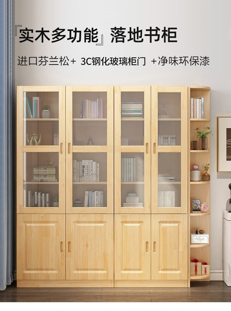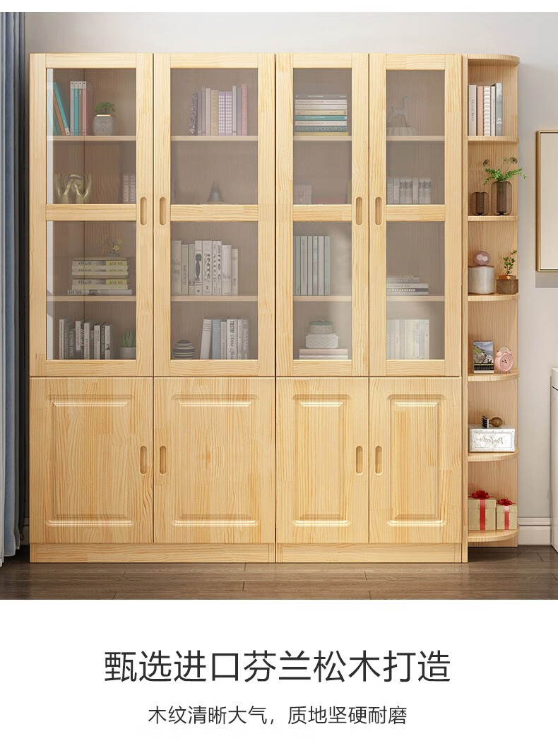 Yuxiang all solid wood bookcase bookshelf floor-standing storage rack living room with glass door storage cabinet combination multi-layer large capacity bookcase with cabinet door A type 80*200*32cm