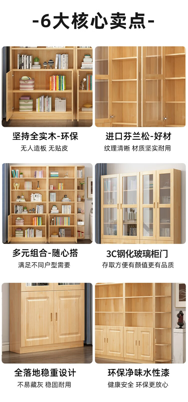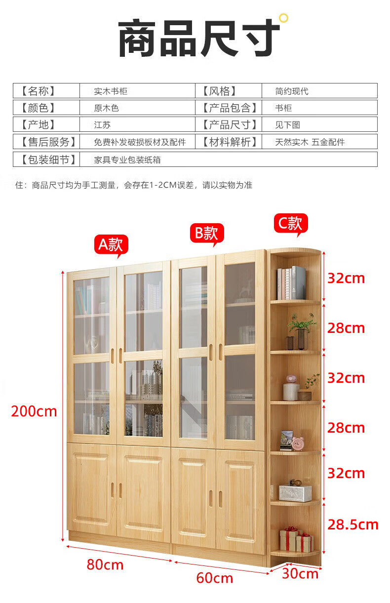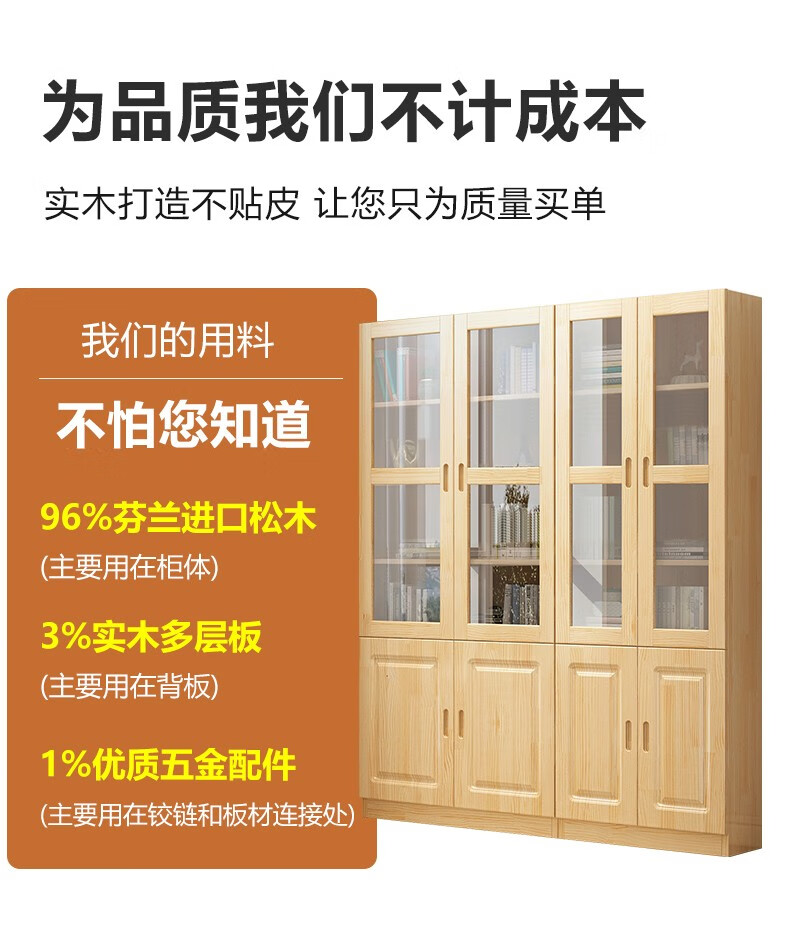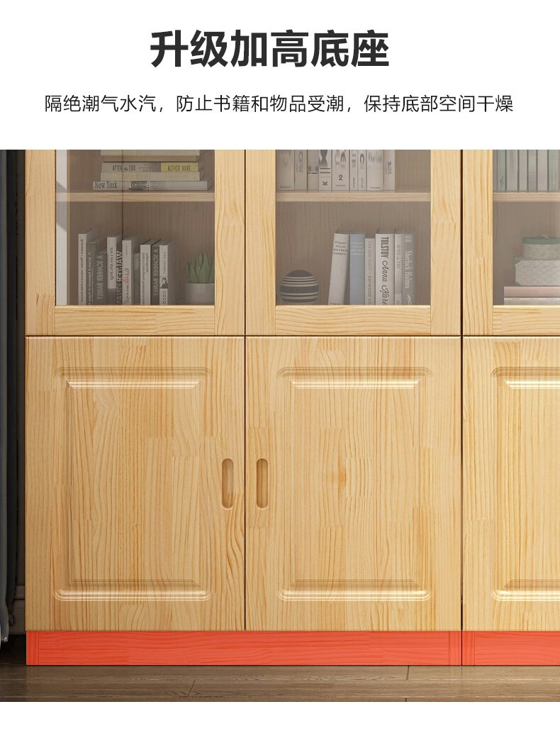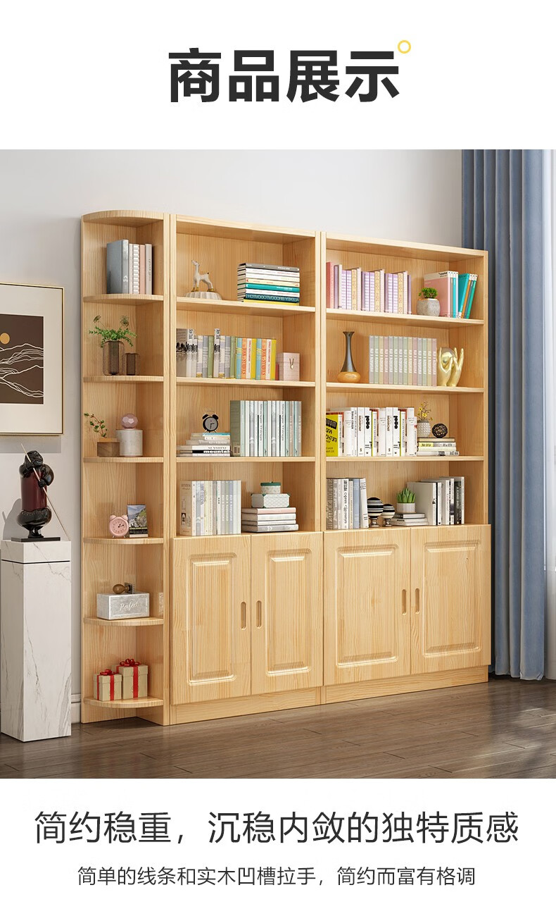 Yuxiang all solid wood bookcase bookshelf floor-standing storage rack living room with glass door storage cabinet combination multi-layer large capacity bookcase with cabinet door A type 80*200*32cm