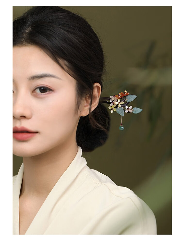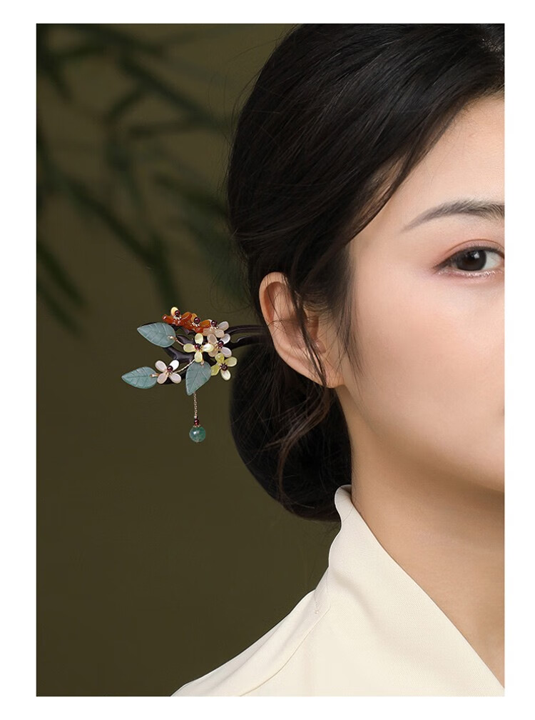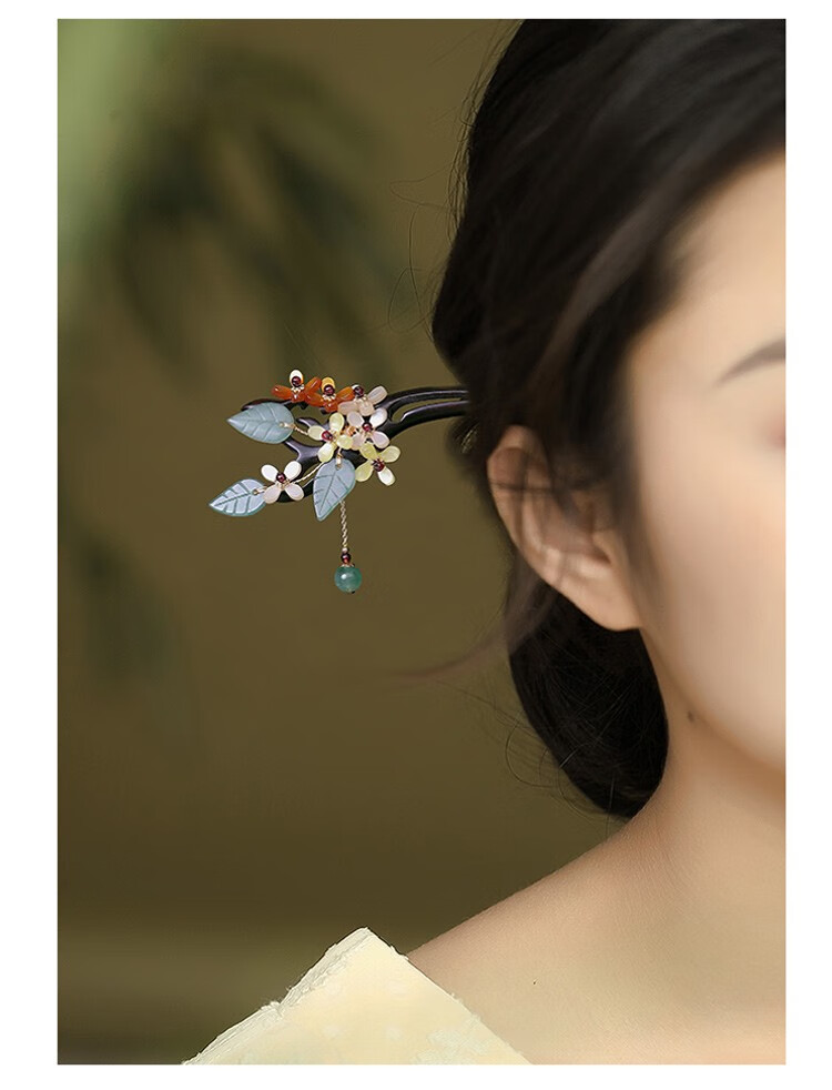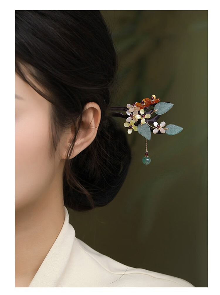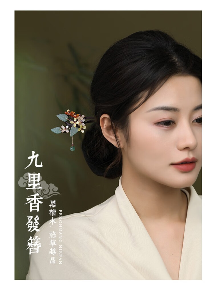 Kamalon Hairpin Women's Ancient Style Black Sandalwood Hairpin Simple Modern High-end Wooden Hairpin Cheongsam Hanfu Headwear Plate Hairpin Shaking Hairpin Jiuli Xiang Hairpin