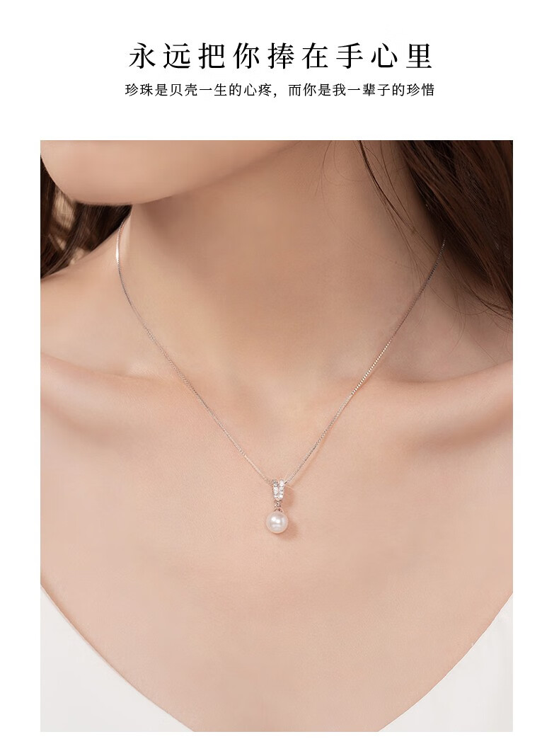 AHK Freshwater Pearl Silver Necklace Women's Young Pendant Mother's Day Birthday Gift for Girlfriend and Wife High Quality Pearl Pearl Necklace