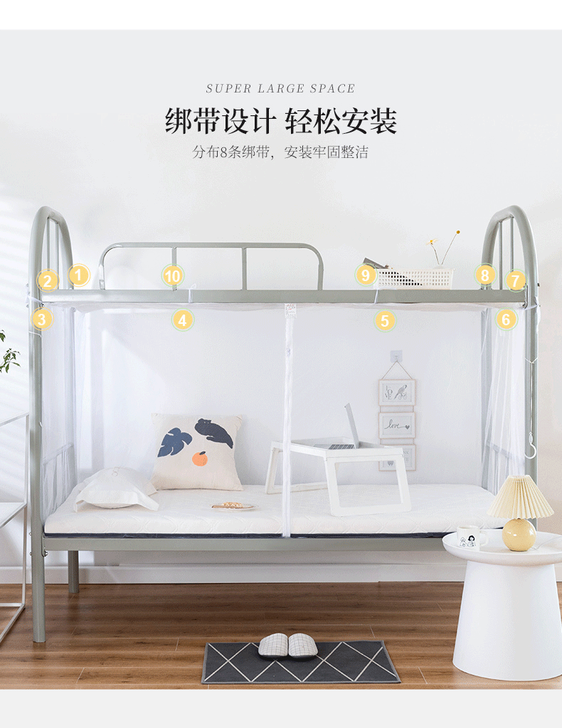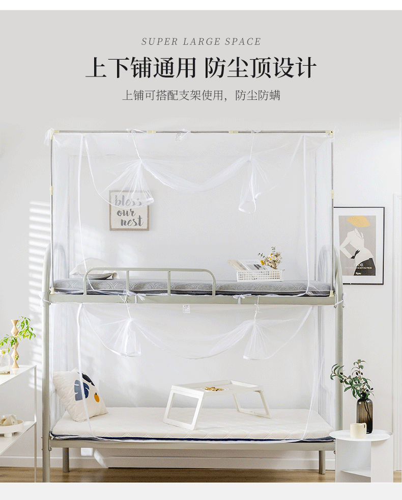 Acacia Tung Mosquito Net for Student Dormitory Single Bed and Lower Bunk Universal Dormitory 1m Household Zipper Type 1.2 Meter Special Zipper Type Dust-proof Top Jindian White 1.2 Width 1.9 Long 1.6 Height