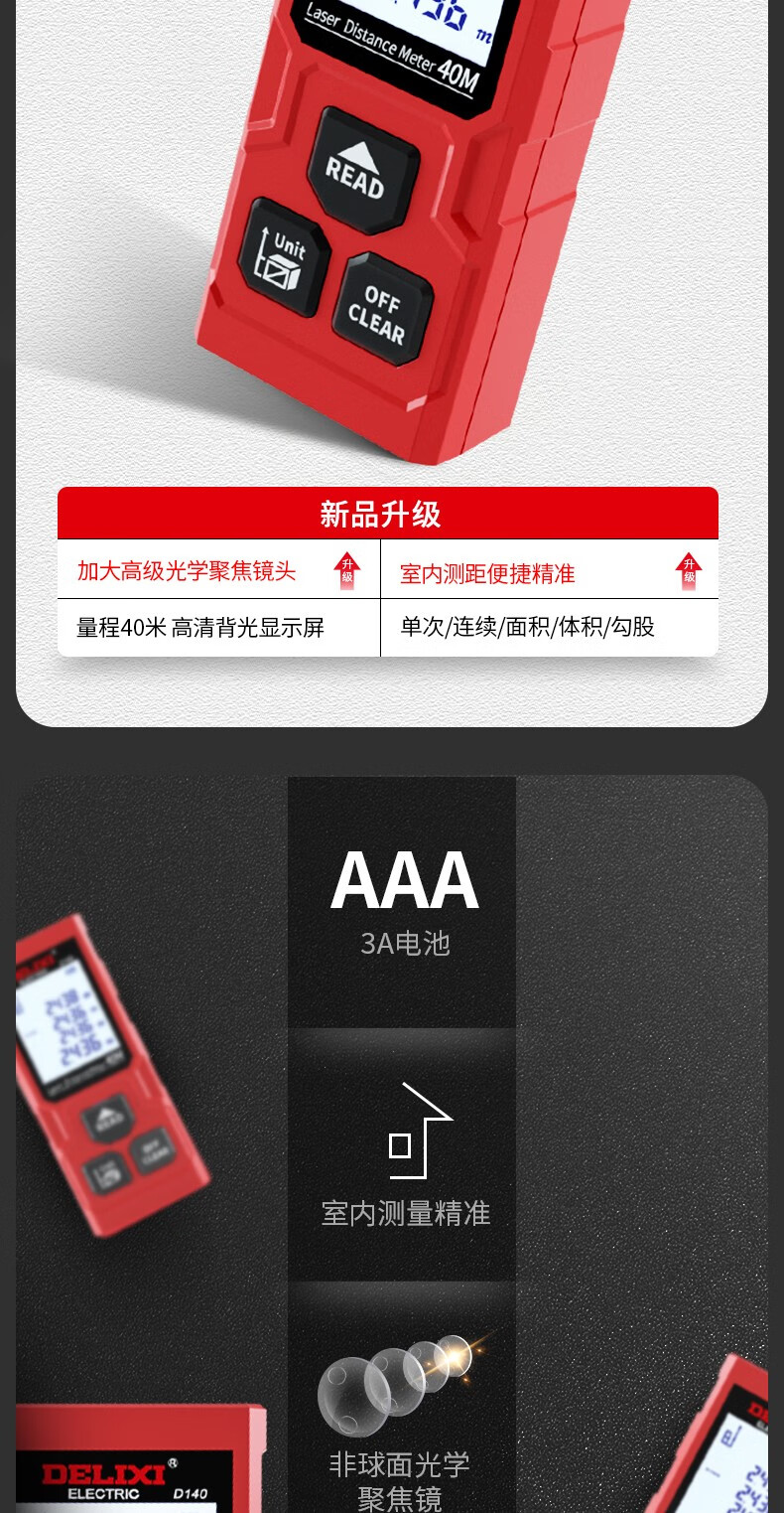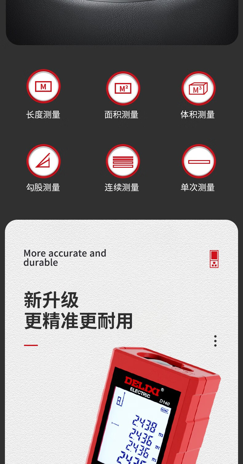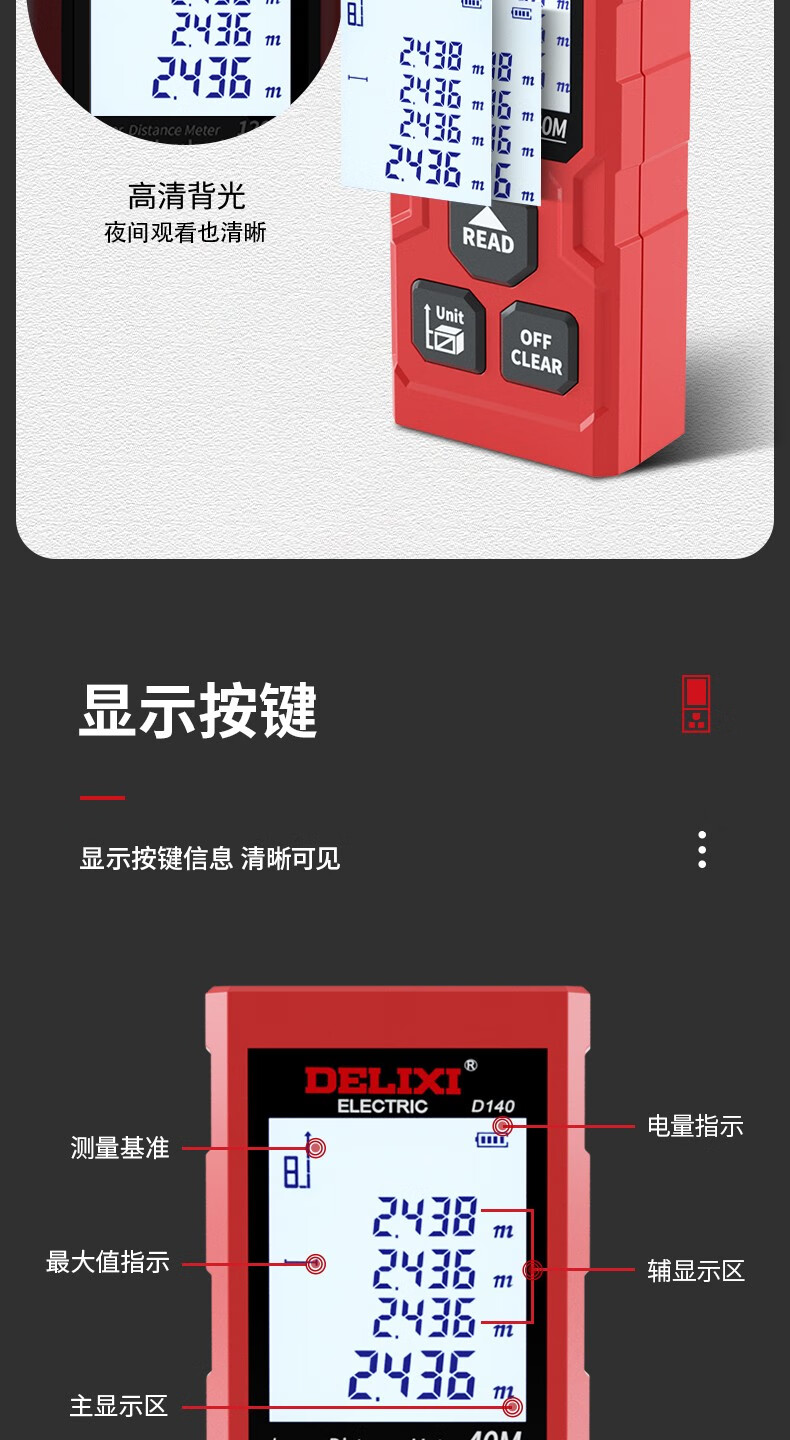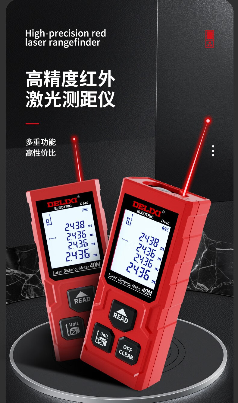 Delixi Electrical Distance Meter Laser Handheld Infrared Measuring Ruler Electronic Ruler High-Precision Household Room Measurement Instrument Laser Ruler 40m Battery Model (Economic Model Without Water Bubble)
