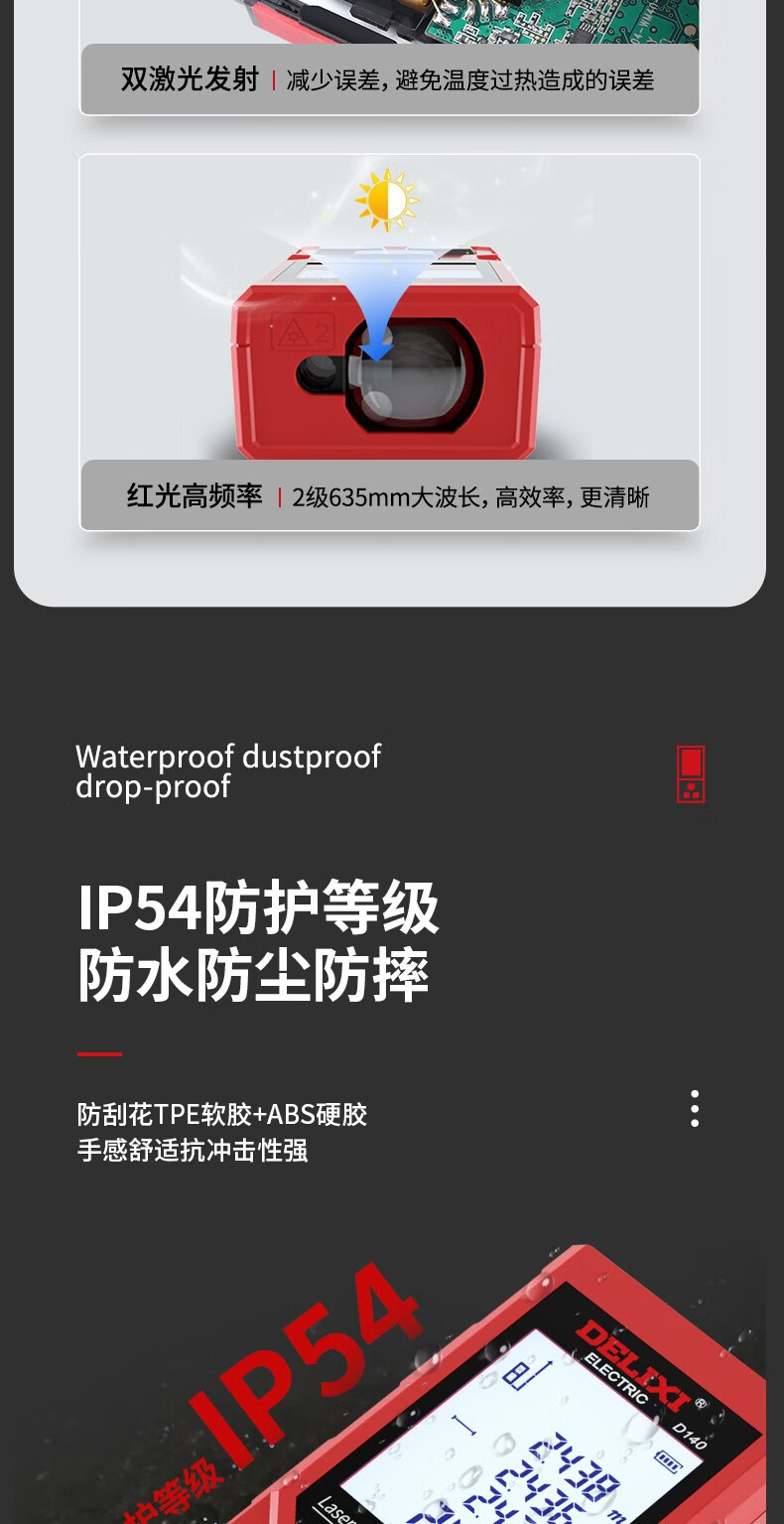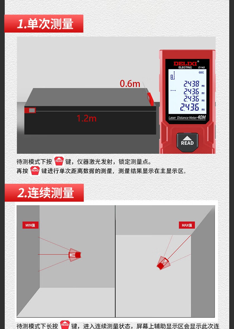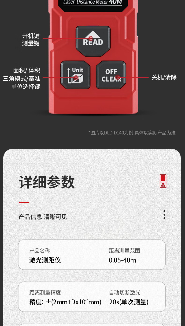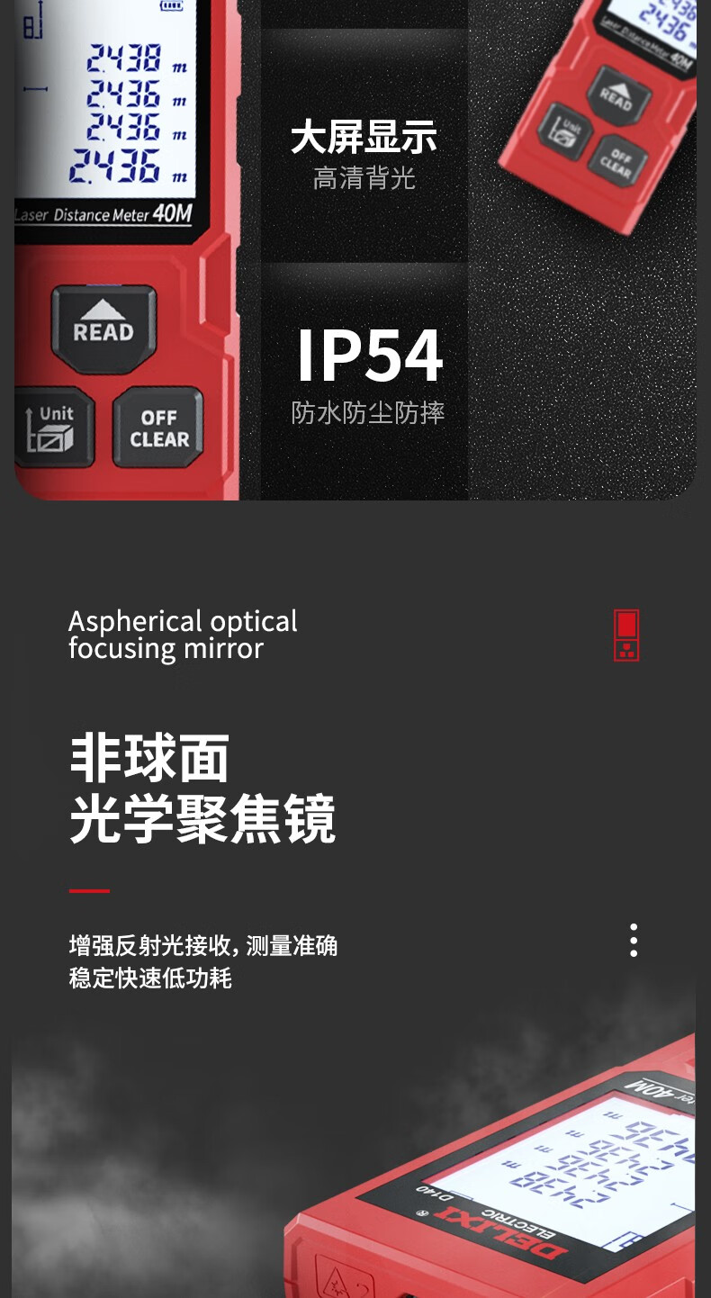 Delixi Electrical Distance Meter Laser Handheld Infrared Measuring Ruler Electronic Ruler High-Precision Household Room Measurement Instrument Laser Ruler 40m Battery Model (Economic Model Without Water Bubble)