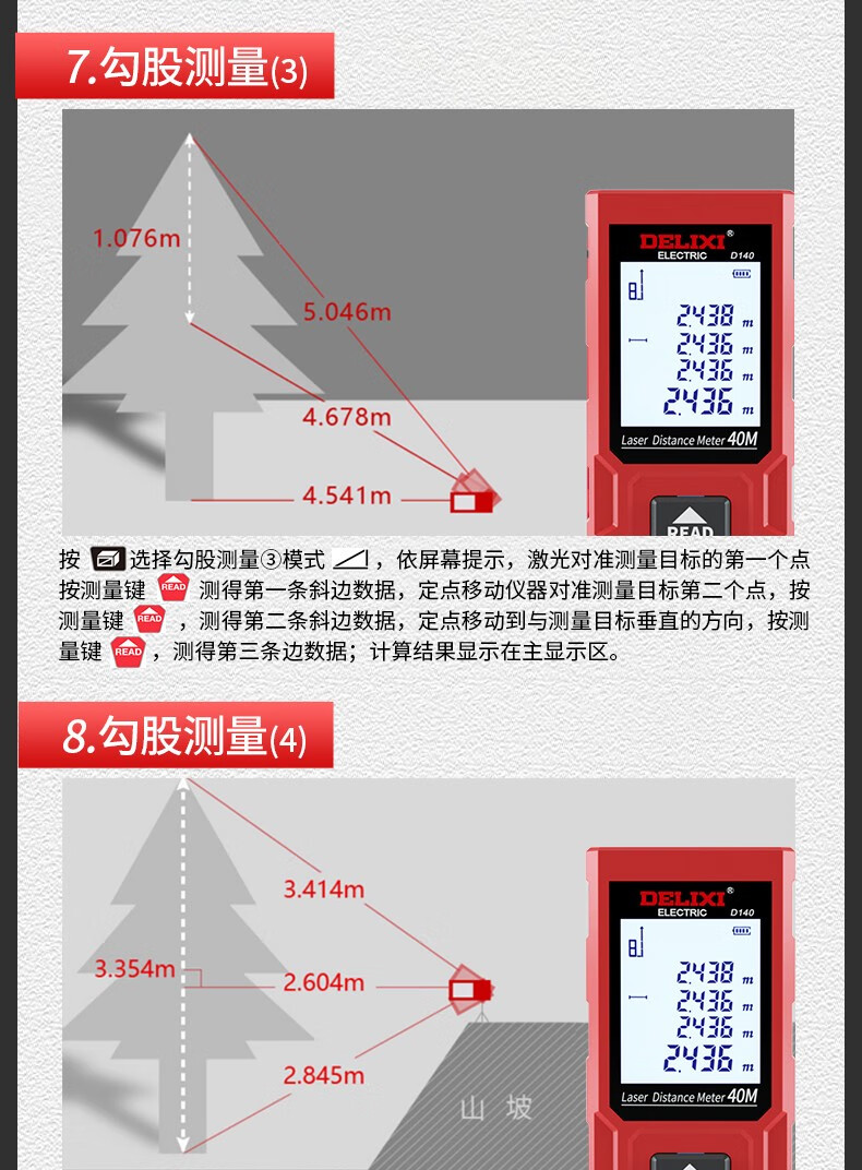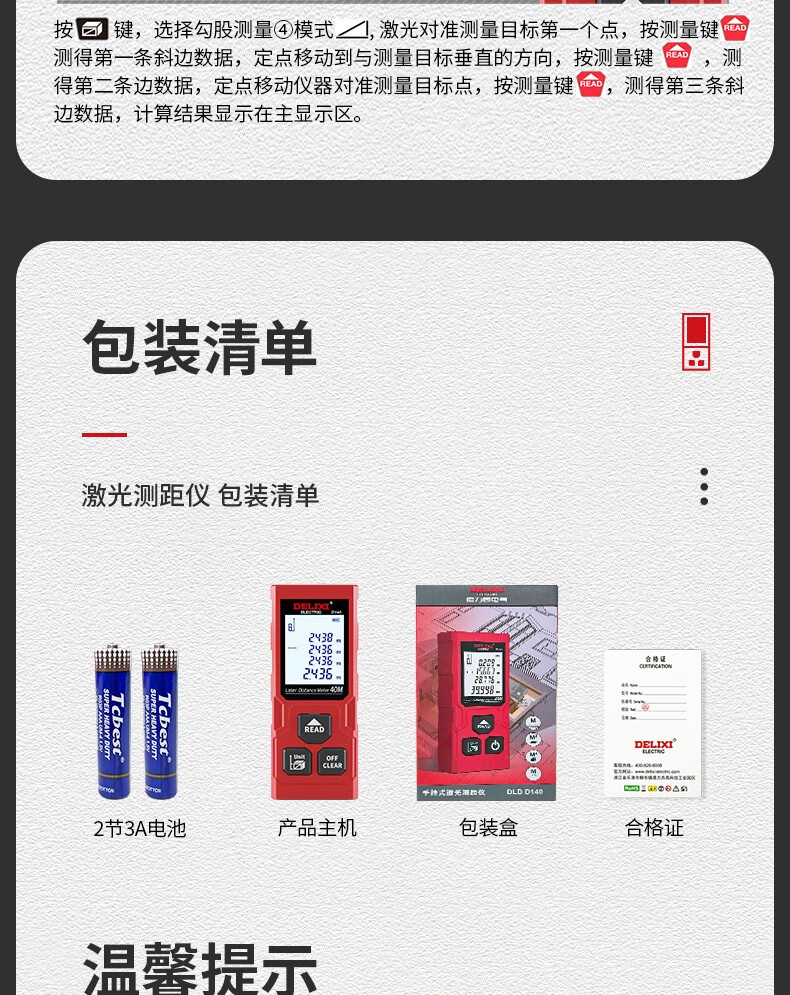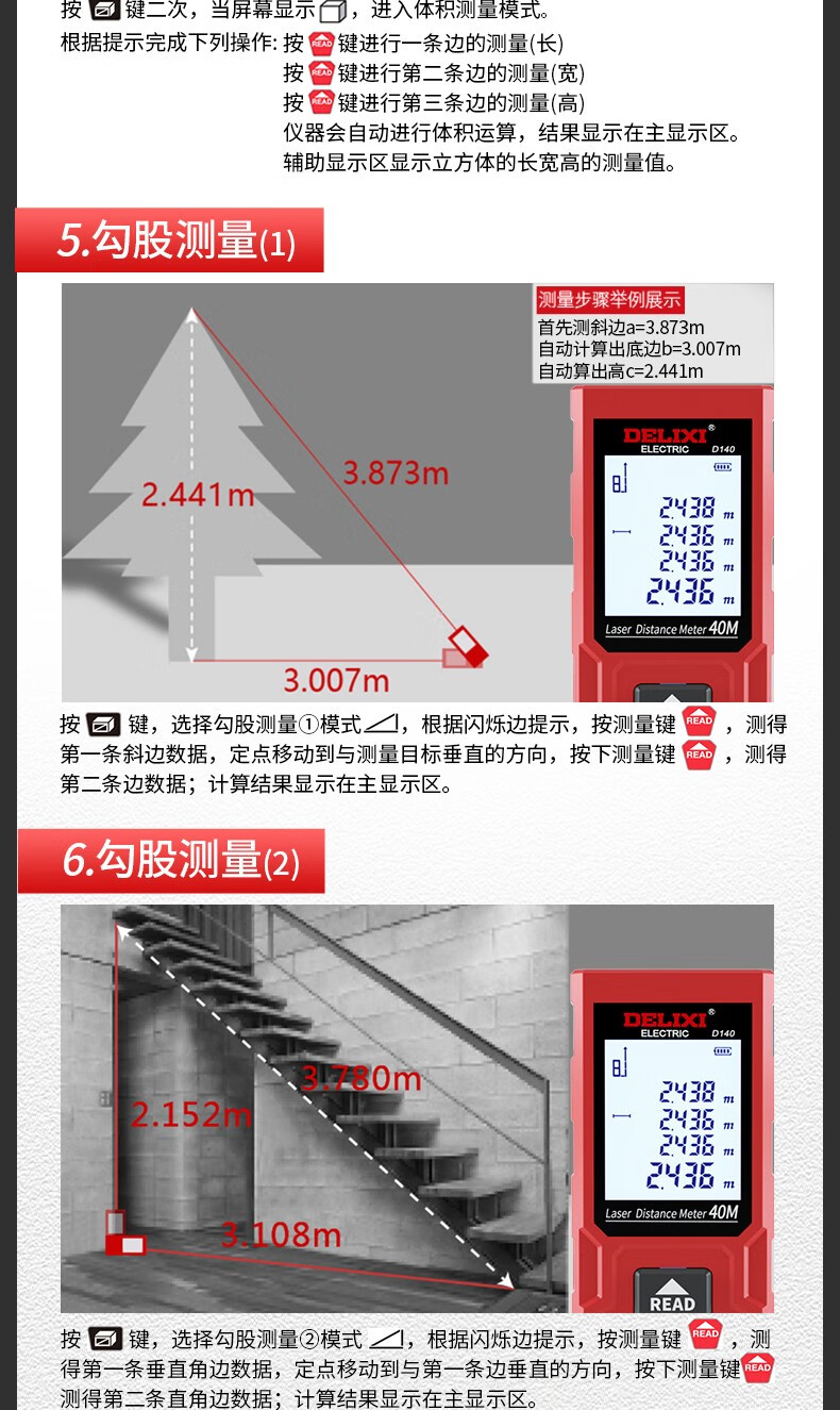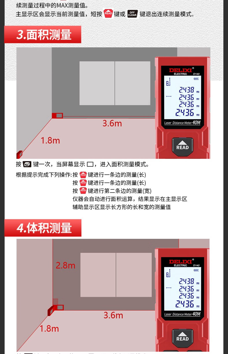 Delixi Electrical Distance Meter Laser Handheld Infrared Measuring Ruler Electronic Ruler High-Precision Household Room Measurement Instrument Laser Ruler 40m Battery Model (Economic Model Without Water Bubble)
