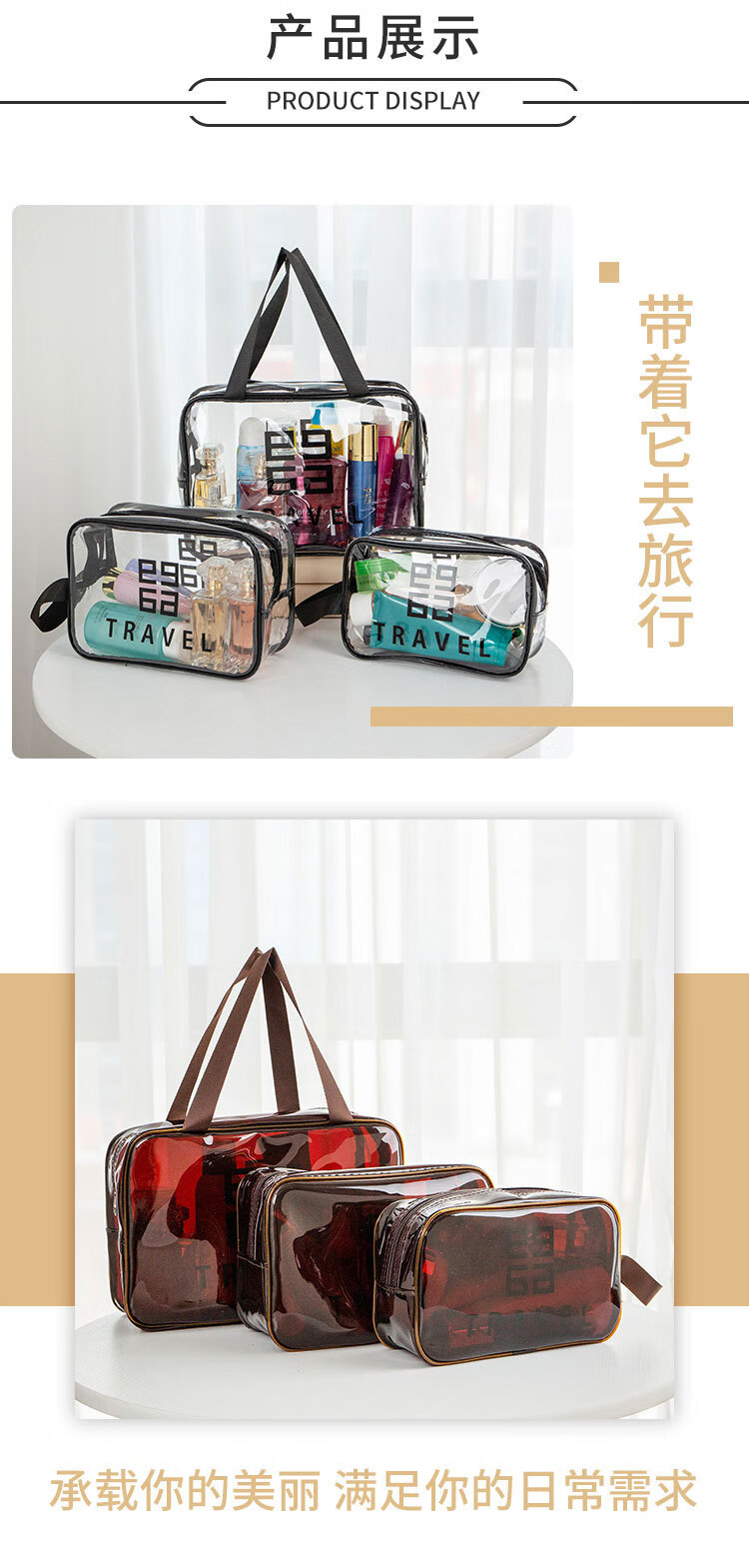 Travel cosmetic bag, toiletry bag storage bag, toiletry storage bag, shower bag, men's and women's waterproof business trip portable bath bag, bath bag, large black gray (29cm*21cm*12cm) thickened 60 silk
