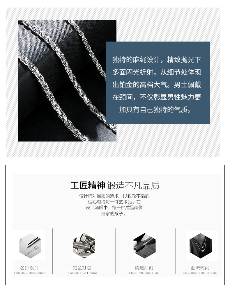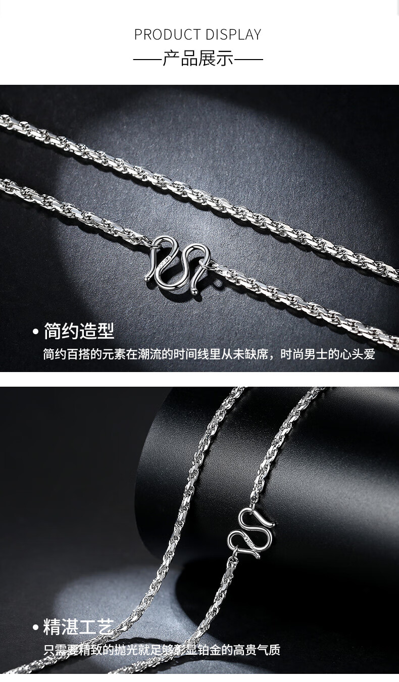 Aido Diamond PT950 Platinum Necklace Men's Real Platinum Solid Rope Chain Thick Plain Chain Weight 25.18g Length 50cm Approximately 2.2mm Thick M Buckle