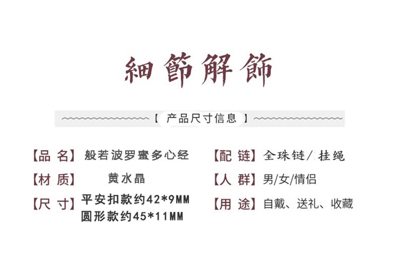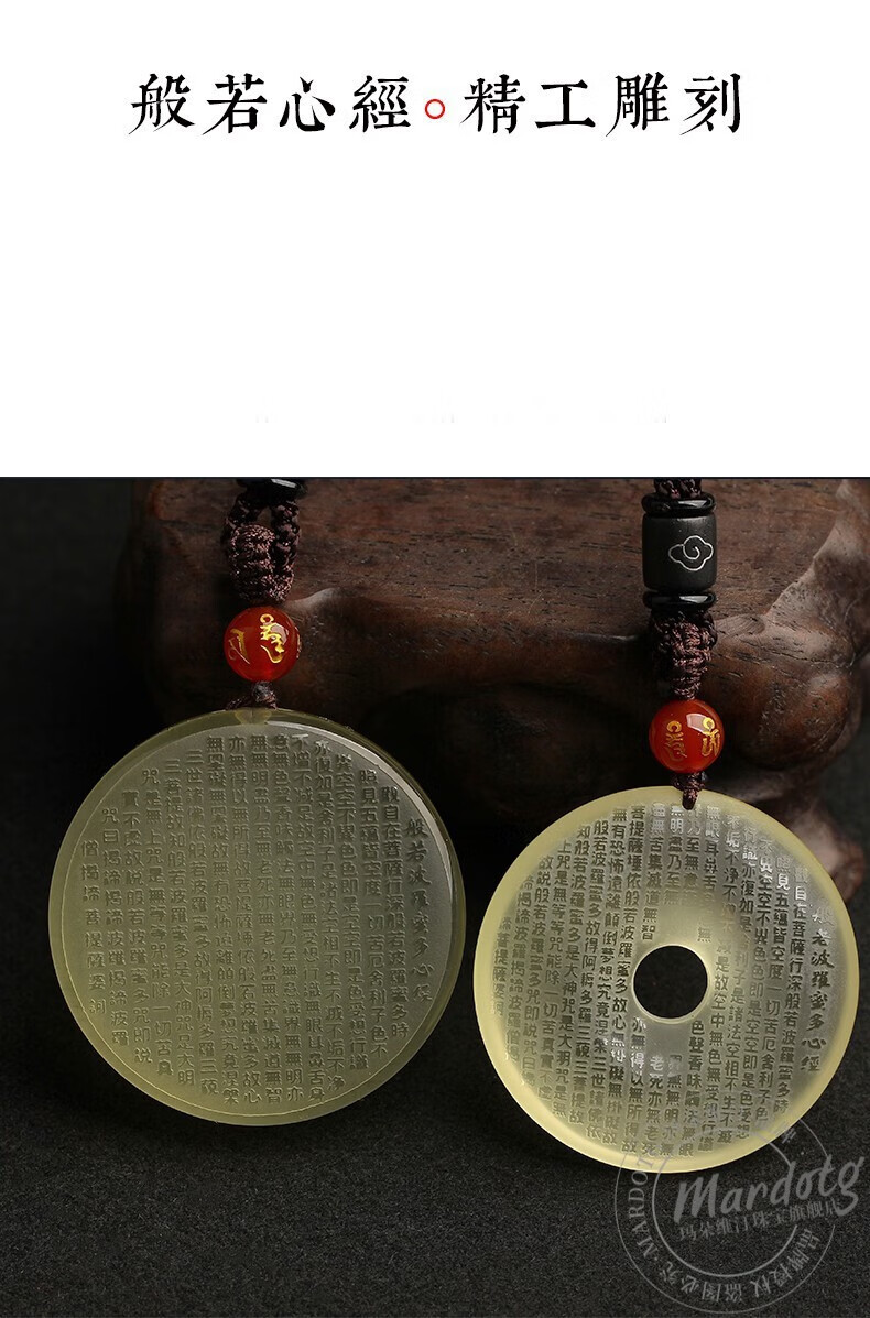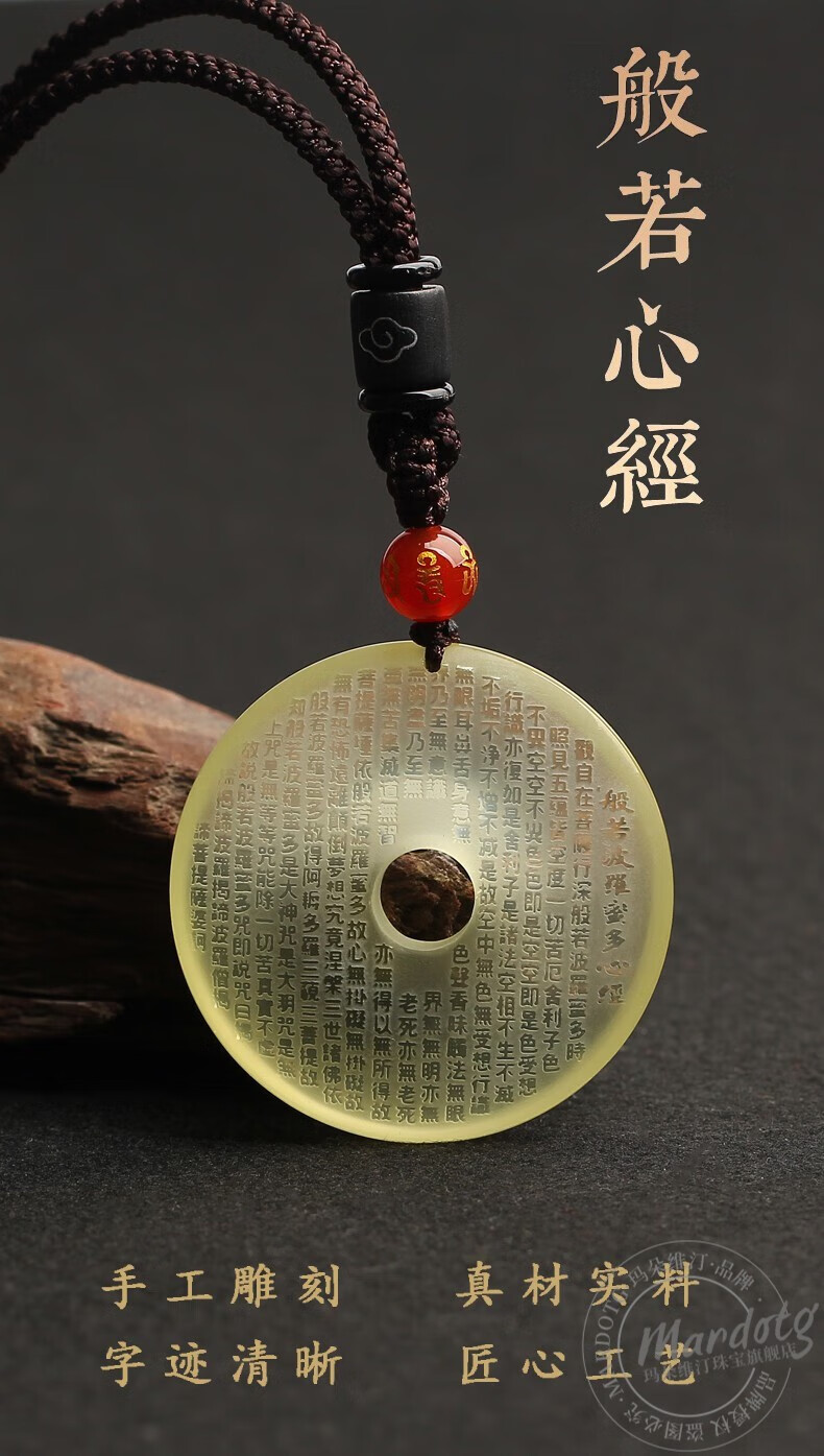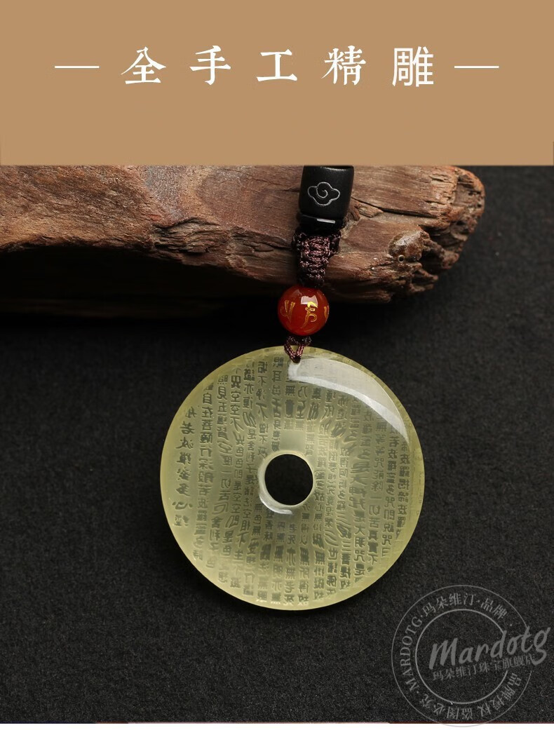 MARDOTG citrine pendant men's safety buckle Prajna Paramita Heart Sutra amulet necklace pendant men's safety buckle (lanyard style)