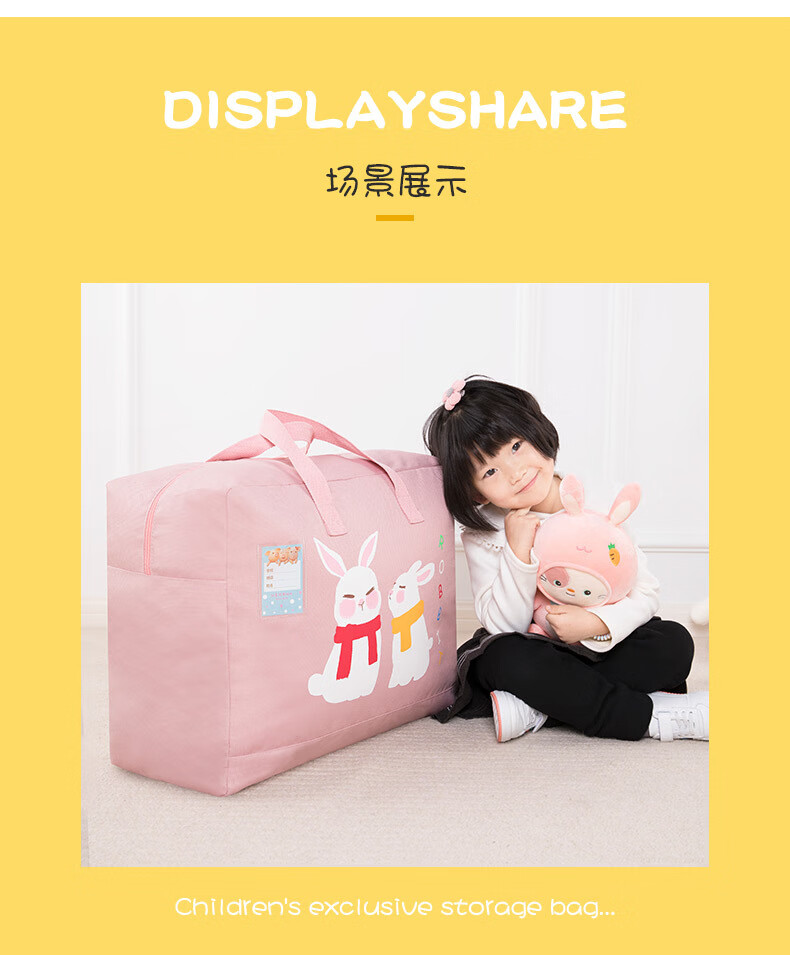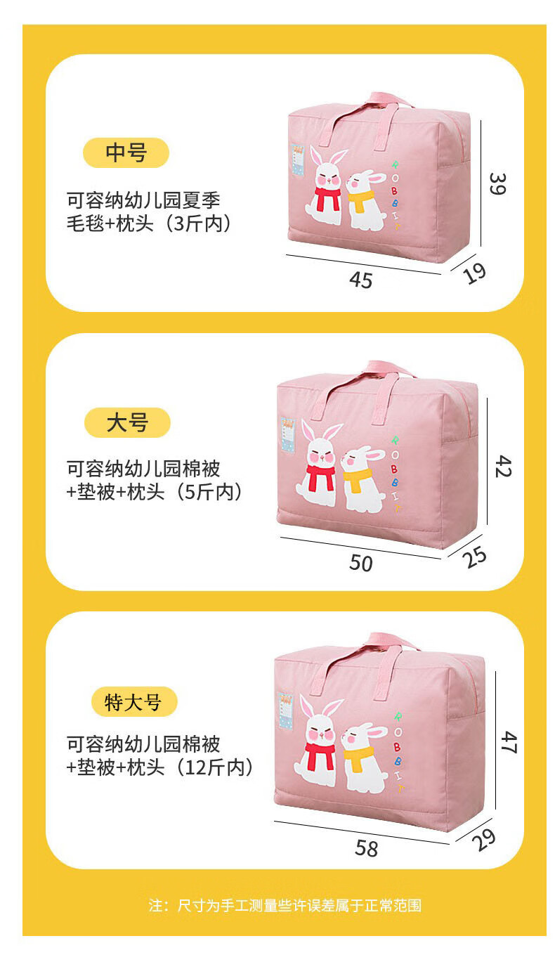 Yinuo Quilt Storage Bag Children's Kindergarten Student Quilt Bag Thickened Oxford Cloth Handbag Moving Bag Organizing Bag Pink - Rabbit Extra Large (58*28*48)cm