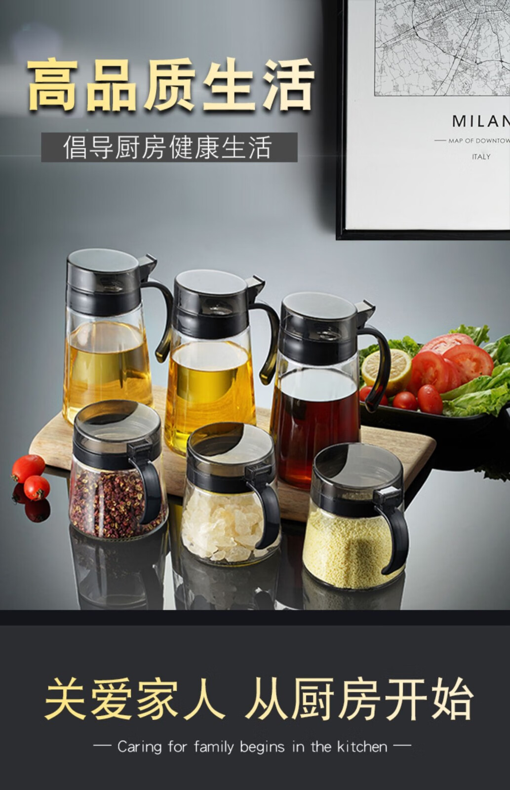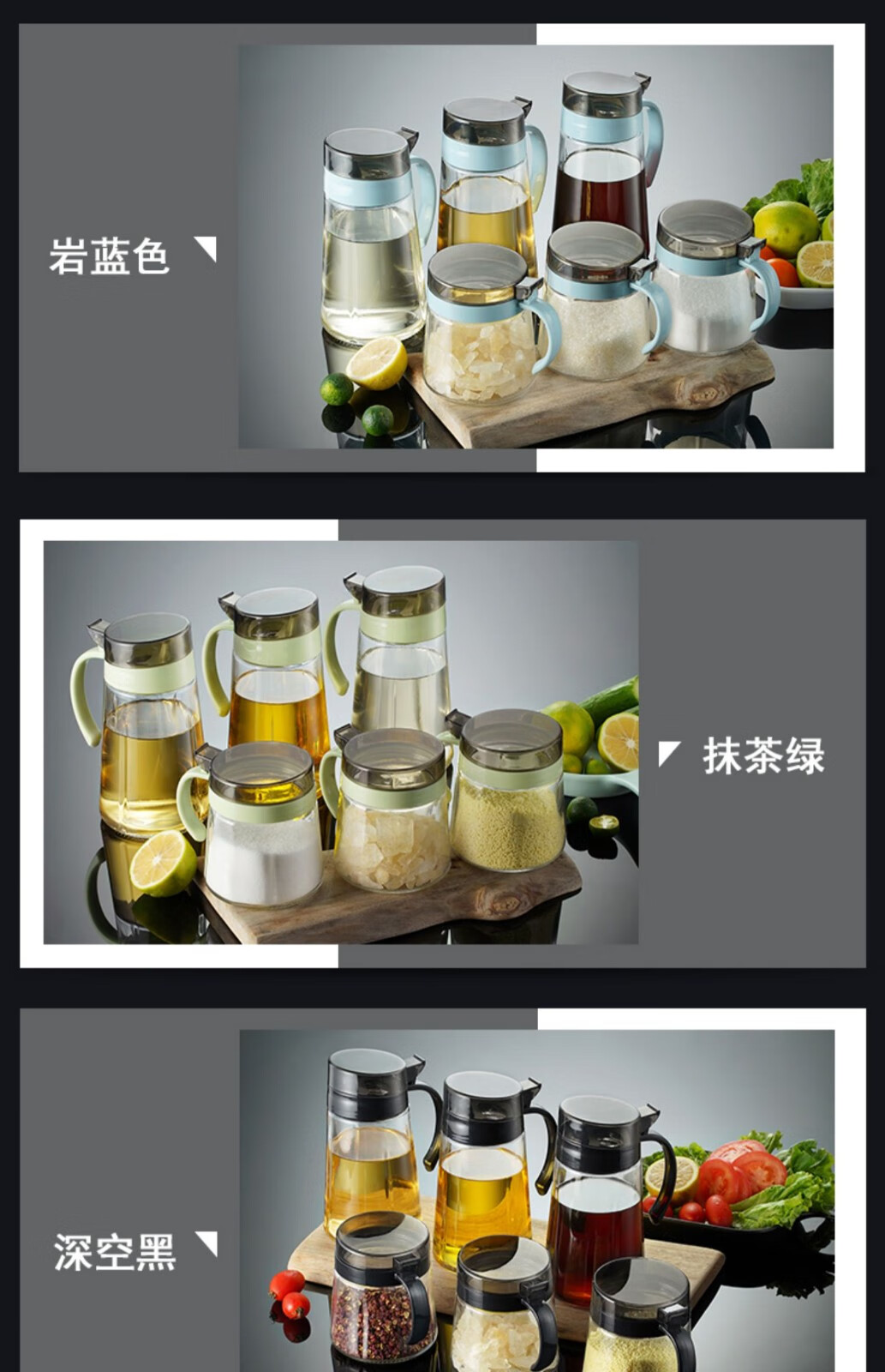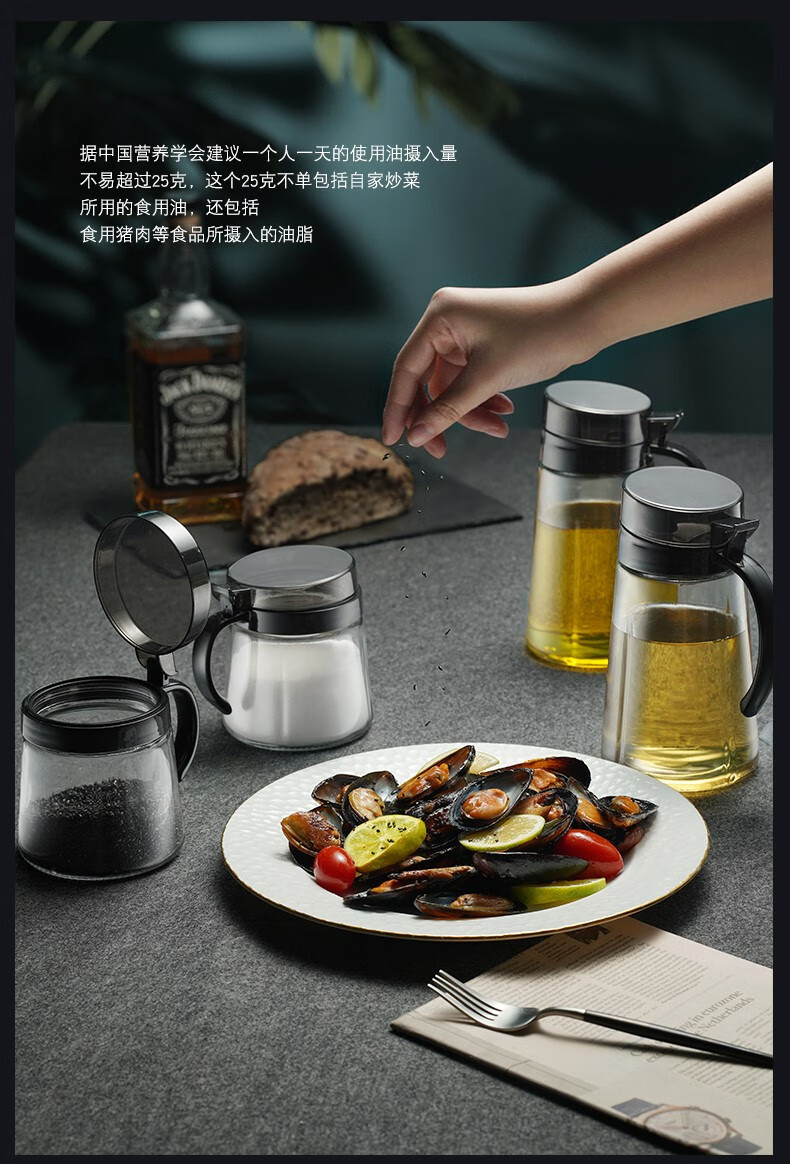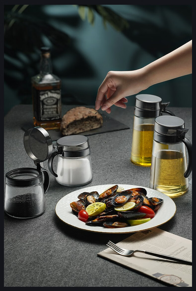 Xinmeiya seasoning box kitchen household seasoning jar seasoning jar salt jar seasoning combination set seasoning bottle jar seasoning bottle oil pot gray 3 pieces - seasoning jar + label + measuring spoon