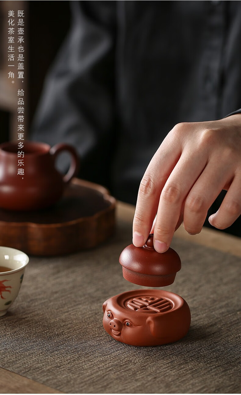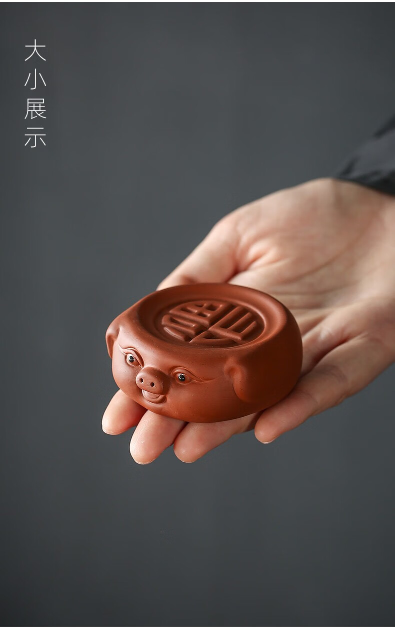 Yuxuan purple clay tea pet ornaments tea play tea art piggy coaster handmade can raise lucky pigs pot holder cover decoration small lucky pig coaster cover red mud