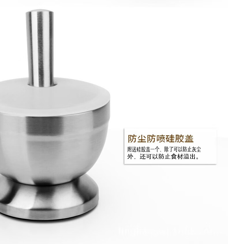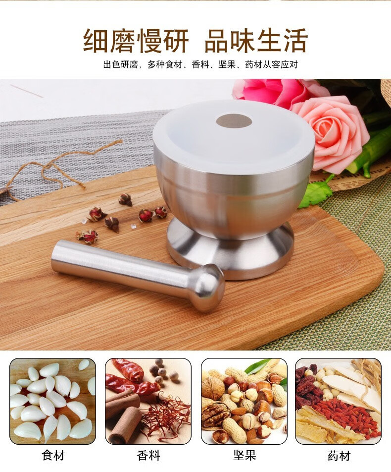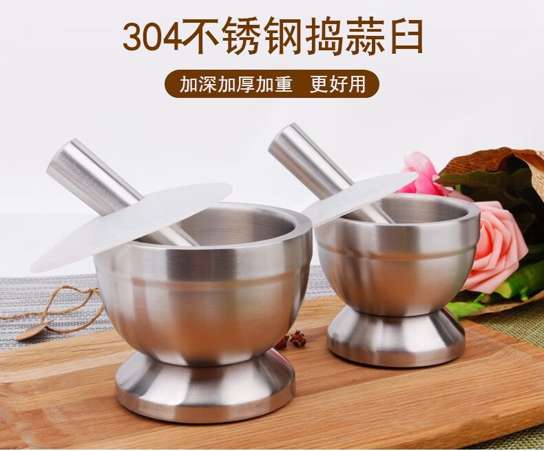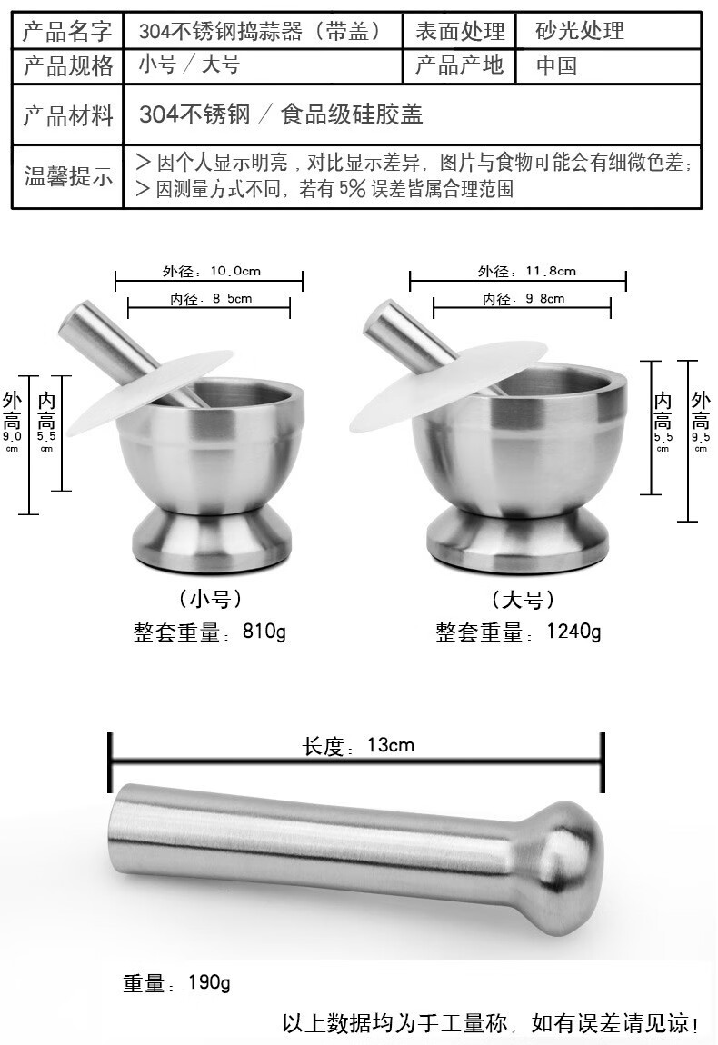 Weiqing 304 garlic masher, stainless steel garlic masher, thickened garlic masher, manual garlic masher, garlic mortar, kitchen gadgets, household masher jar, chili powder grinding bowl, masher, small diameter 10CM + garlic hammer + lid
