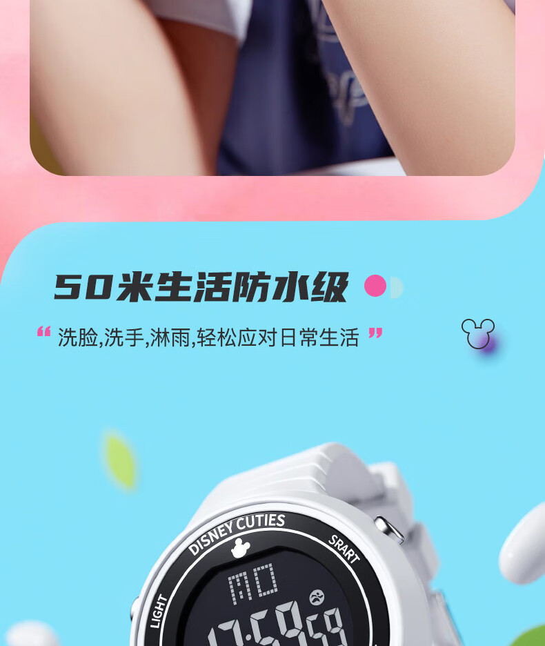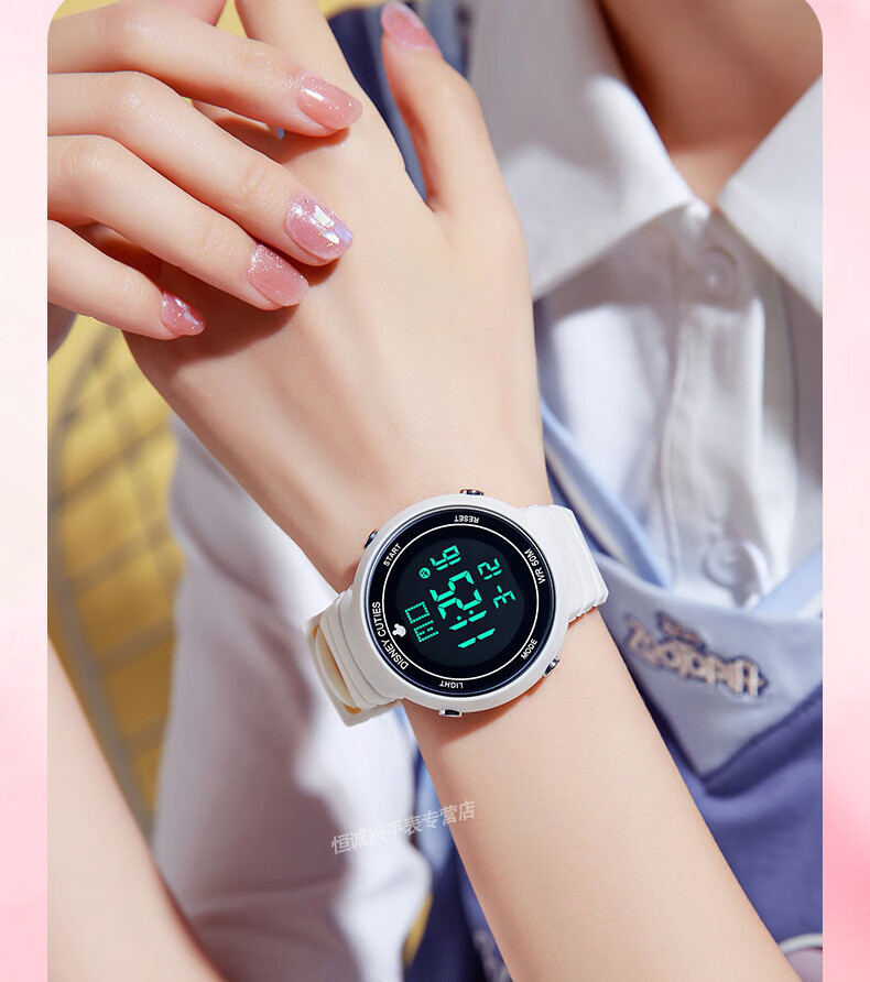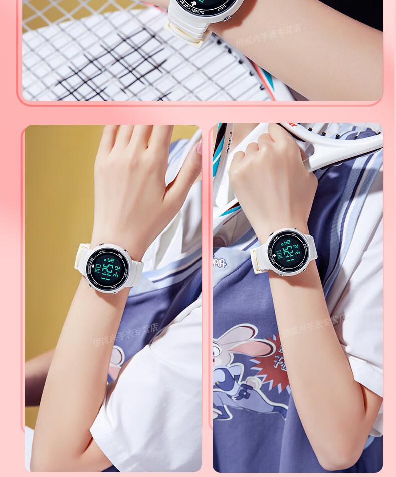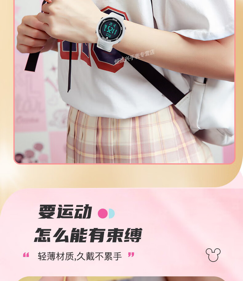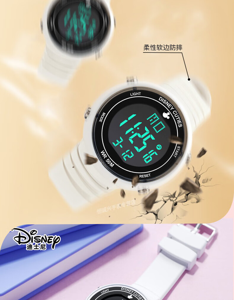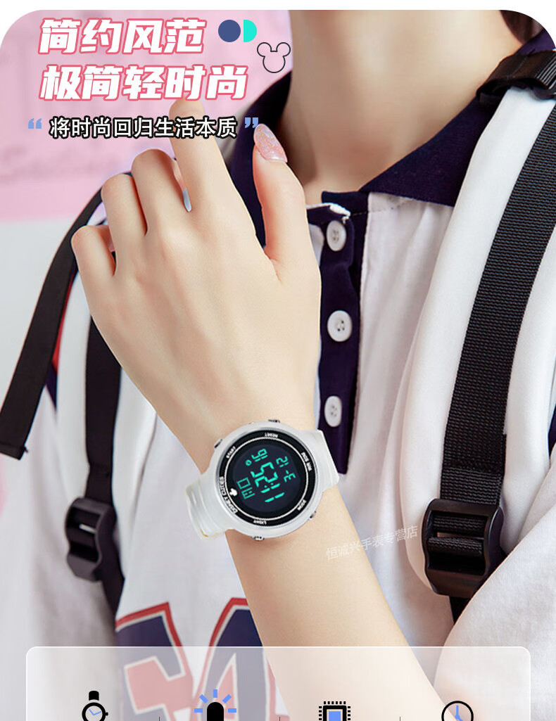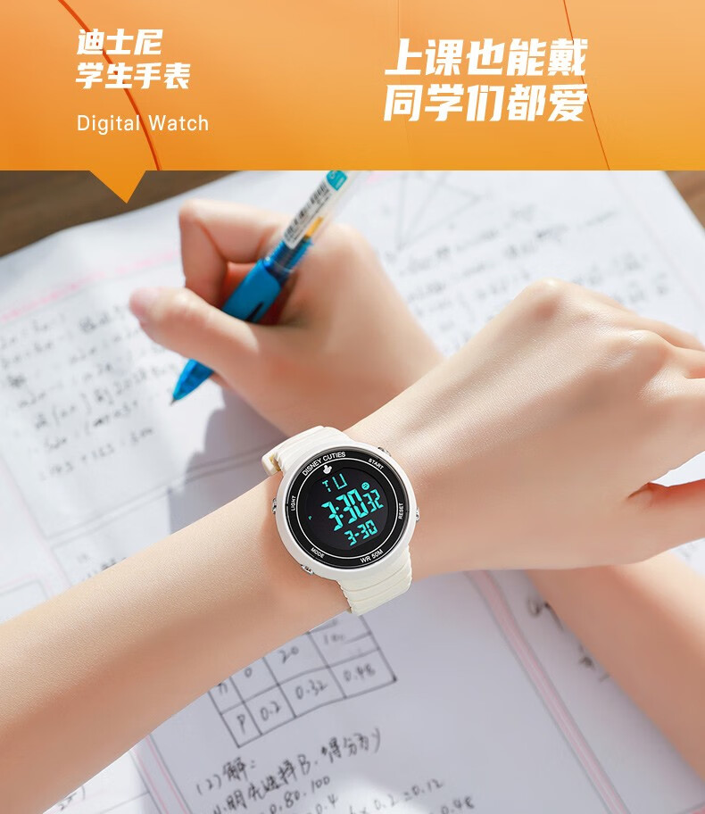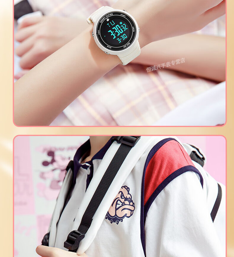 Disney (Disney) sports electronic watch for female students, middle and high school students, 2025 new waterproof children and girls Christmas birthday gift, ivory white, recommended by the store manager
